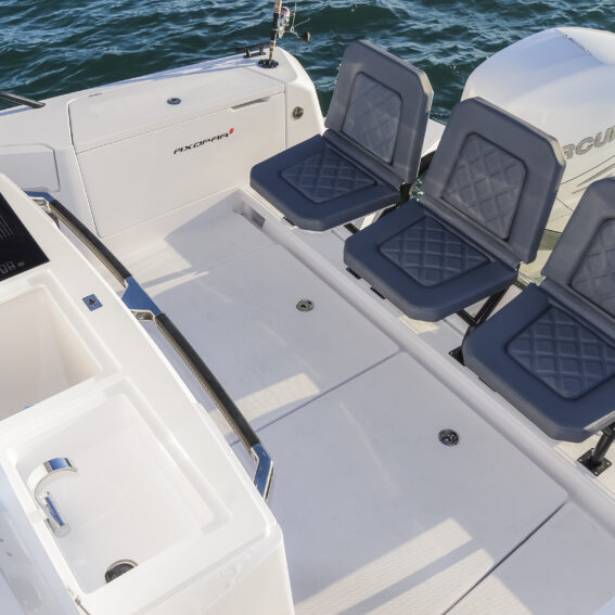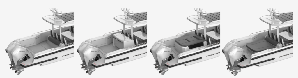 As standard the Axopar 37 Sun-Top comes with a spacious open aft deck equipped with an aft facing perch. The aft deck can be equipped with an optional wet bar module, aft cabin or a multi storage compartment.