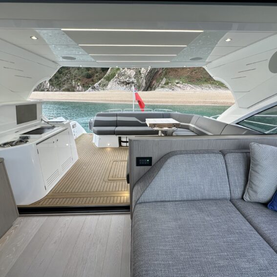 The Predator 60 EVO offers the perfect balance of performance, style and with her 3 well sized cabins superb practicality. Her large aft cockpit area and vast sun pad are the perfect place to enjoy the day on the water, the electronically operated sun shade offering shade if required!