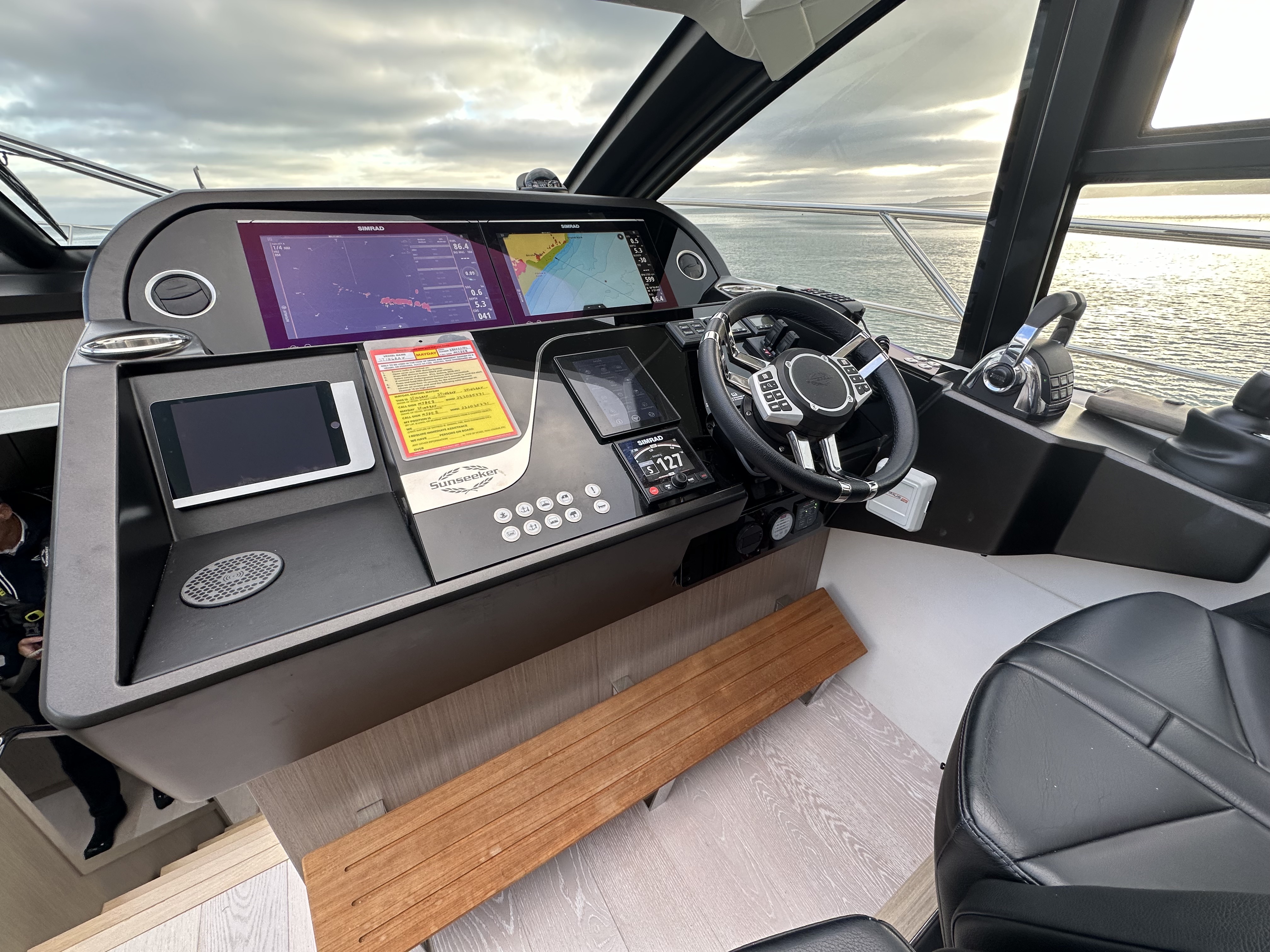 Two Simrad NSO evo3 16″ Multifunction touch screen Chart Plotter display with Simrad GS25 GPS.