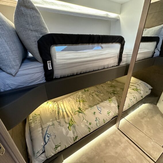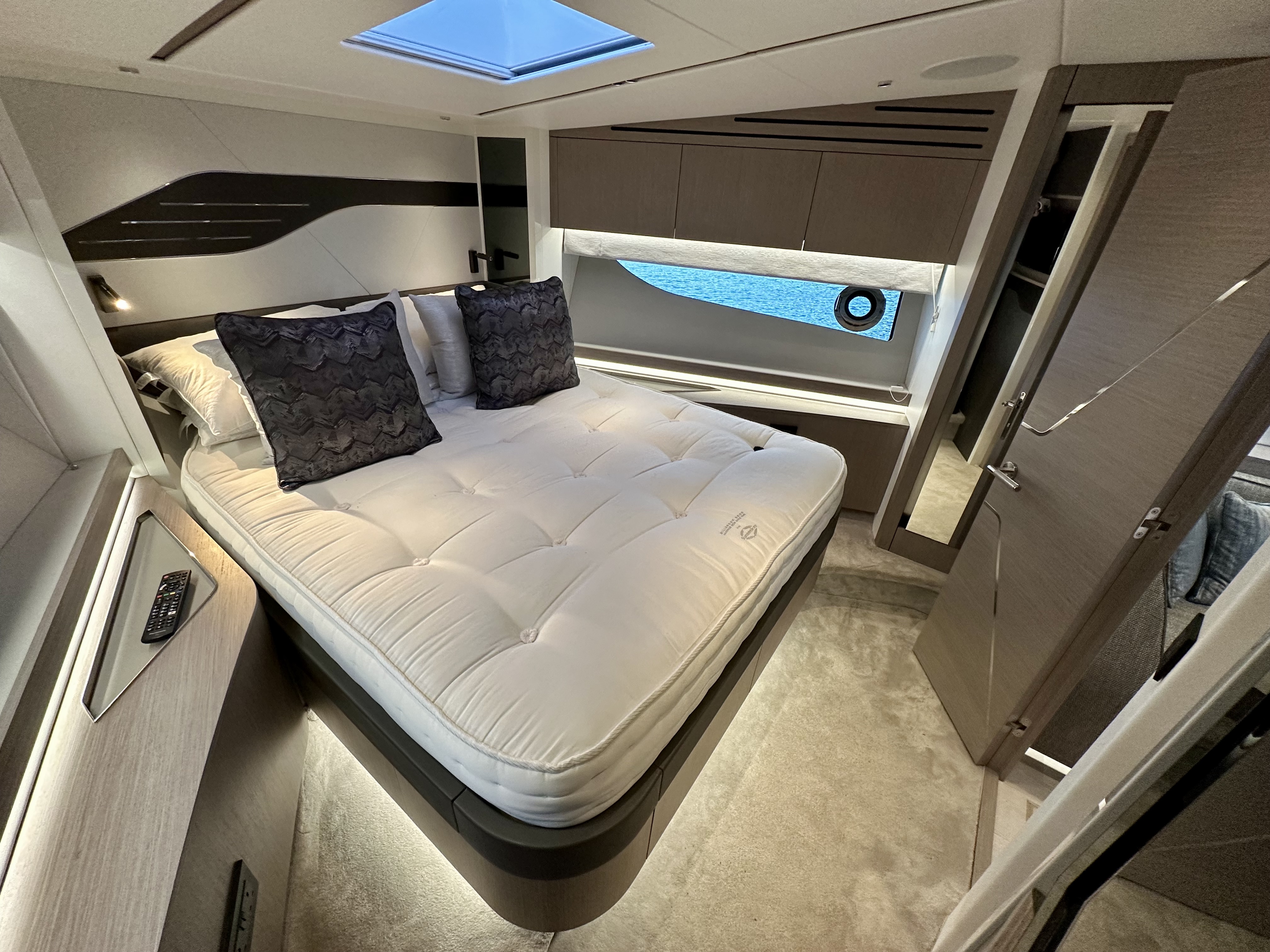 2. Master cabin Samsung 43″ Smart 4K UHD Television with Apple TV App and Airplay 2 included. Sonos Amp connecting TV with the built in Sonance VP62R speakers allowing music streaming. Apple TV 4K for streaming content from your Apple device.