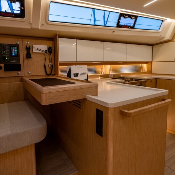 C1: Salon incl. navigation table and U-shaped galley on ps. big comfortable lounge and dining area stb side