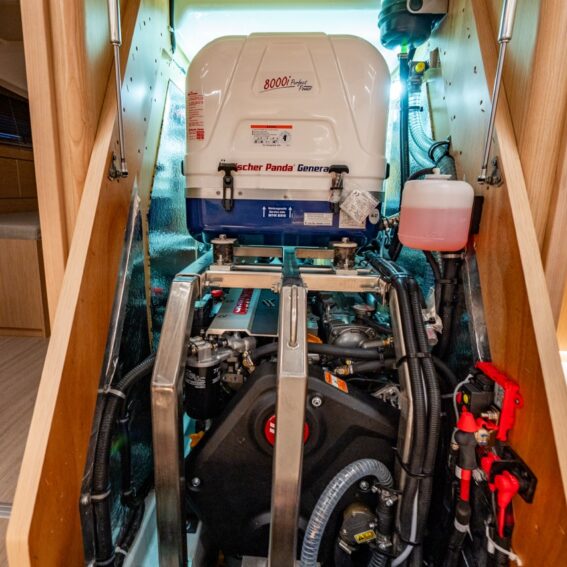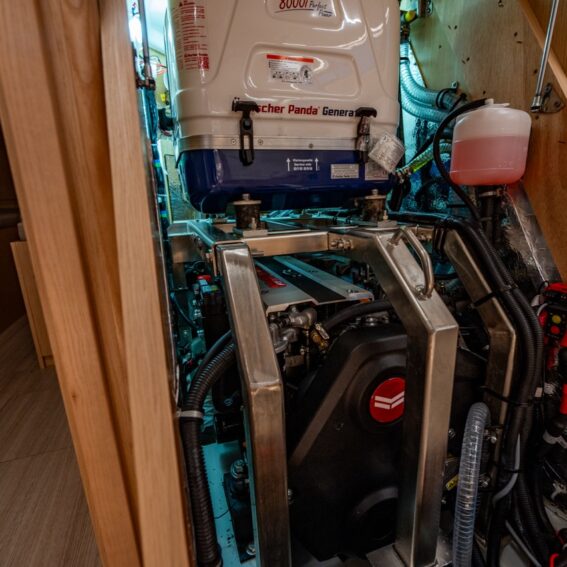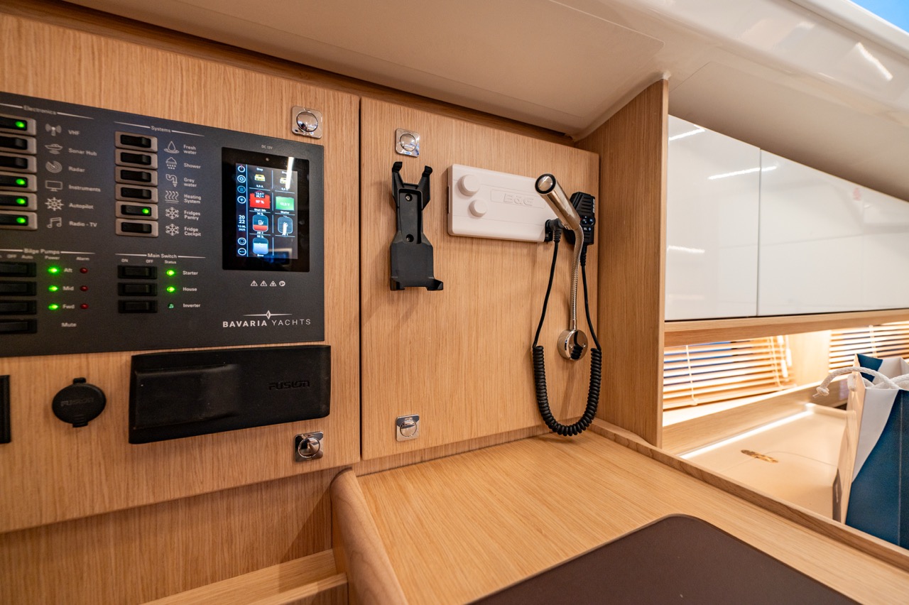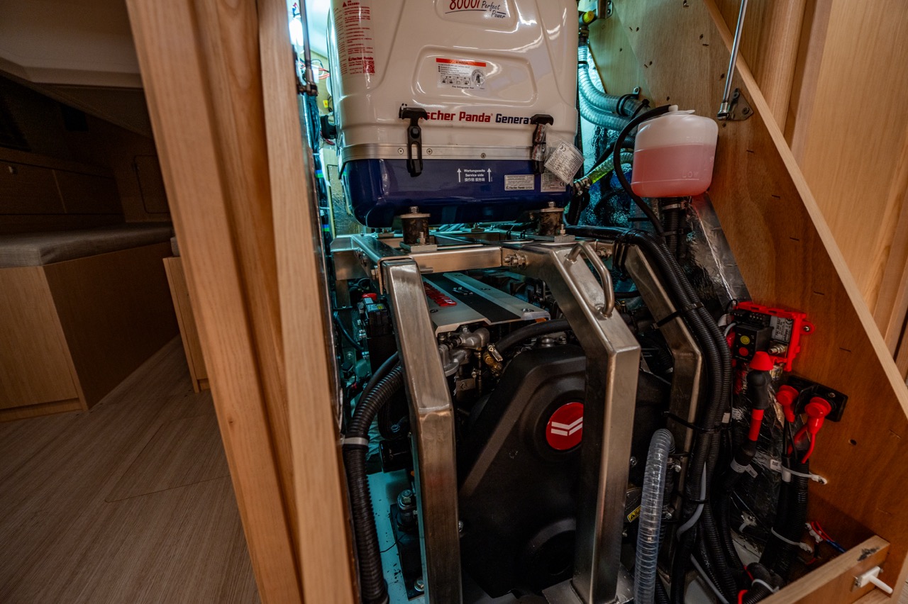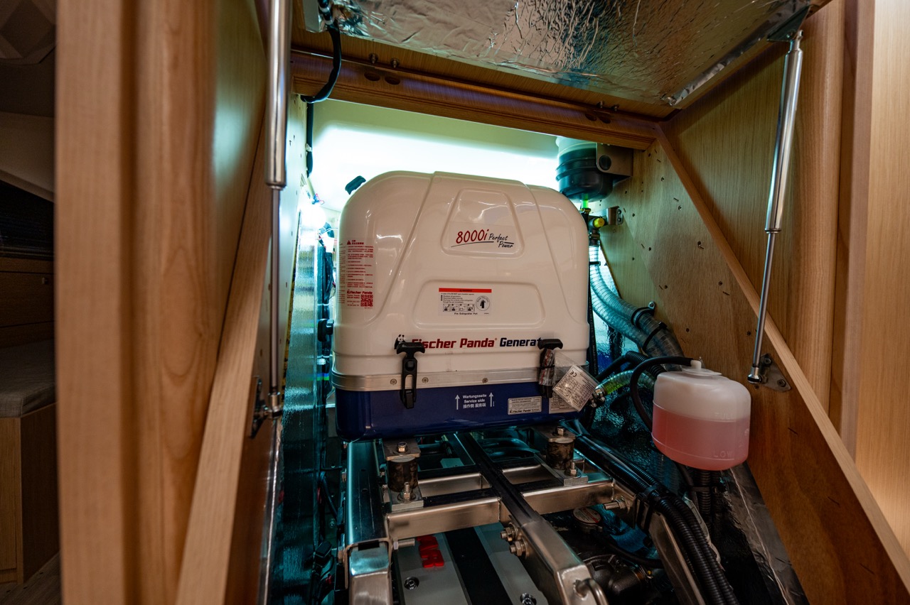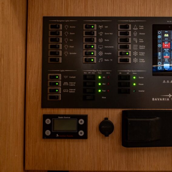 Main panel, 230 V socket in each cabin and head, in pantry and at chart table