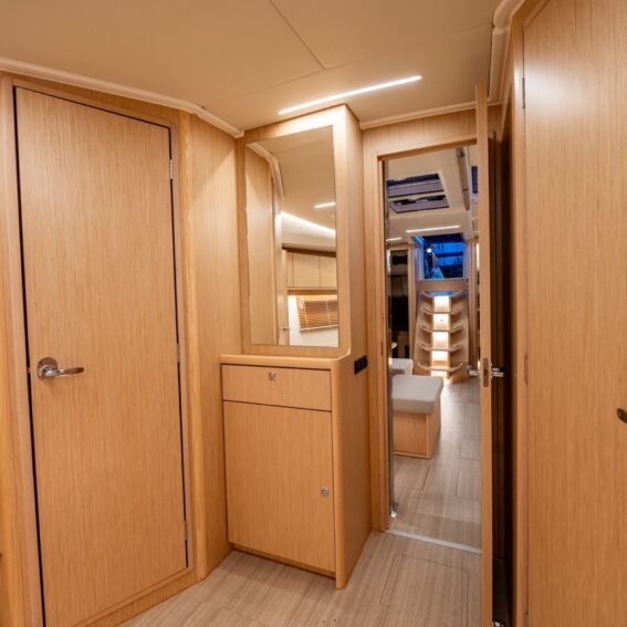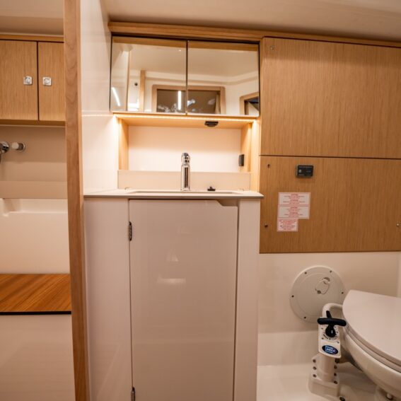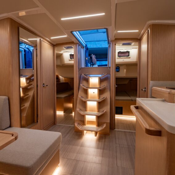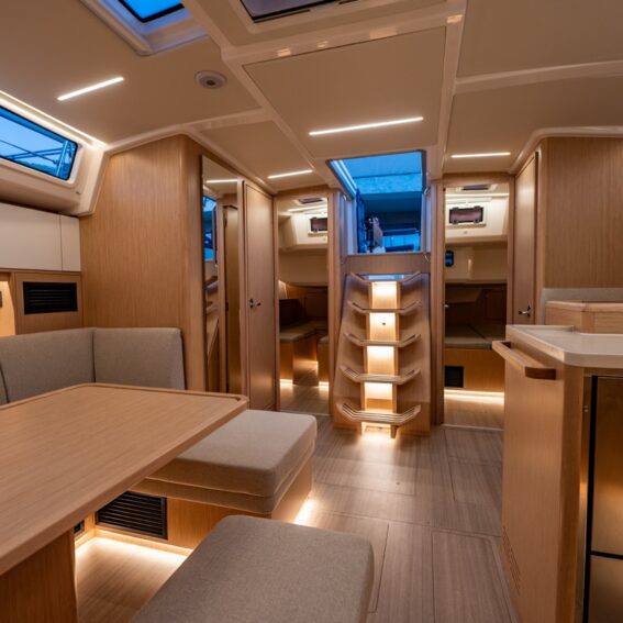 Reading lights incl. USB socket for each berth and at chart table, LED overhead lights in cabins, salon and heads