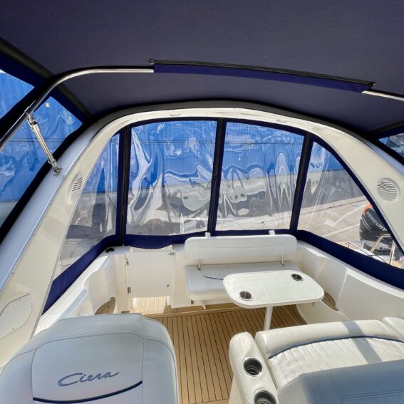 This 2002 Bayliner 2855, is a fantastic well maintained example of a very popular and well specified Family boat. With great accommodation for up to 6 people, she is spacious both above and below deck and has recently benefited from a Newly fitted Cockpit Canopy, Hull Polish and Anti-Foul. Viewings are a must!