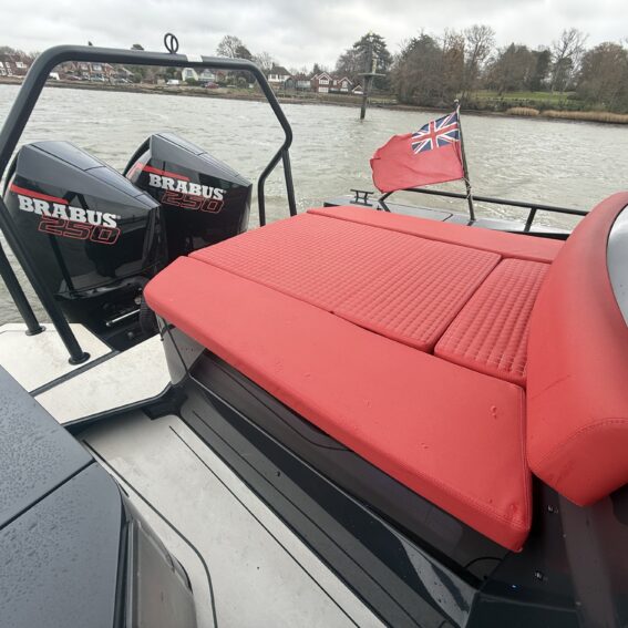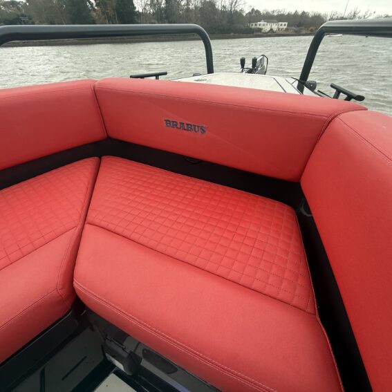 Fitted with the Day Cruiser Aft Cabin option providing a luxuriously appointed double cabin which can been entered through the main cabin. With an extensive use of exclusive BRABUS ‘Fine Leather’ on all upholstery and penlling within including ambient LED Lighting which illuminate the floor and provide overhead reading lights. The cabin also boasts a comfortable spring bed mattress in grey/black patterned Dinamica finish!