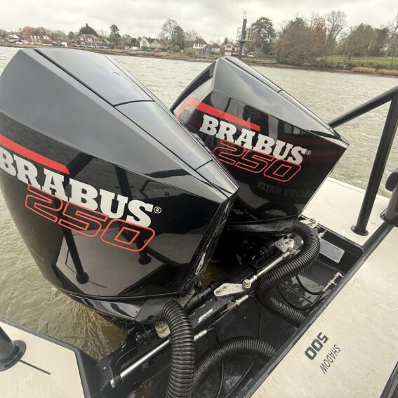 The distinctive looking BRABUS Shadow 500 Cabin is hand-built with focus on precision and finish. Fairing, painting and polishing the Limited-Edition version to the quality required is a highly labour-intensive, skilful and painstaking process, with no automation which can take up to six weeks to reach the required finish.. Fitted with a dual installation of Mercury ProXS 250 engines she can achieve max speed of over 50 knots!