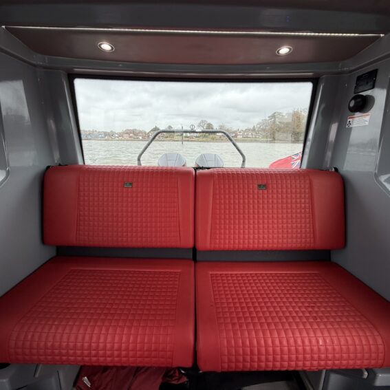 The main cabin can also be converted into an occasional sleeping berth for up to two person utilising the provided in-fill cushions and the swivel function of the helm and passenger seating providing up to 4 berths for overnight if required!