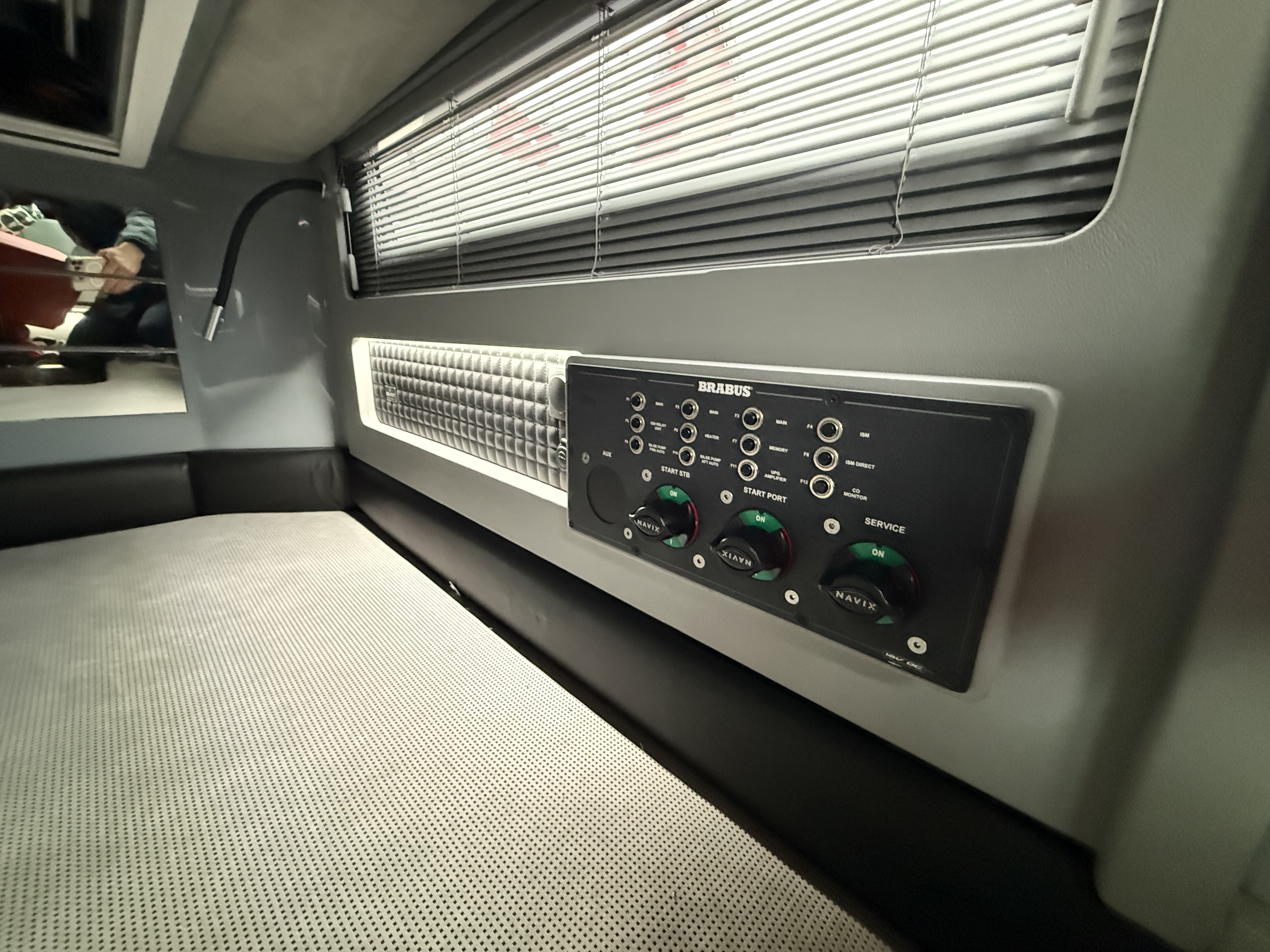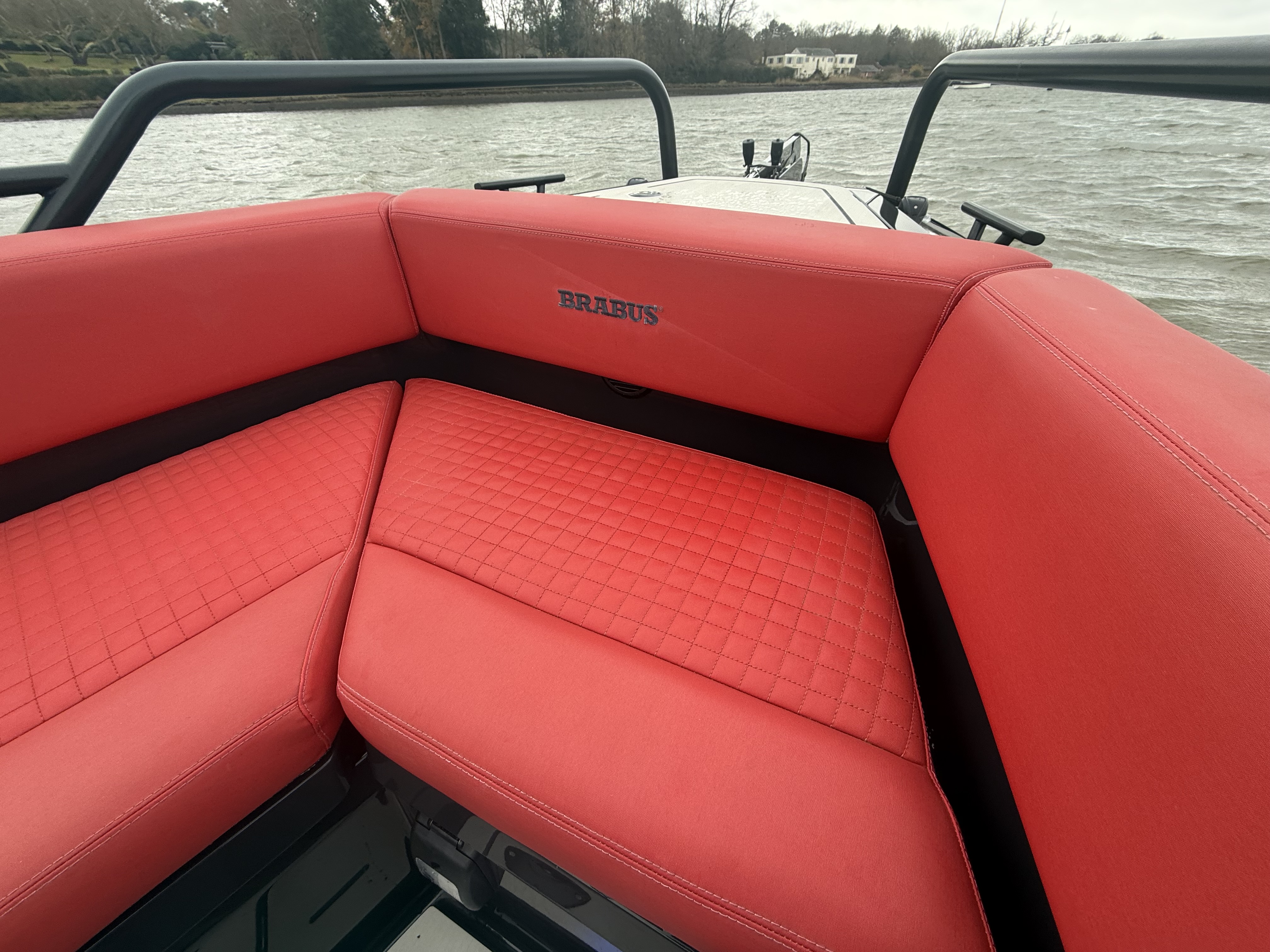 Fitted with the Day Cruiser Aft Cabin option providing a luxuriously appointed double cabin which can been entered through the main cabin. With an extensive use of exclusive BRABUS ‘Fine Leather’ on all upholstery and penlling within including ambient LED Lighting which illuminate the floor and provide overhead reading lights. The cabin also boasts a comfortable spring bed mattress in grey/black patterned Dinamica finish!