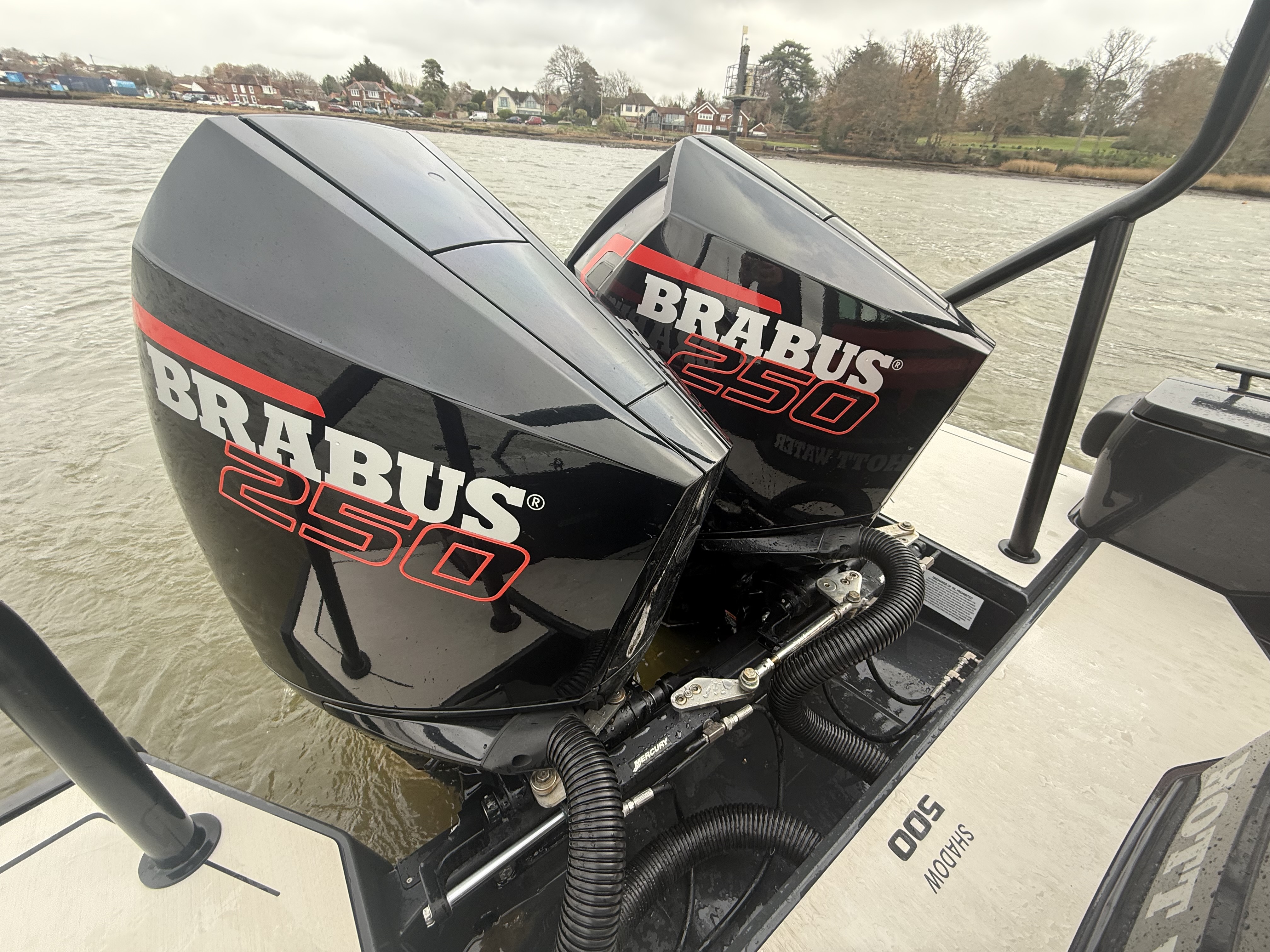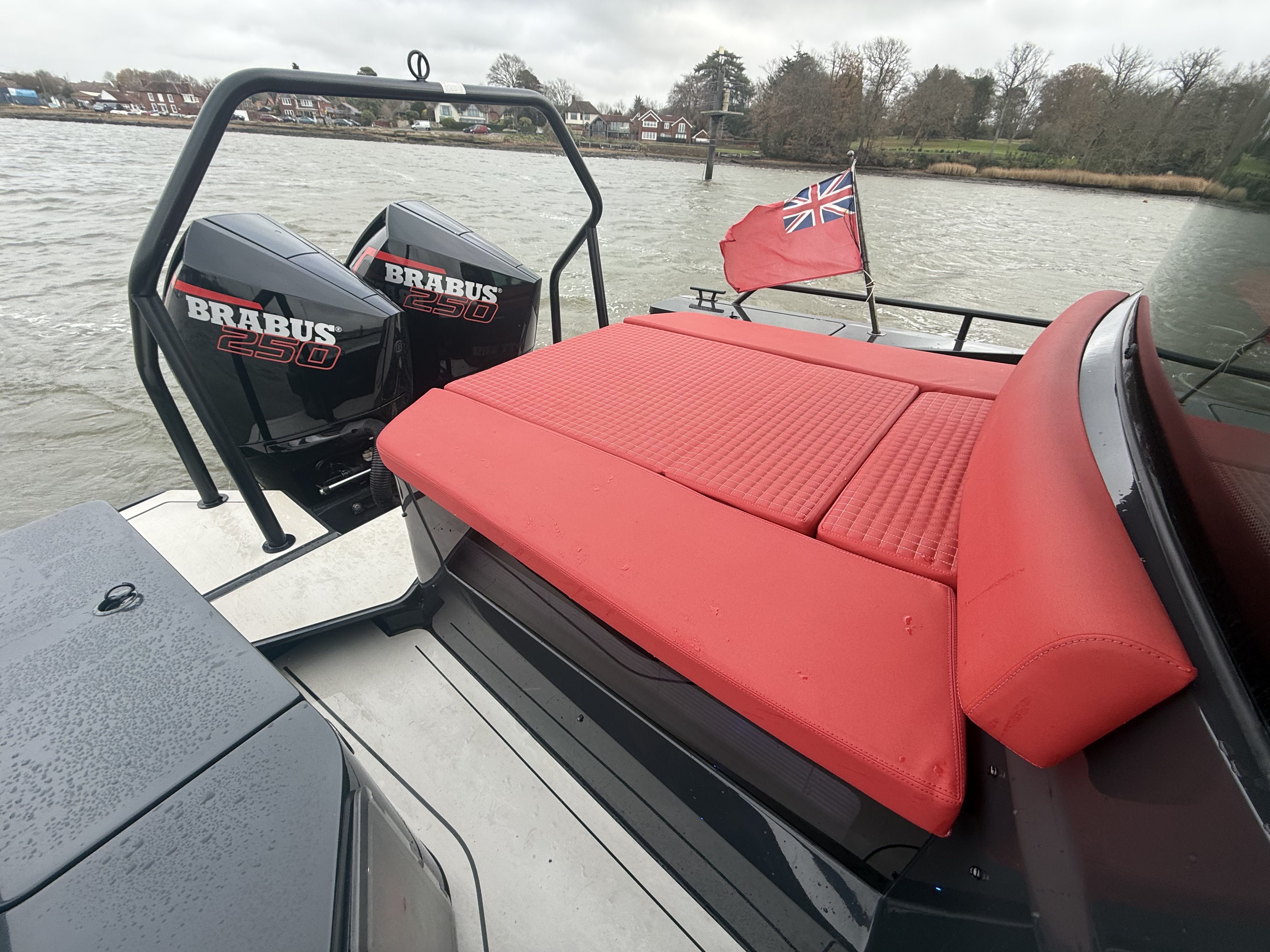 The distinctive looking BRABUS Shadow 500 Cabin is hand-built with focus on precision and finish. Fairing, painting and polishing the Limited-Edition version to the quality required is a highly labour-intensive, skilful and painstaking process, with no automation which can take up to six weeks to reach the required finish.. Fitted with a dual installation of Mercury ProXS 250 engines she can achieve max speed of over 50 knots!