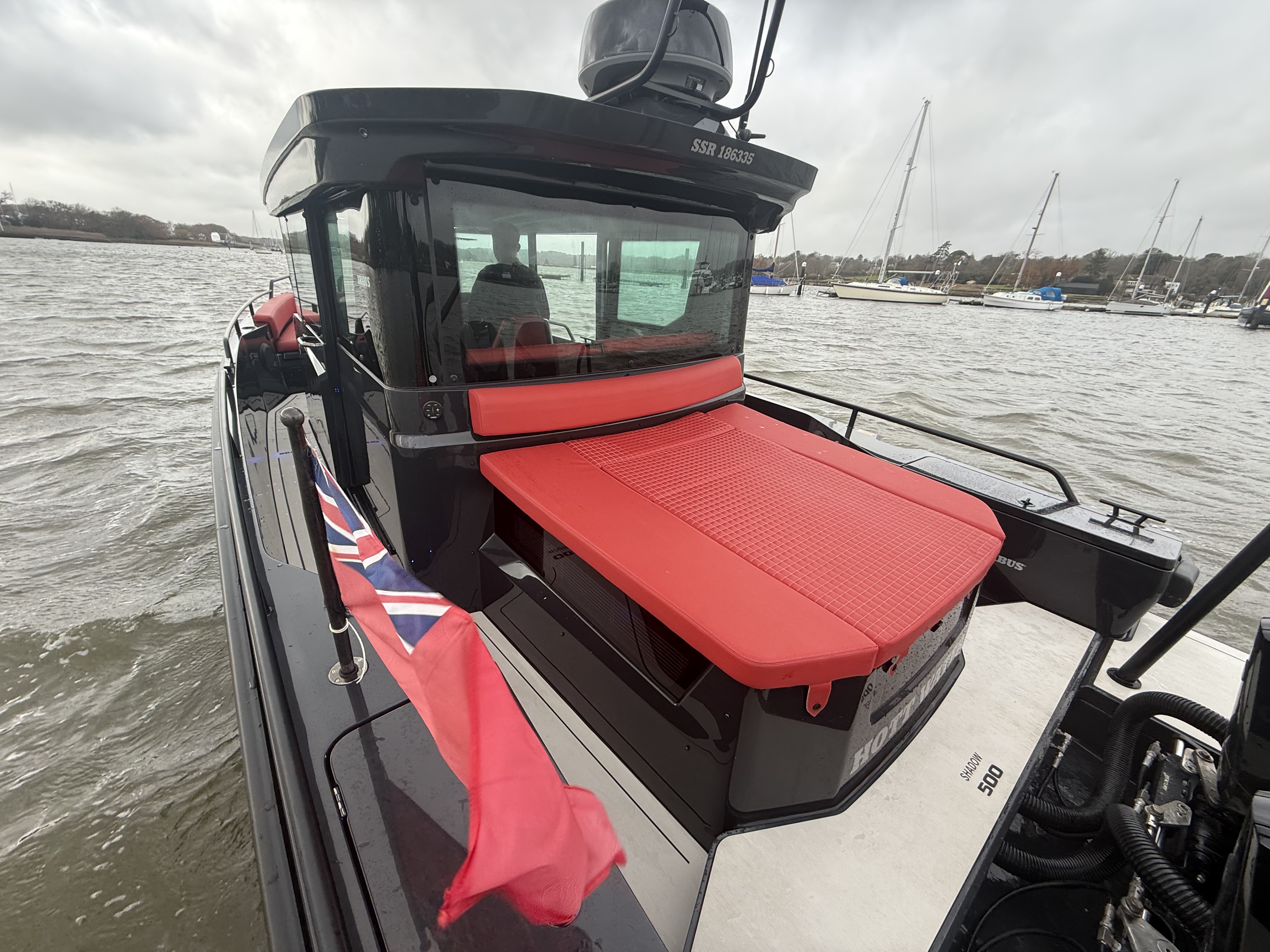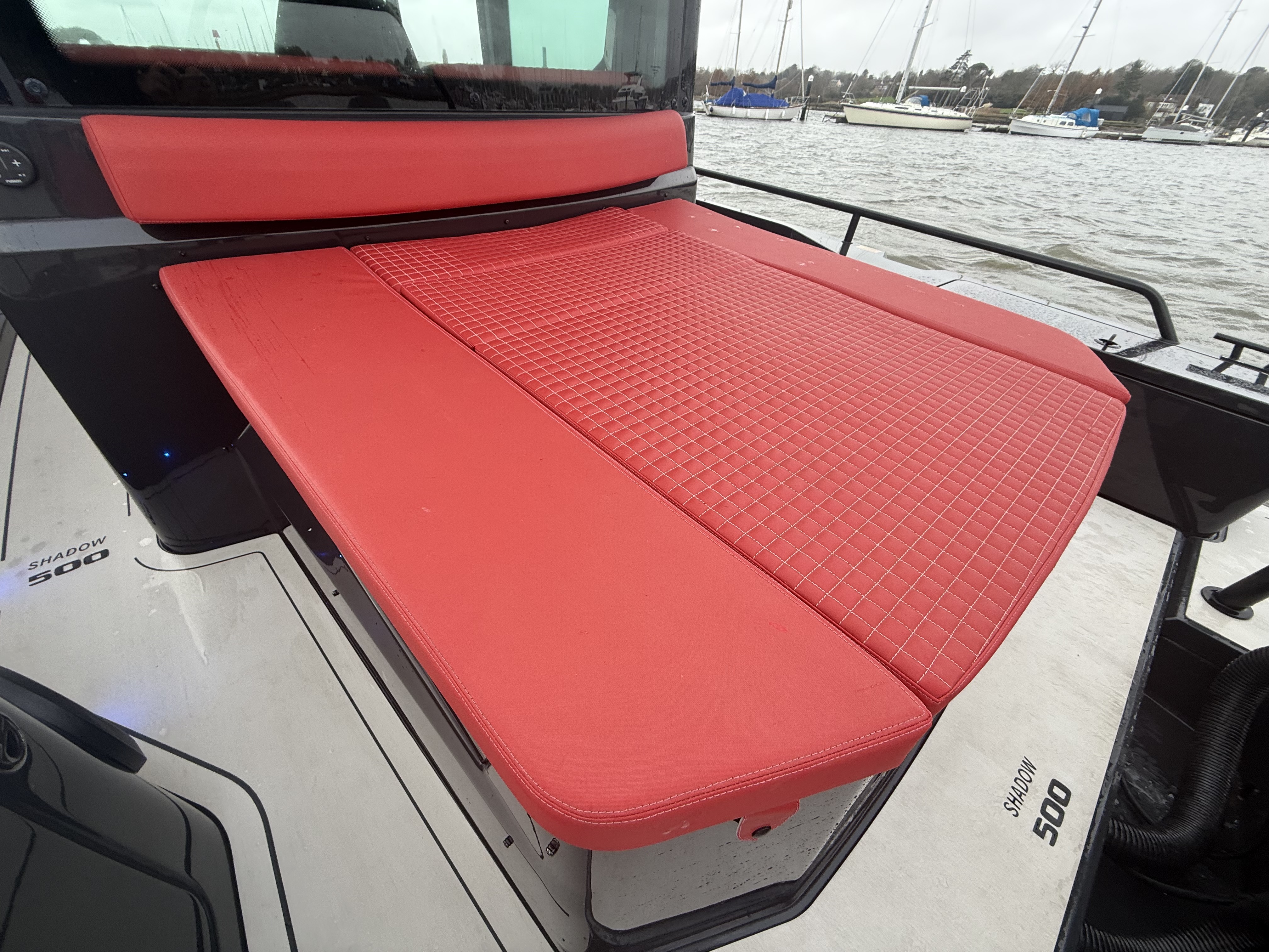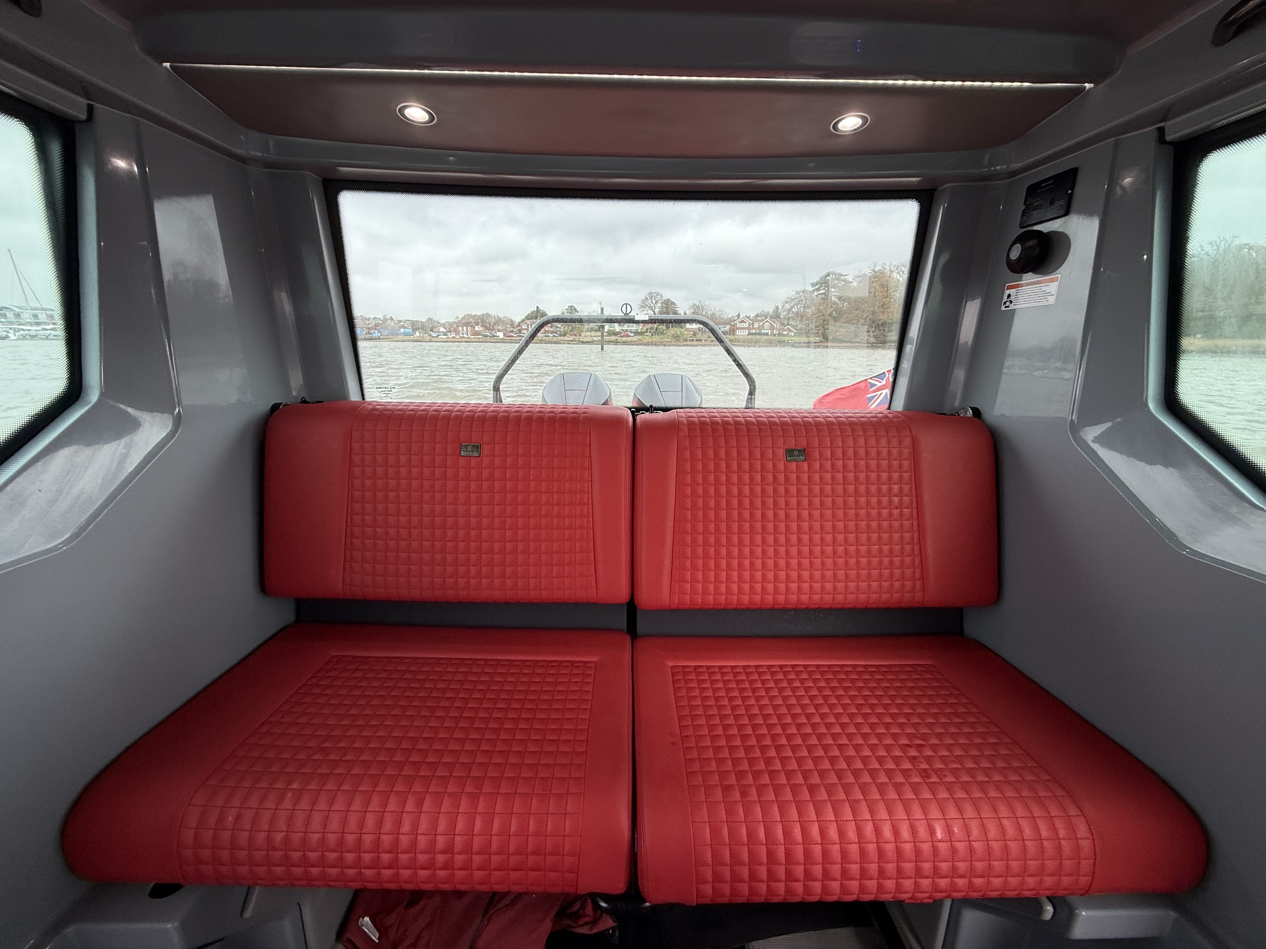 The main cabin can also be converted into an occasional sleeping berth for up to two person utilising the provided in-fill cushions and the swivel function of the helm and passenger seating providing up to 4 berths for overnight if required!