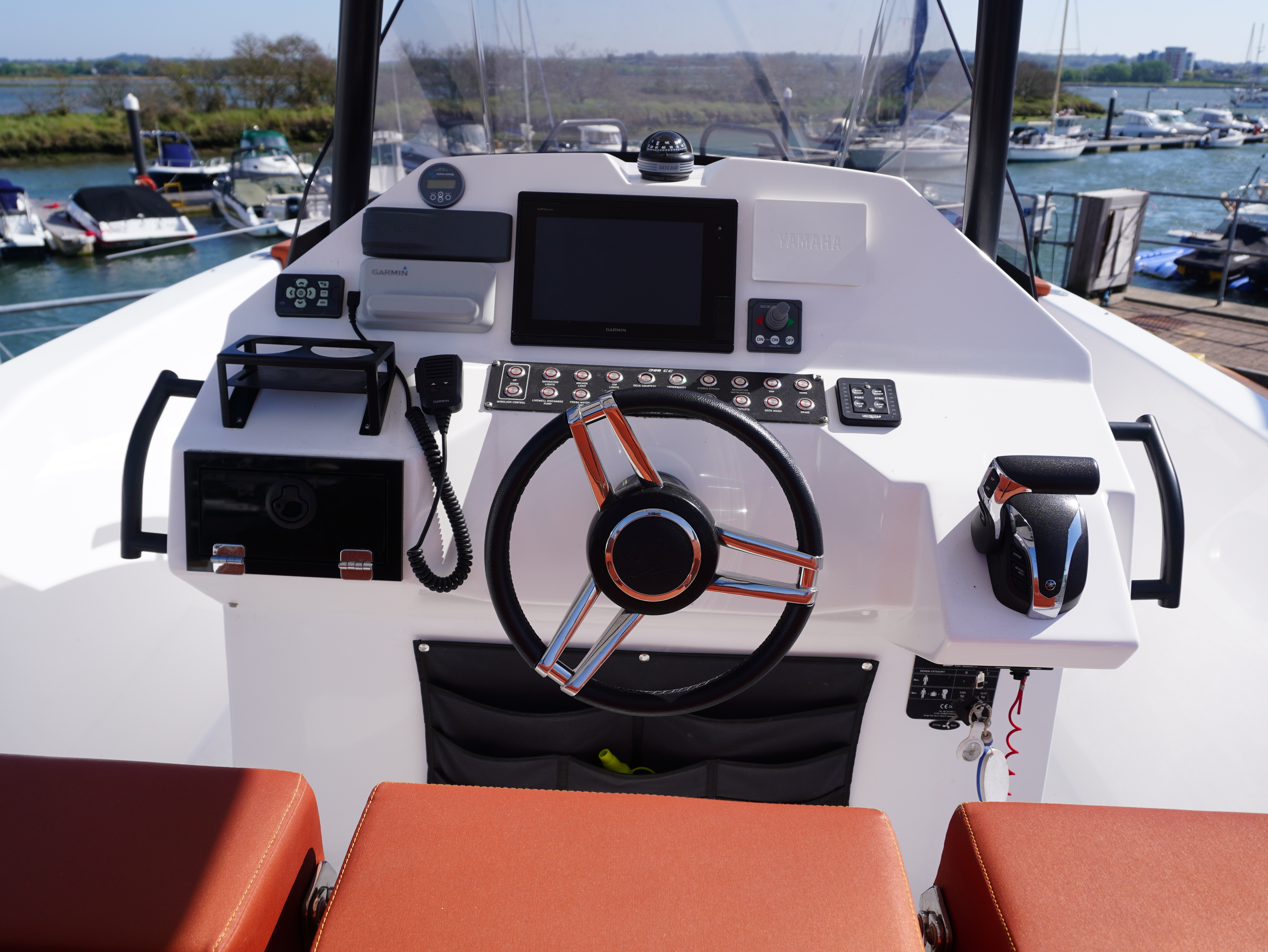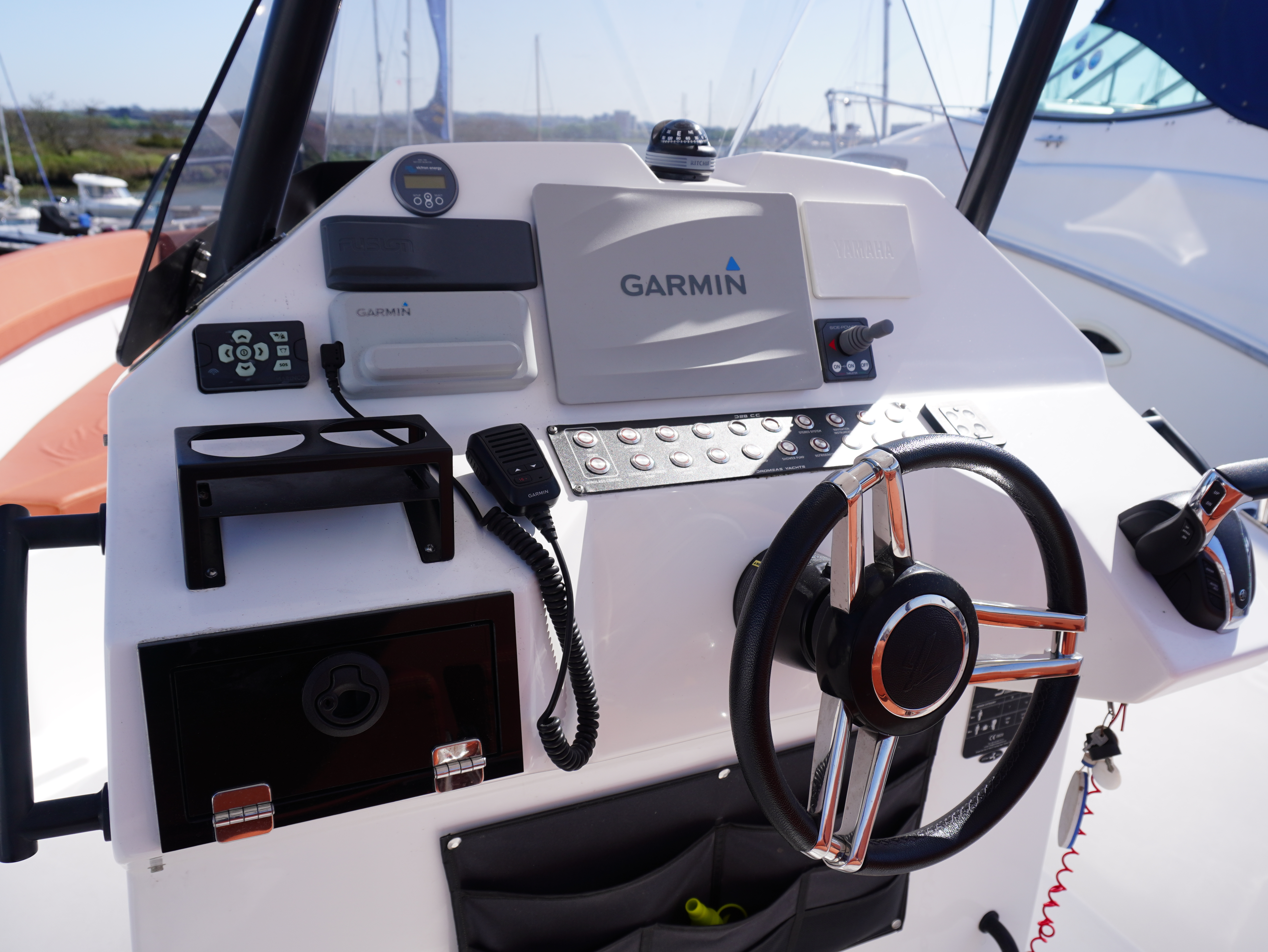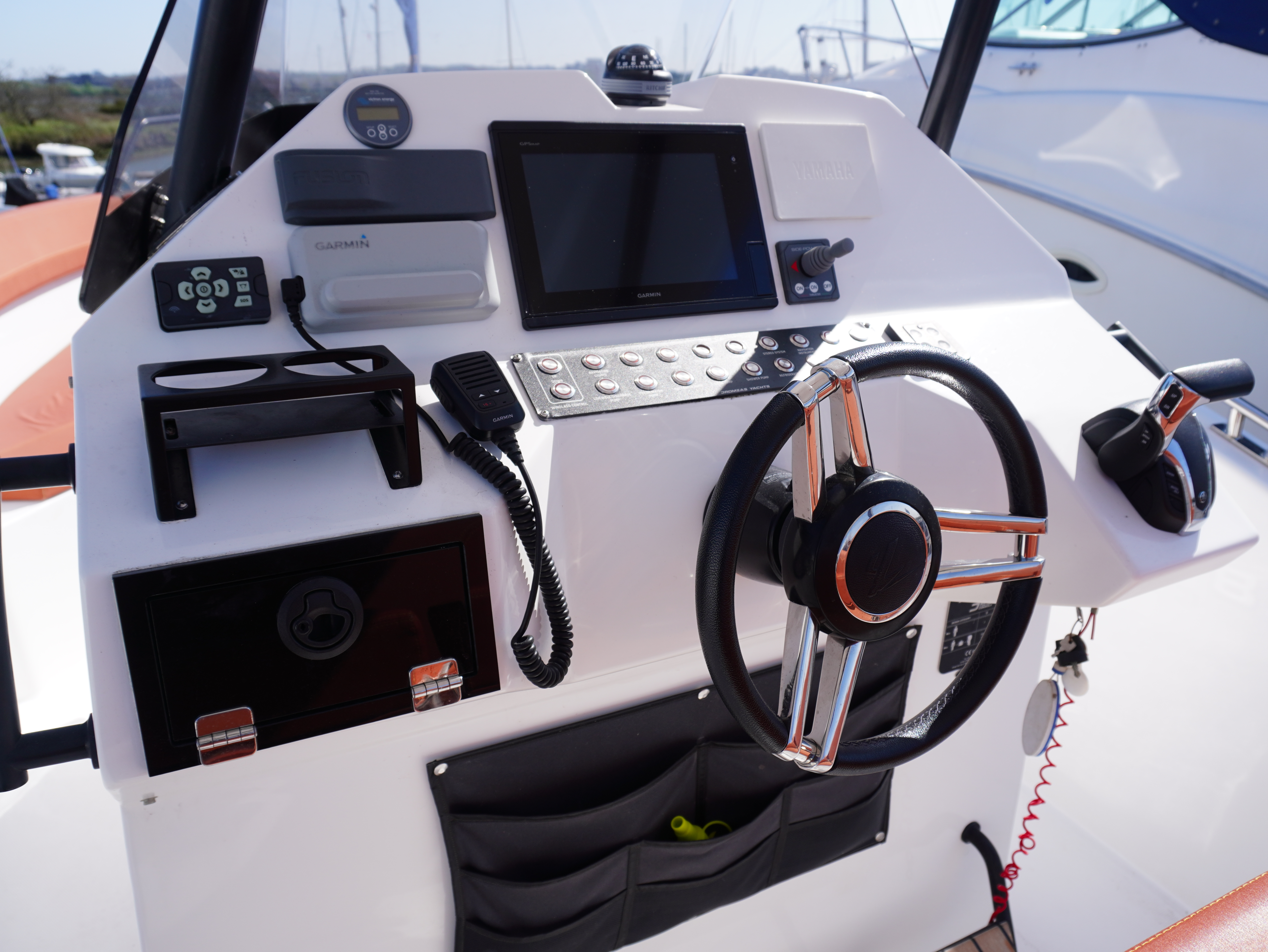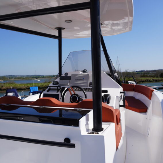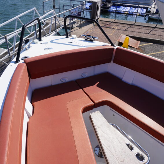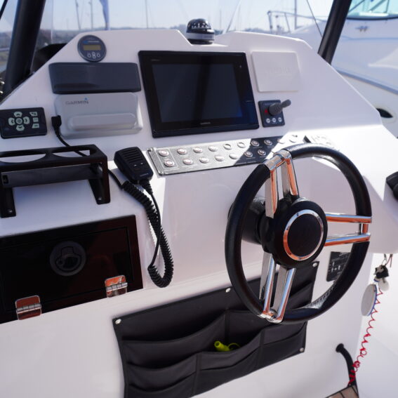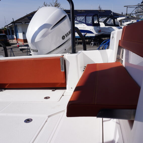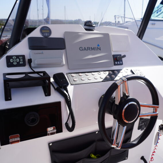 On board, she features a comprehensive navigation and electronics package including Garmin chartplotter and VHF, Yamaha engine data display and Fusion entertainment system with cockpit speakers. Manoeuvring is made effortless thanks to the addition of a Side Power bow thruster and Lectrotab trim tabs, giving excellent control in all conditions and tight marina spaces!