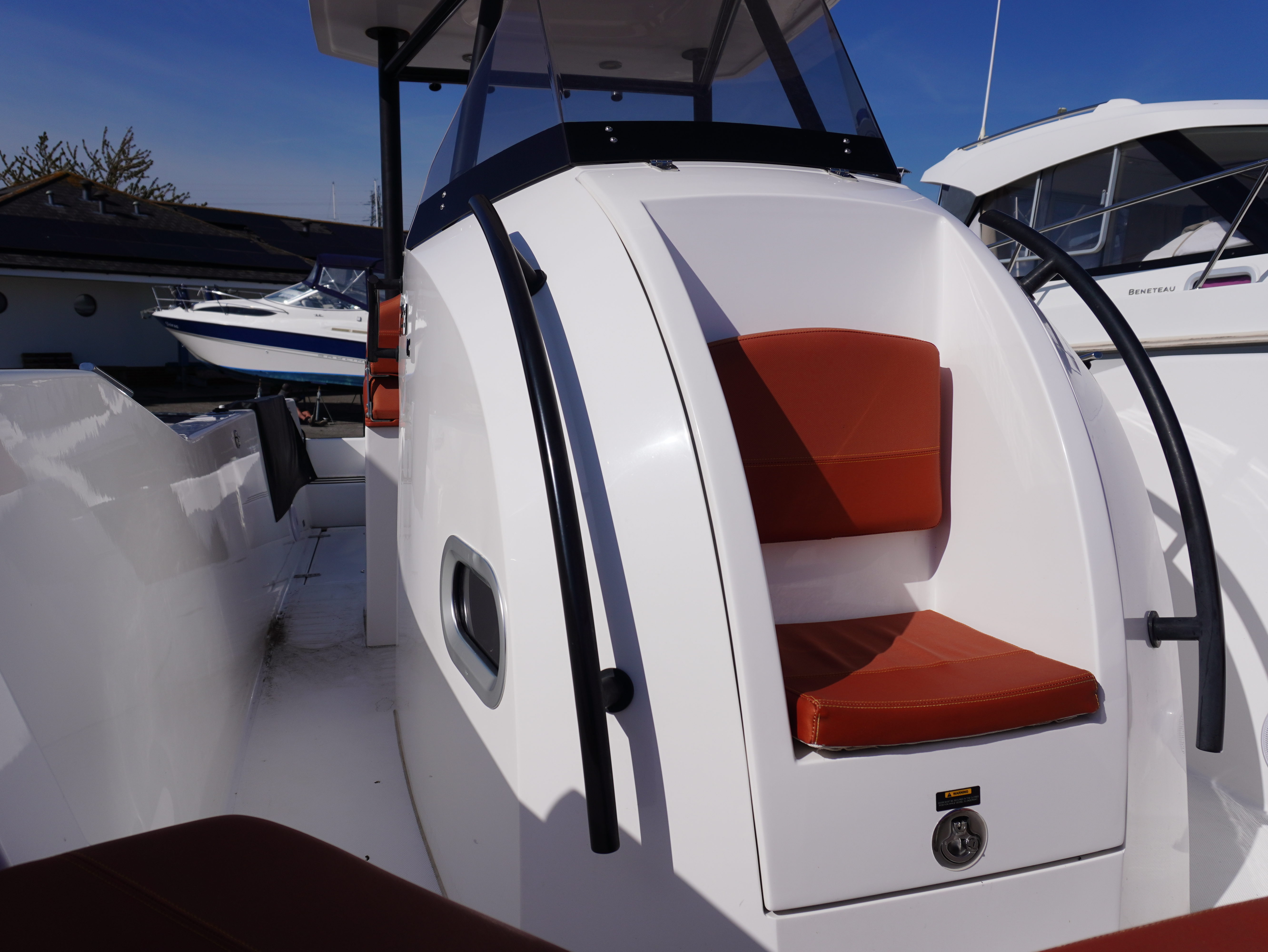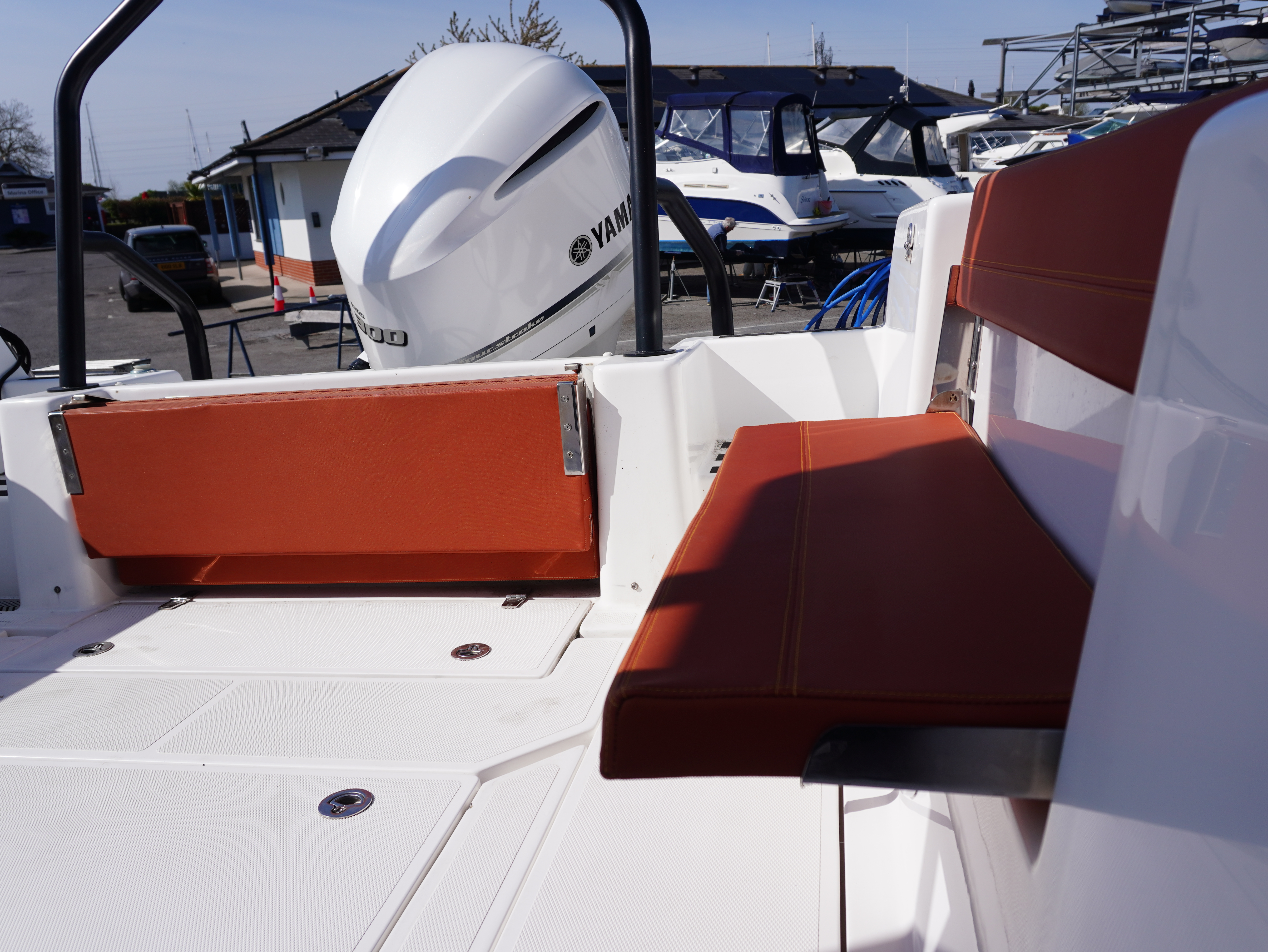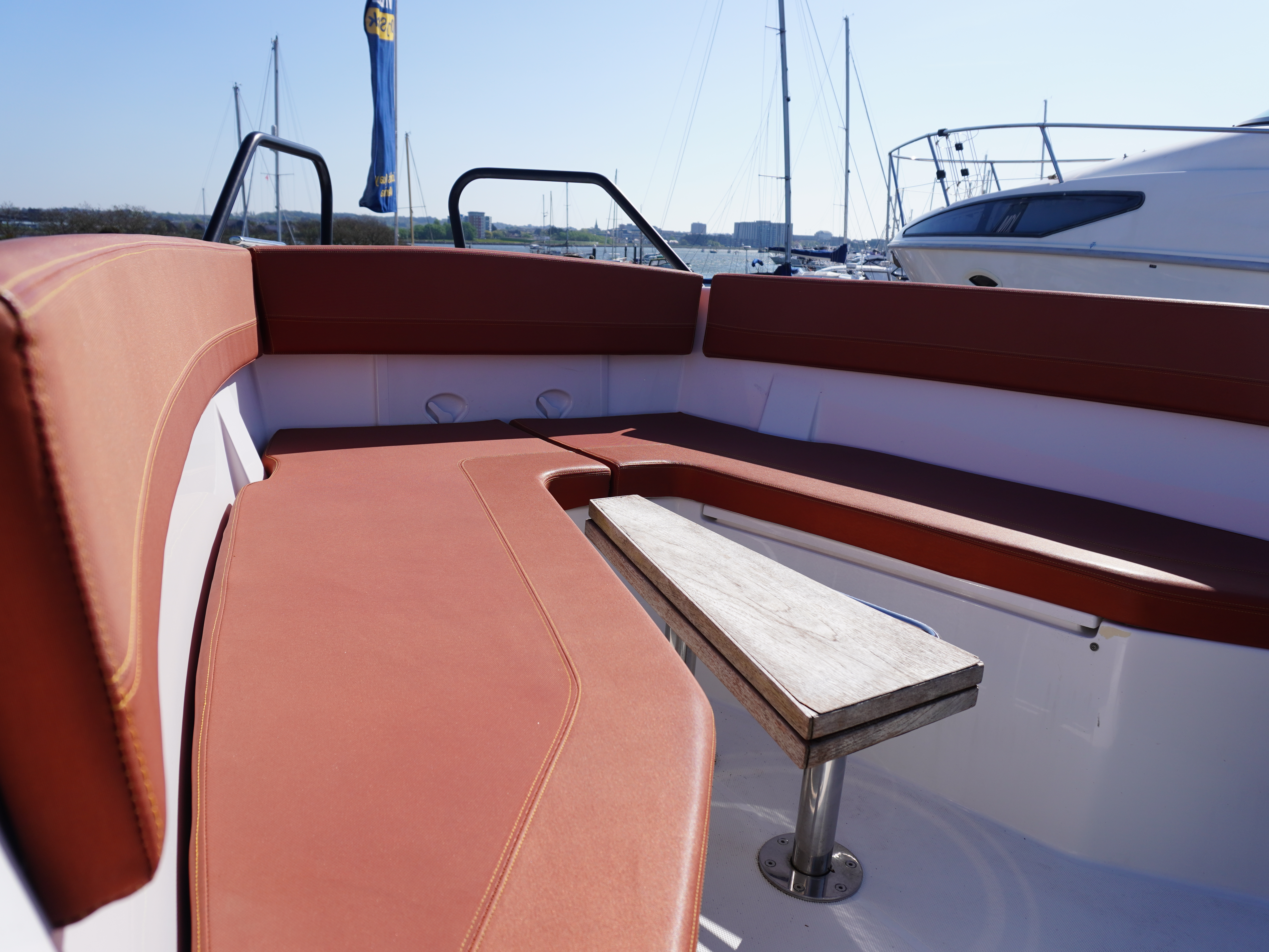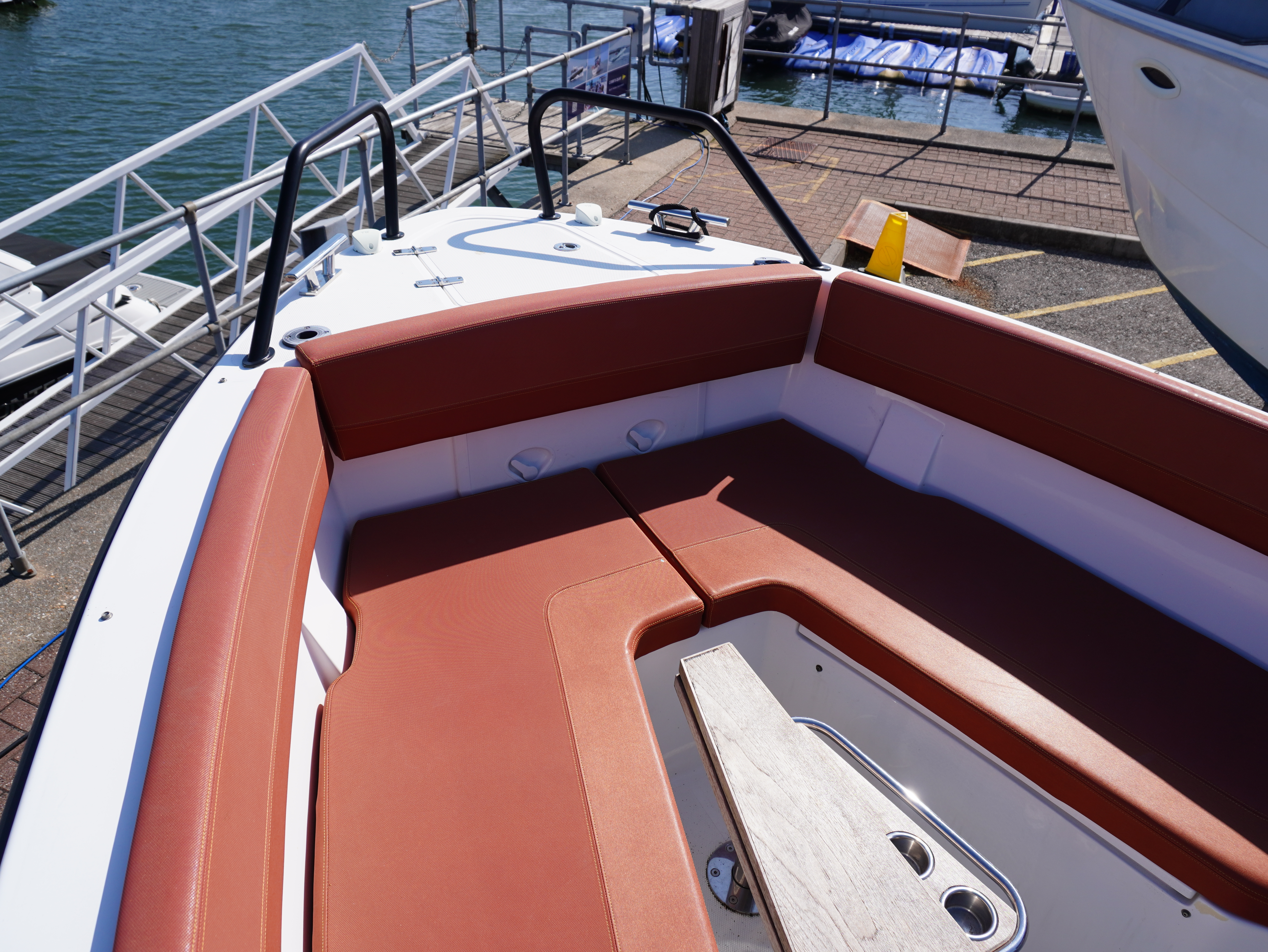 On board, she features a comprehensive navigation and electronics package including Garmin chartplotter and VHF, Yamaha engine data display and Fusion entertainment system with cockpit speakers. Manoeuvring is made effortless thanks to the addition of a Side Power bow thruster and Lectrotab trim tabs, giving excellent control in all conditions and tight marina spaces!