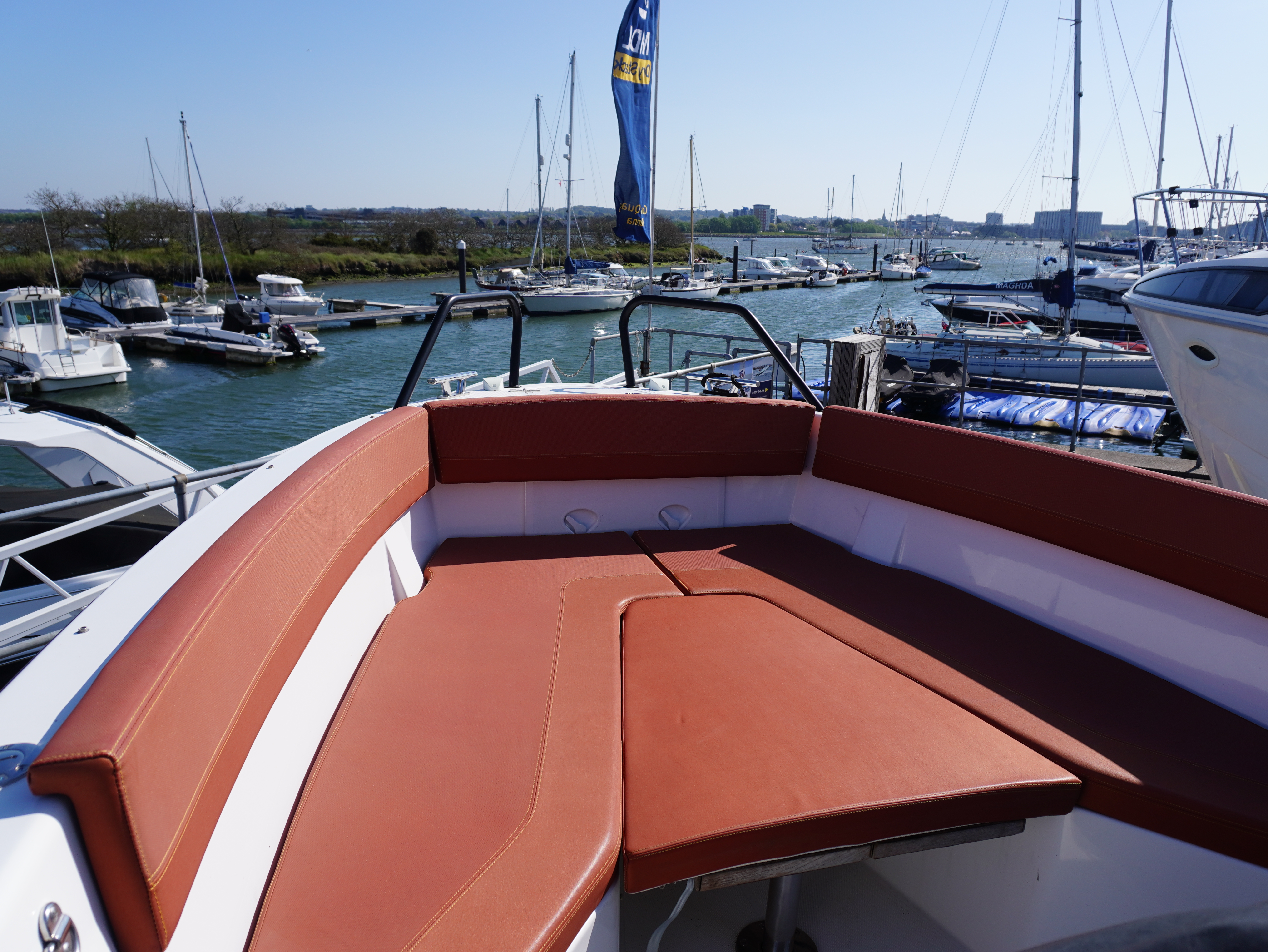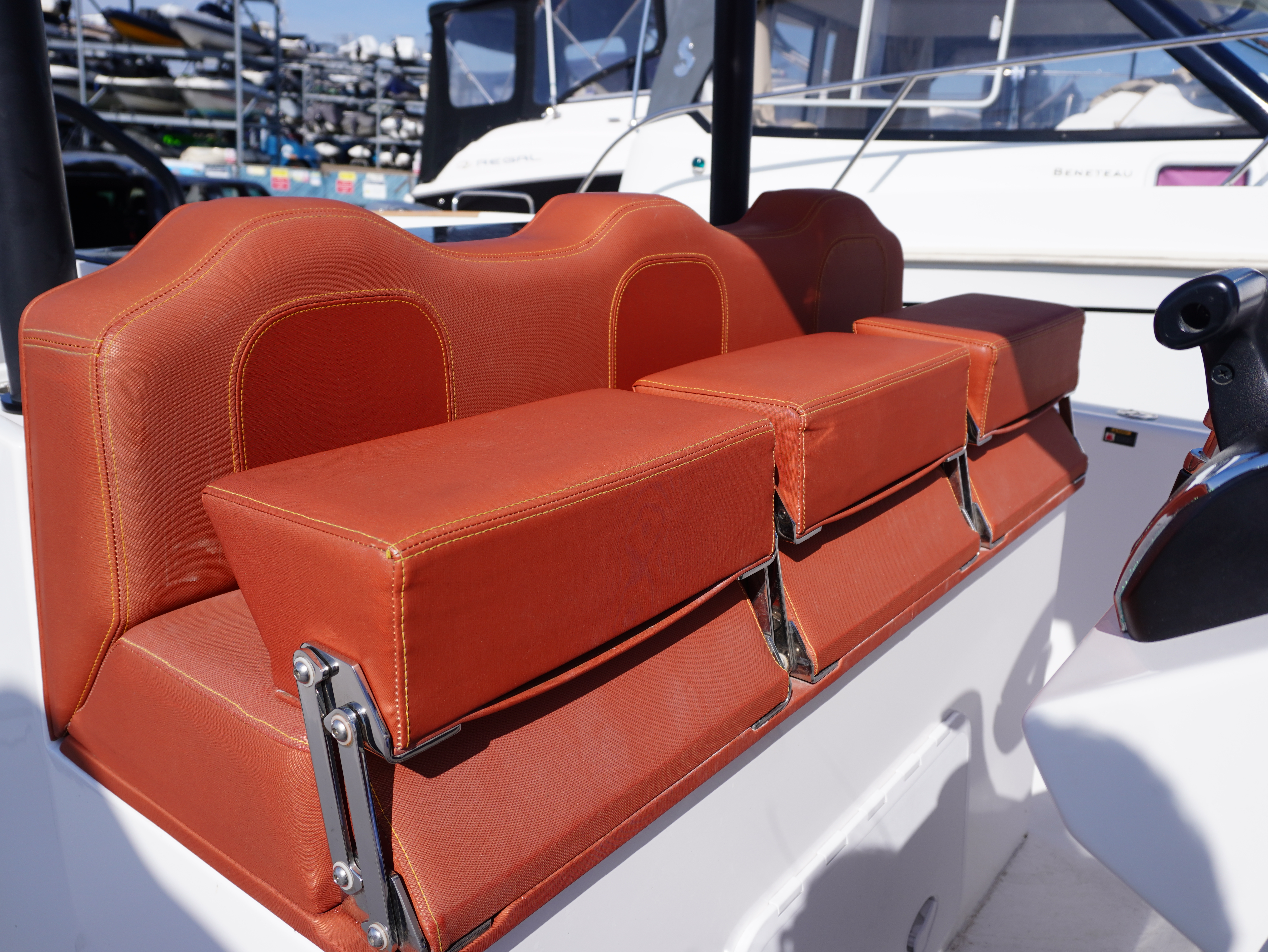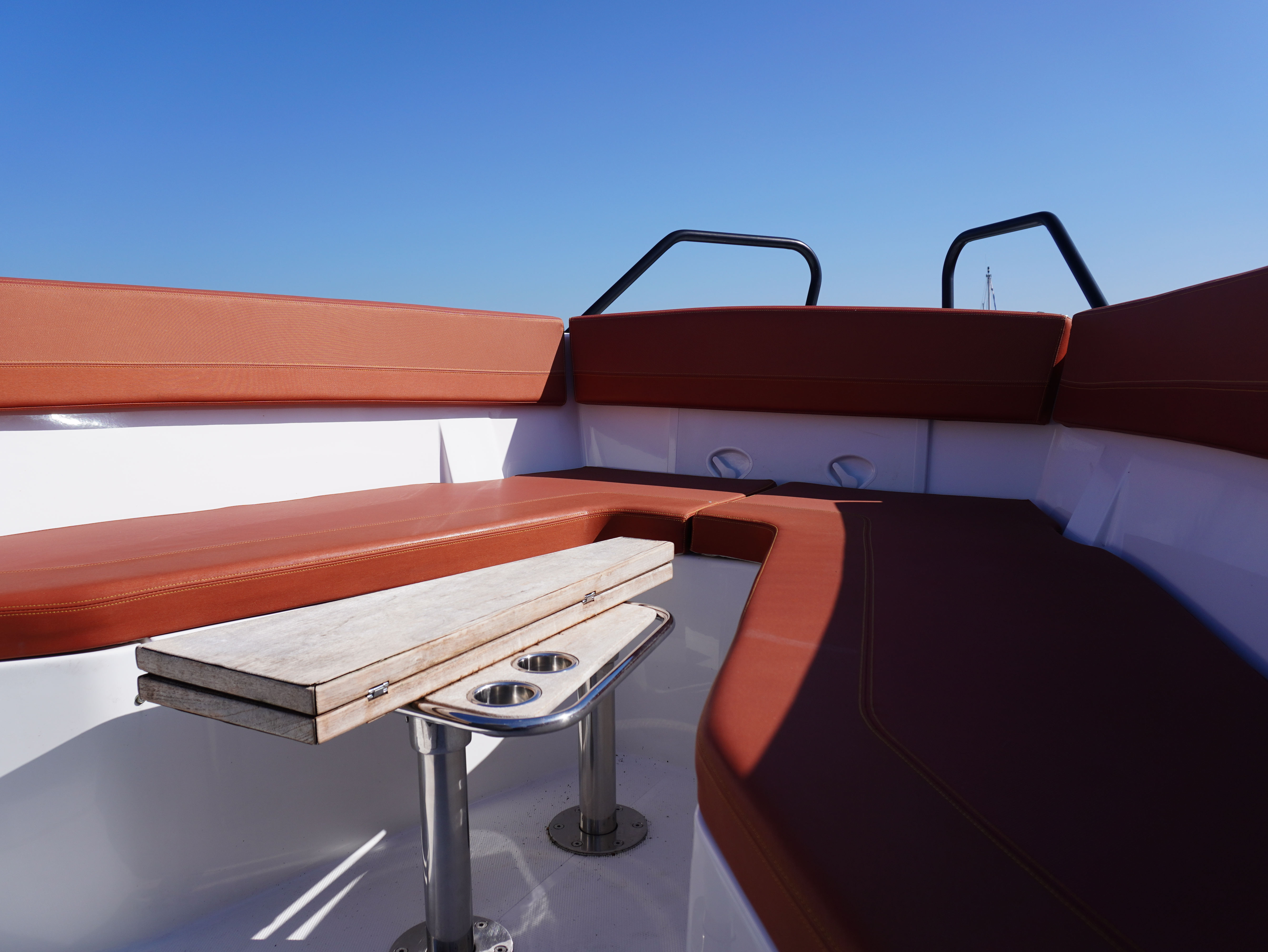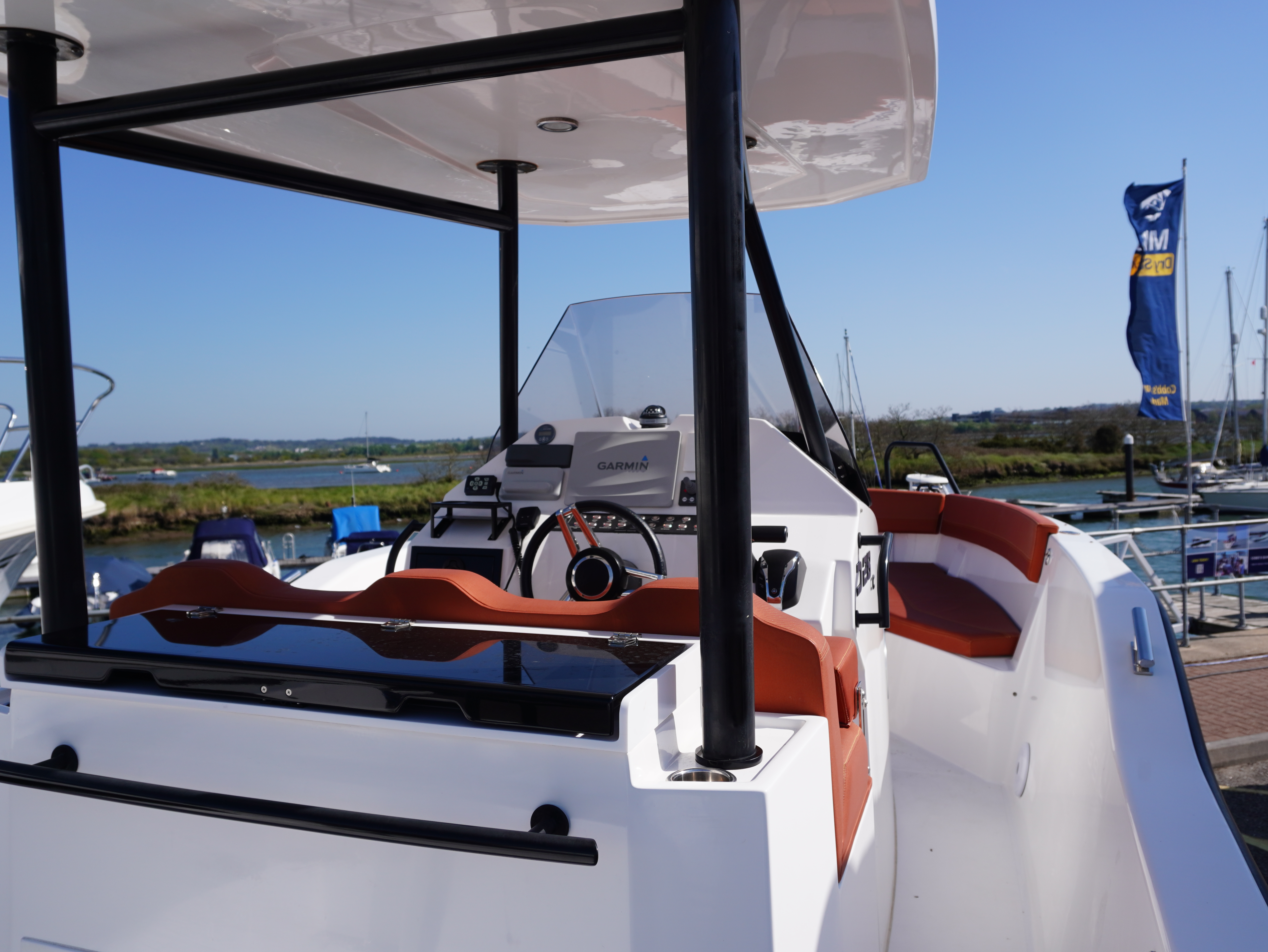 On board, she features a comprehensive navigation and electronics package including Garmin chartplotter and VHF, Yamaha engine data display and Fusion entertainment system with cockpit speakers. Manoeuvring is made effortless thanks to the addition of a Side Power bow thruster and Lectrotab trim tabs, giving excellent control in all conditions and tight marina spaces!