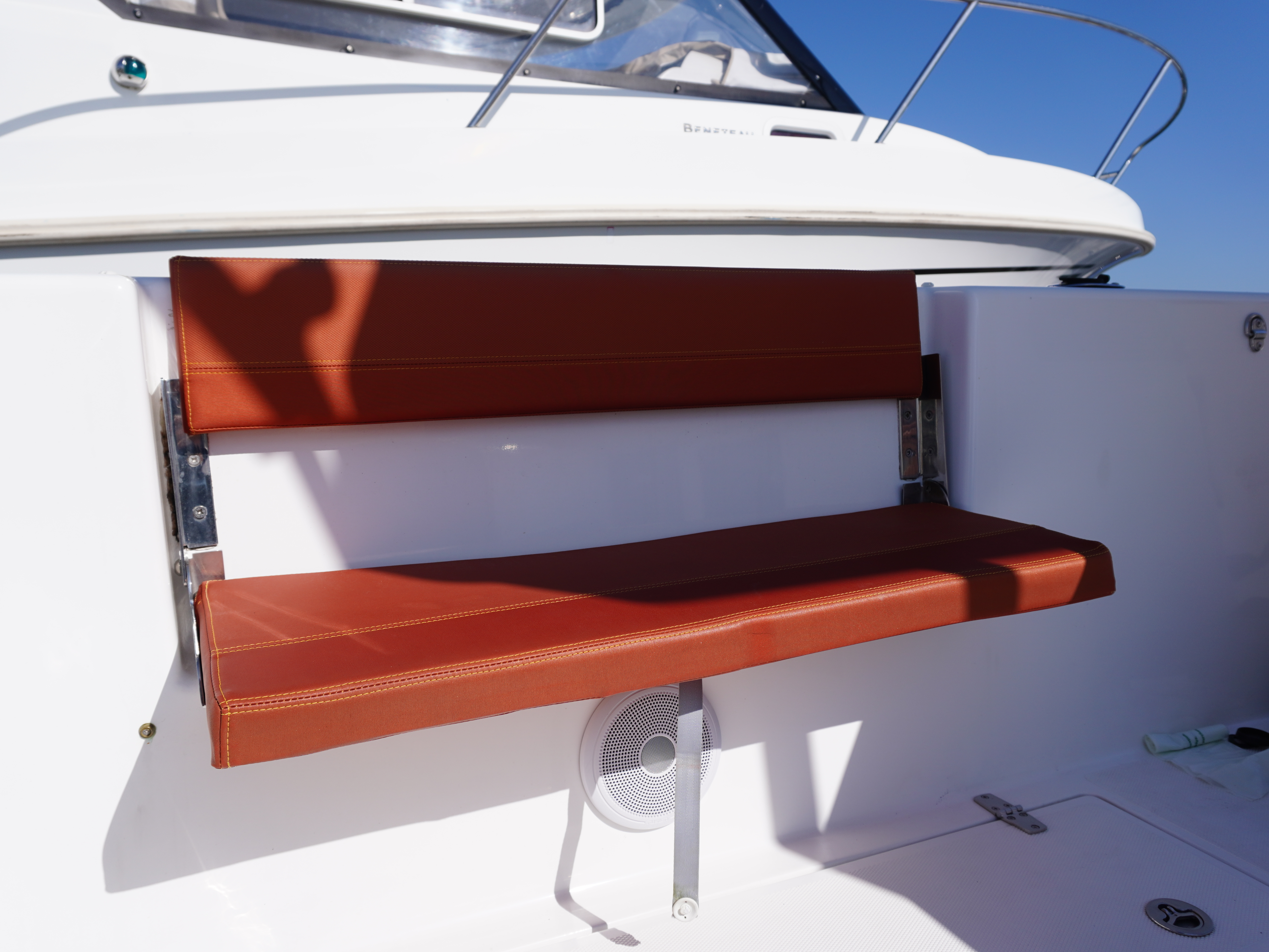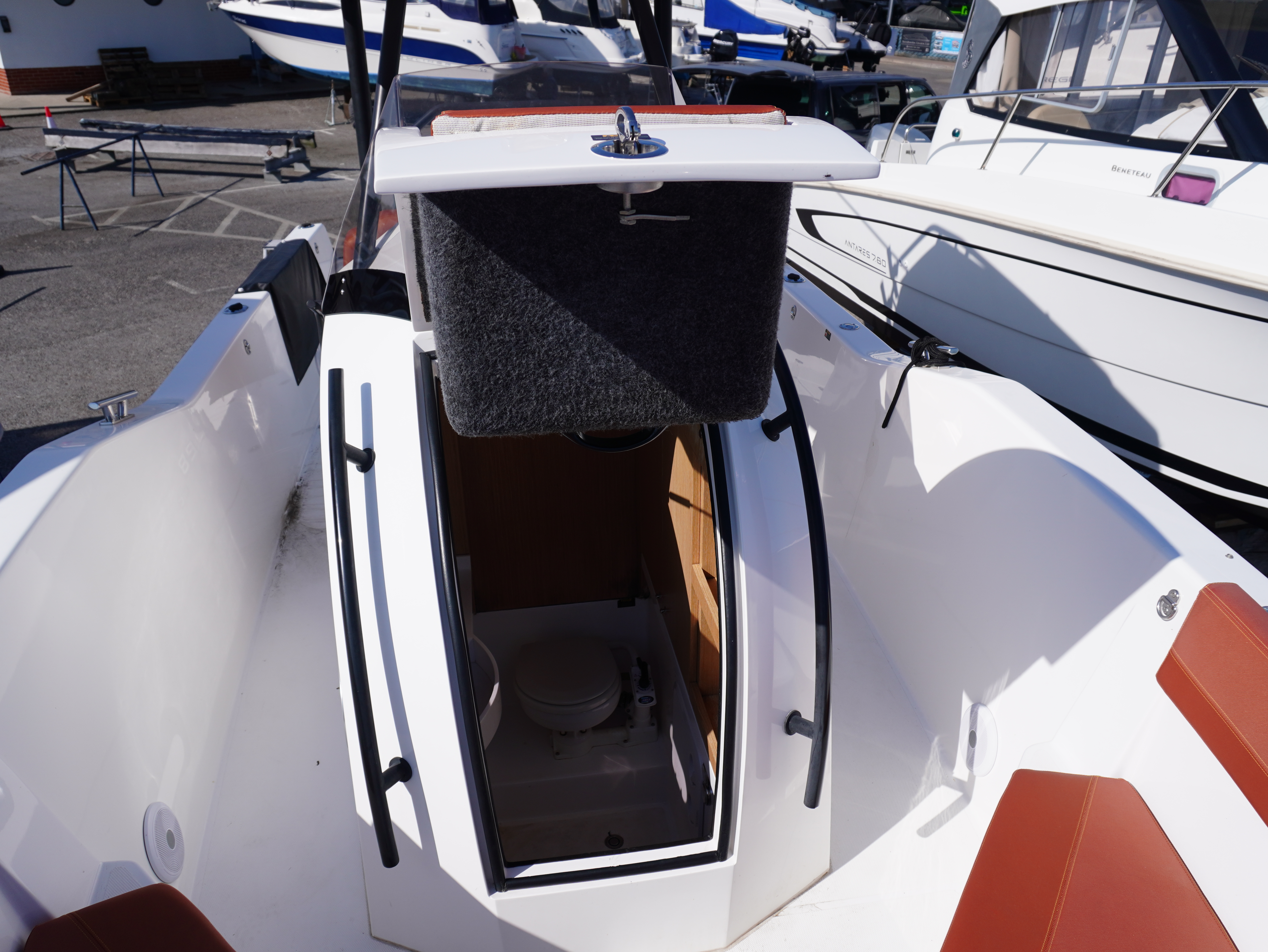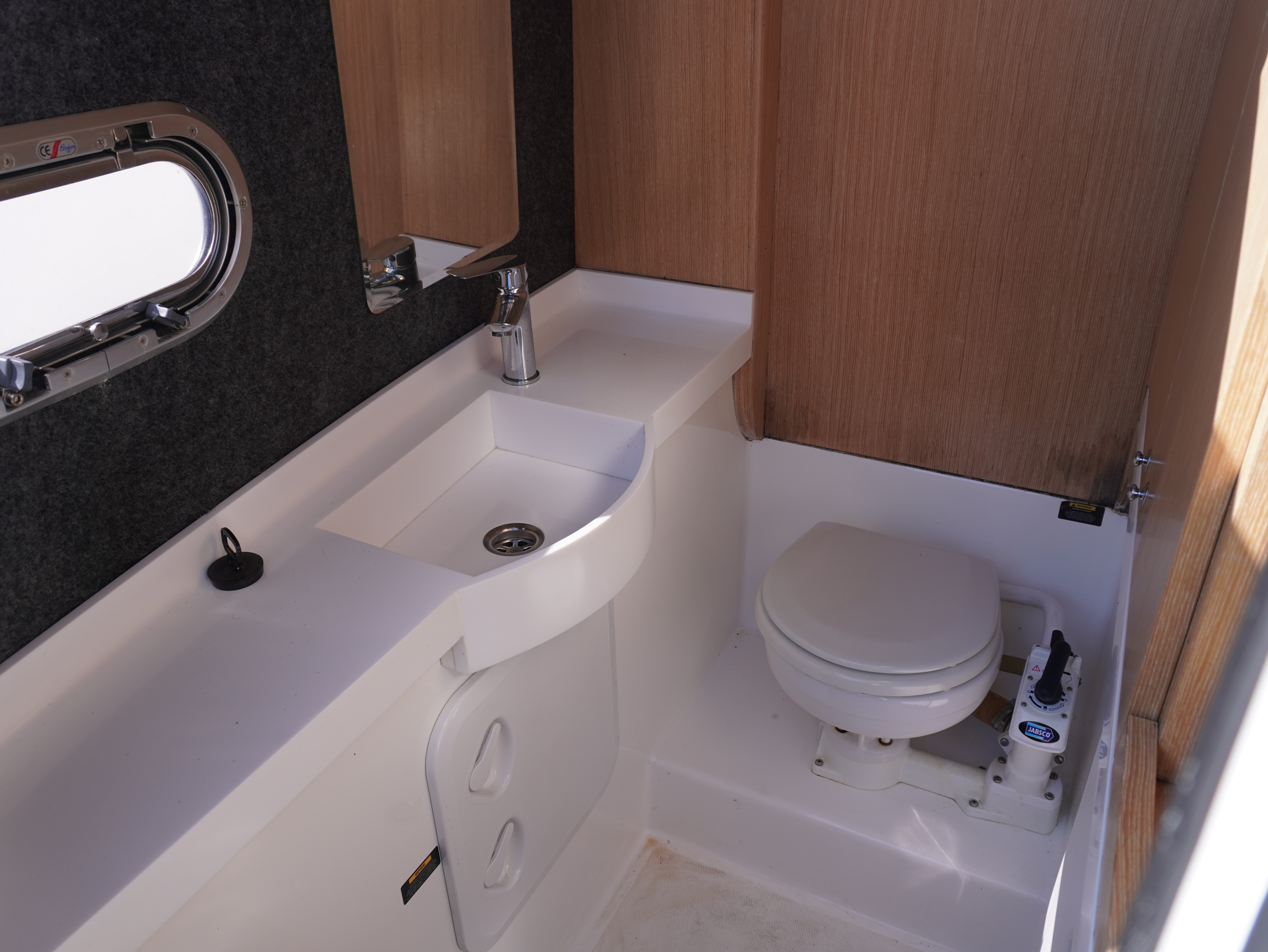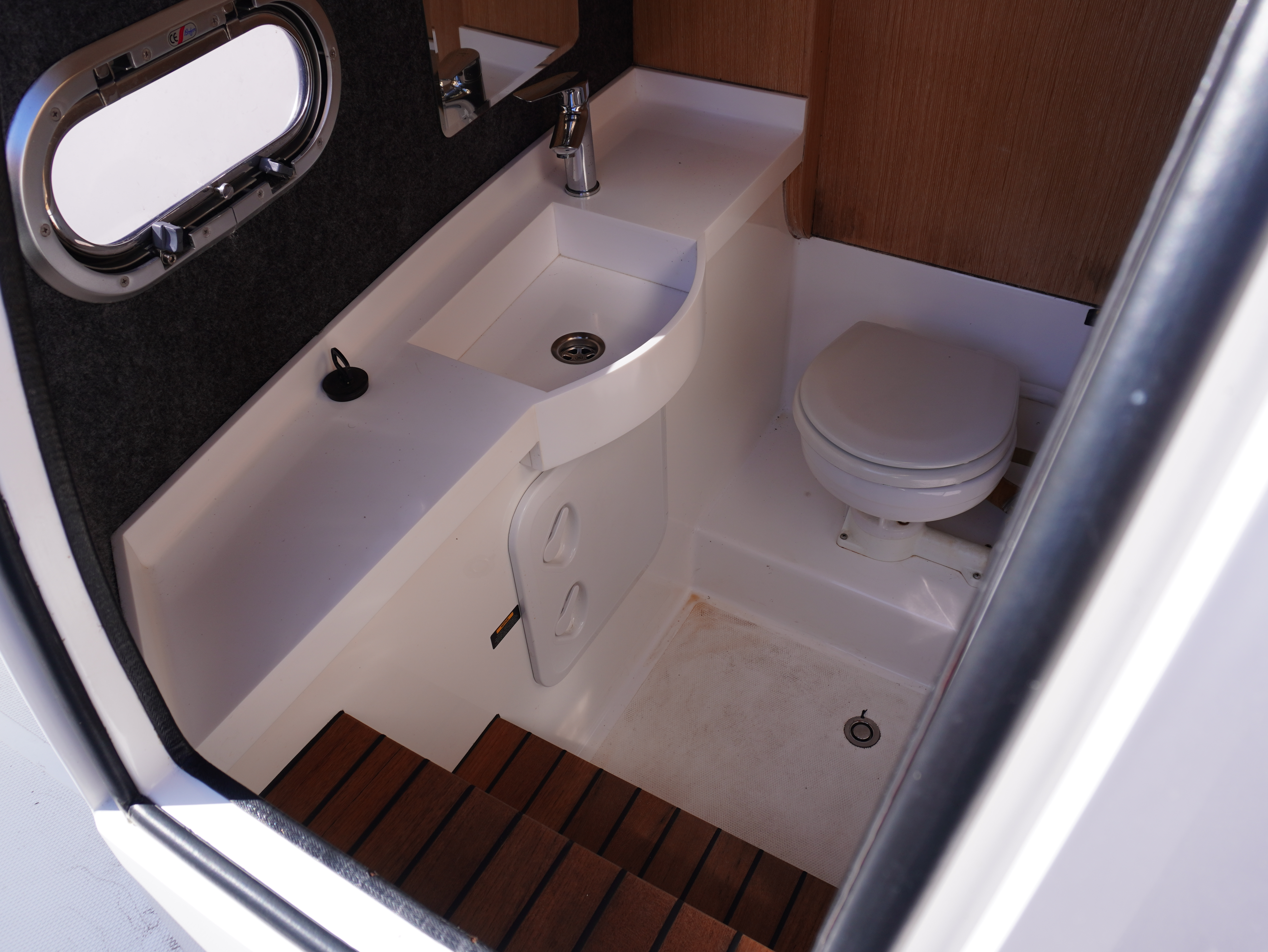 Her cockpit layout is designed for both comfort and flexibility, with bow sunpad conversion and table, full cockpit cushions, and a wet bar area complete with sink, tap and refrigerator. A Jabsco manual toilet is fitted within the console, alongside storage and practical use of space. The self-draining cockpit, stainless steel deck hardware, electric anchor windlass and re-boarding swim ladder all reinforce her usability as a proper all-rounder!