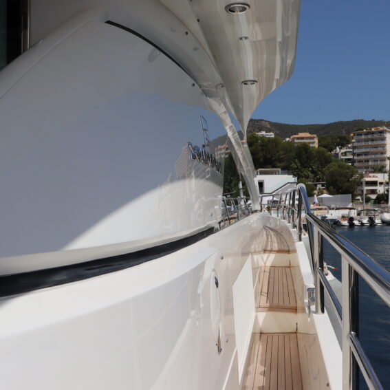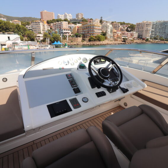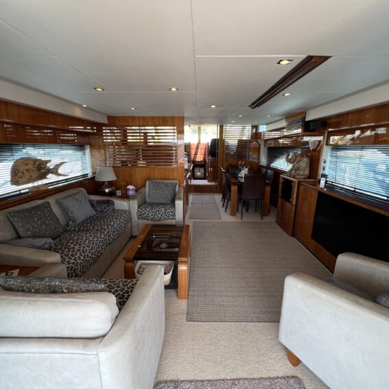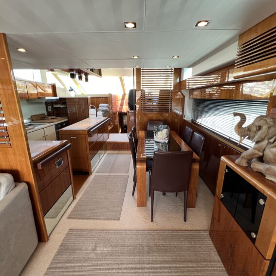 The Fairline 68 Squadron was and still is a class leading design from the Fairline shipyard, the clever design of a flybridge boat and still boast garage and crew cabin in a 68 foot is impressive, then to have Four good sized Cabins, large Saloon and Galley next to the helm, the 68 perhaps ahead of the modern designs of Today!