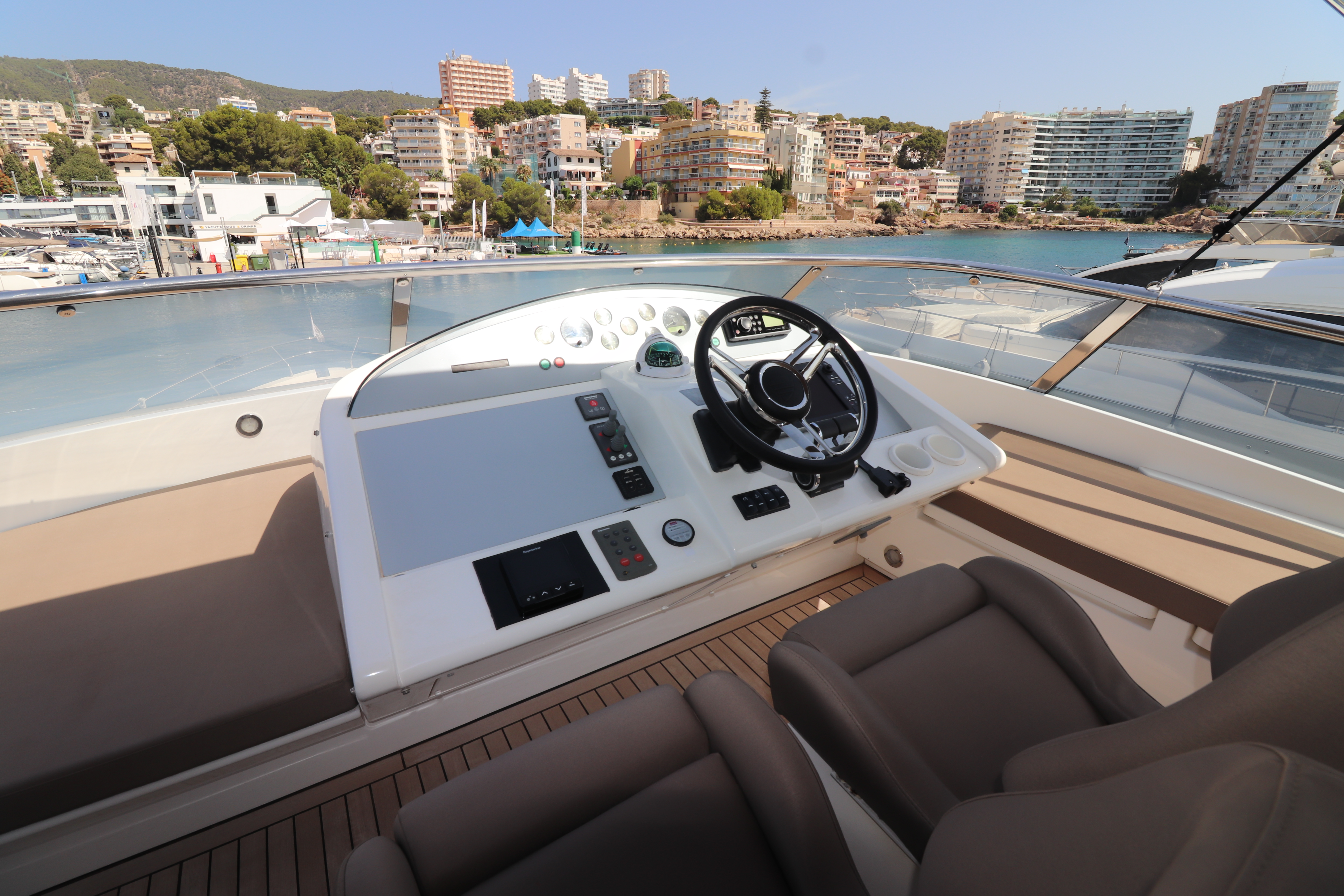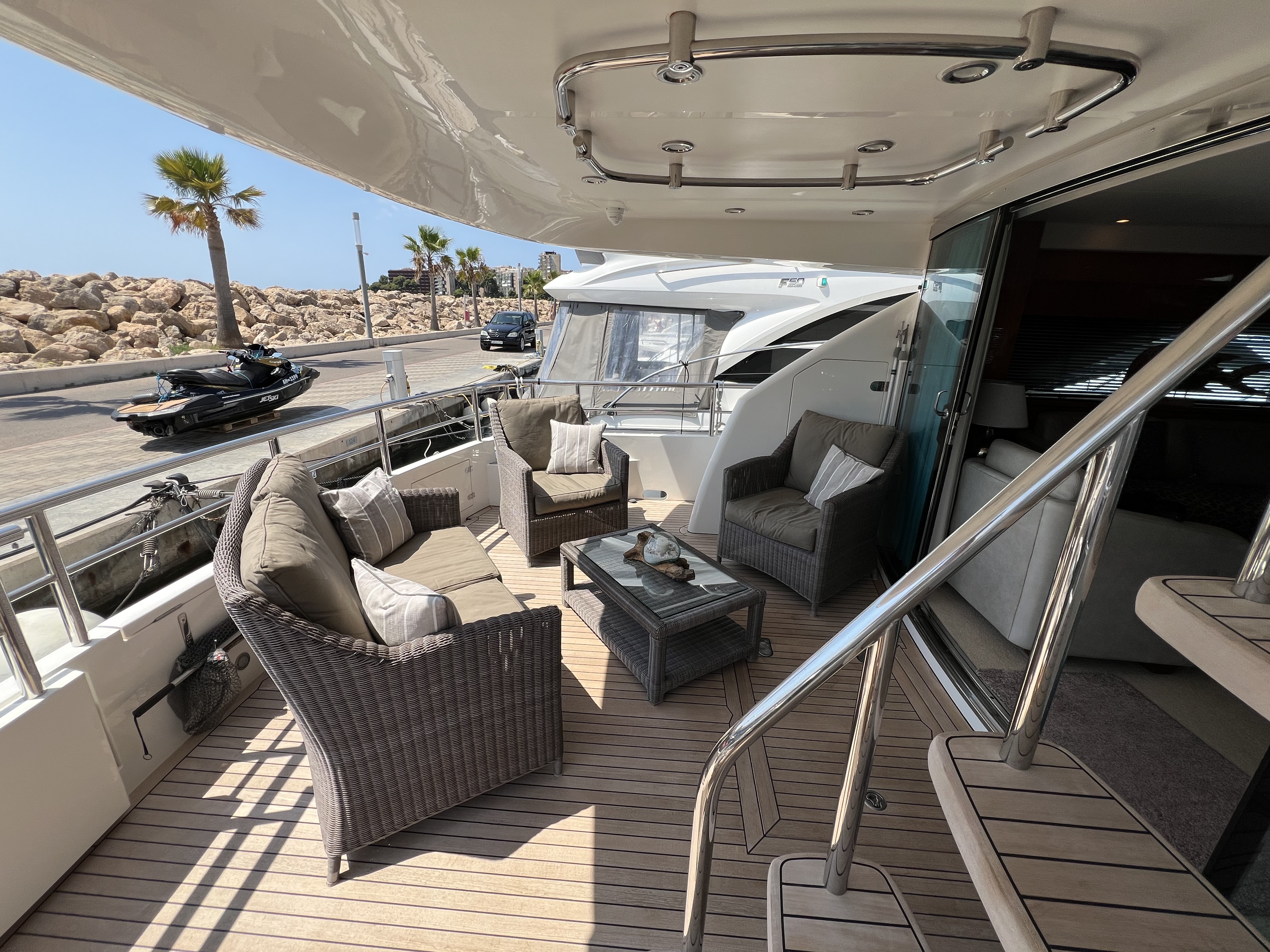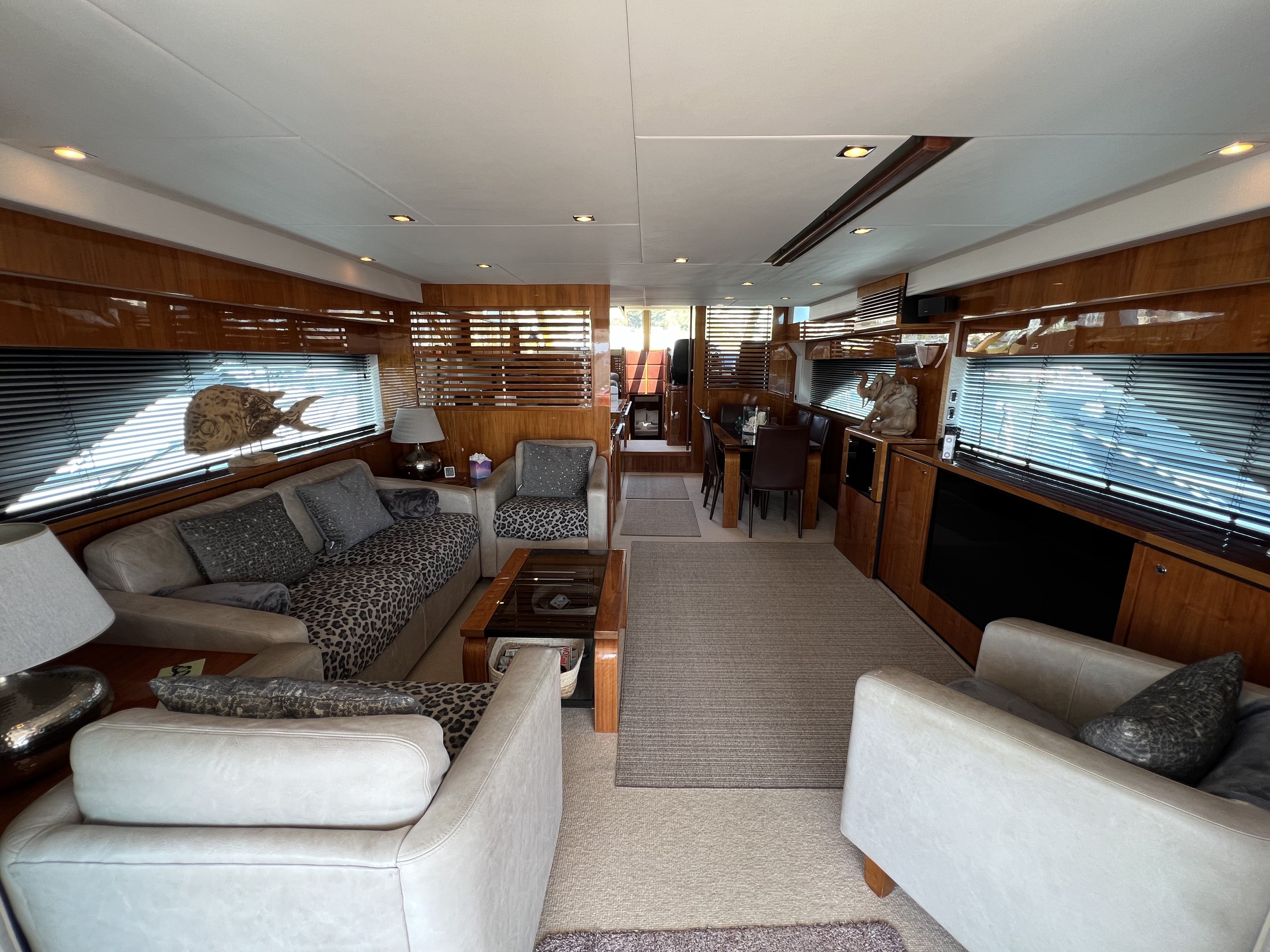 The Fairline 68 Squadron was and still is a class leading design from the Fairline shipyard, the clever design of a flybridge boat and still boast garage and crew cabin in a 68 foot is impressive, then to have Four good sized Cabins, large Saloon and Galley next to the helm, the 68 perhaps ahead of the modern designs of Today!