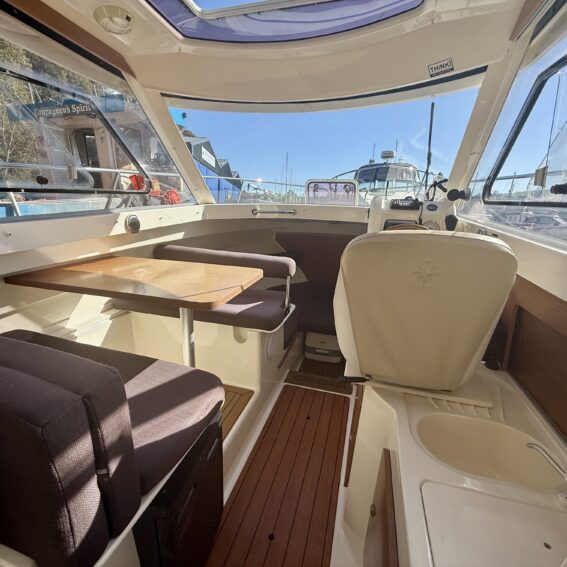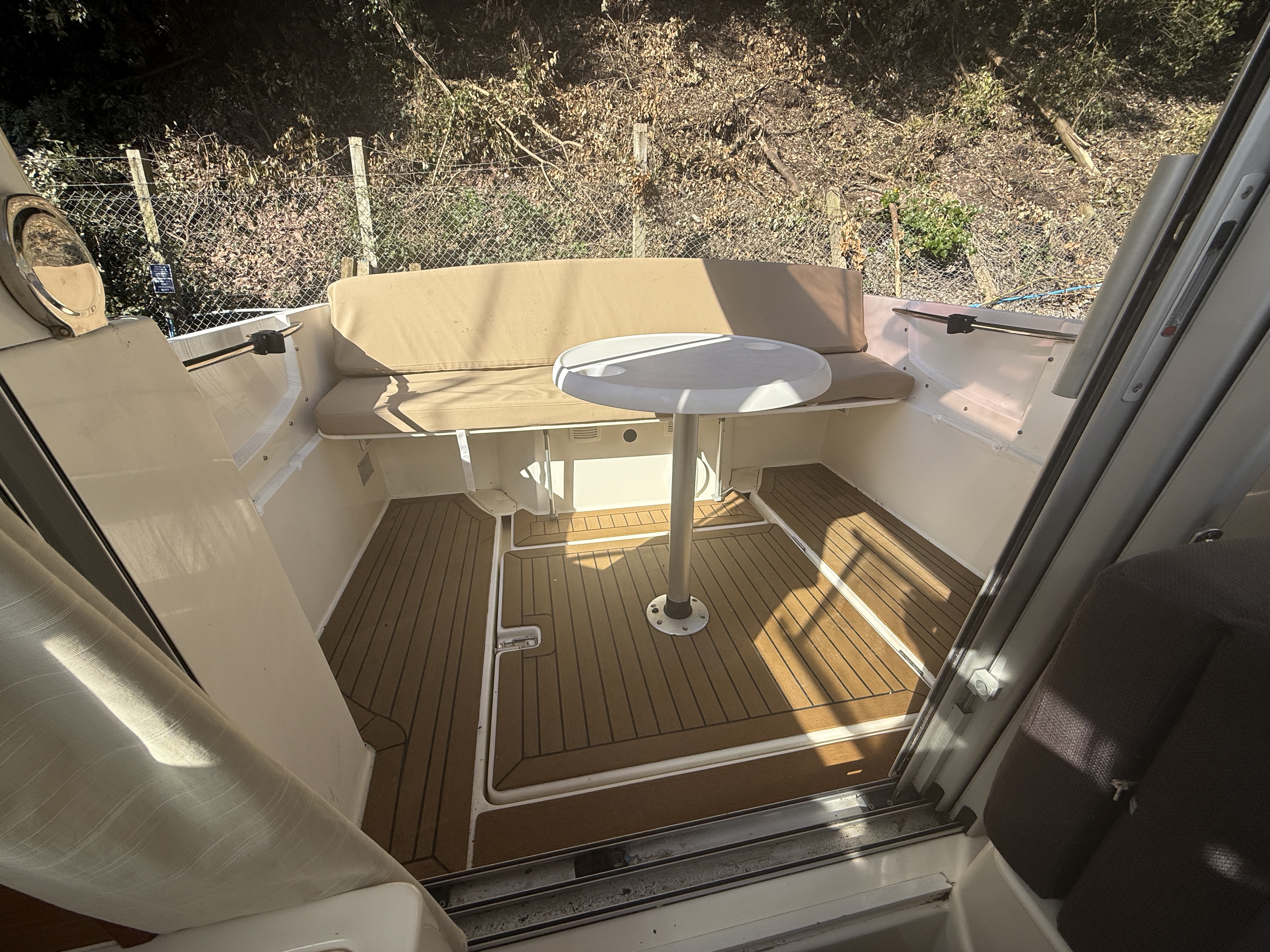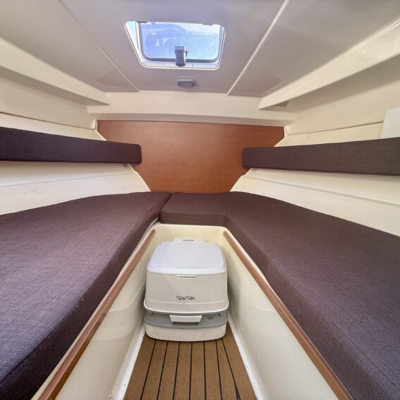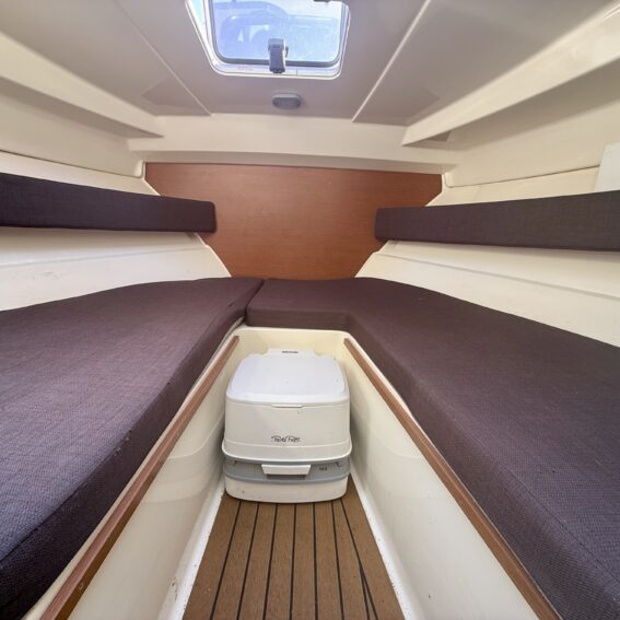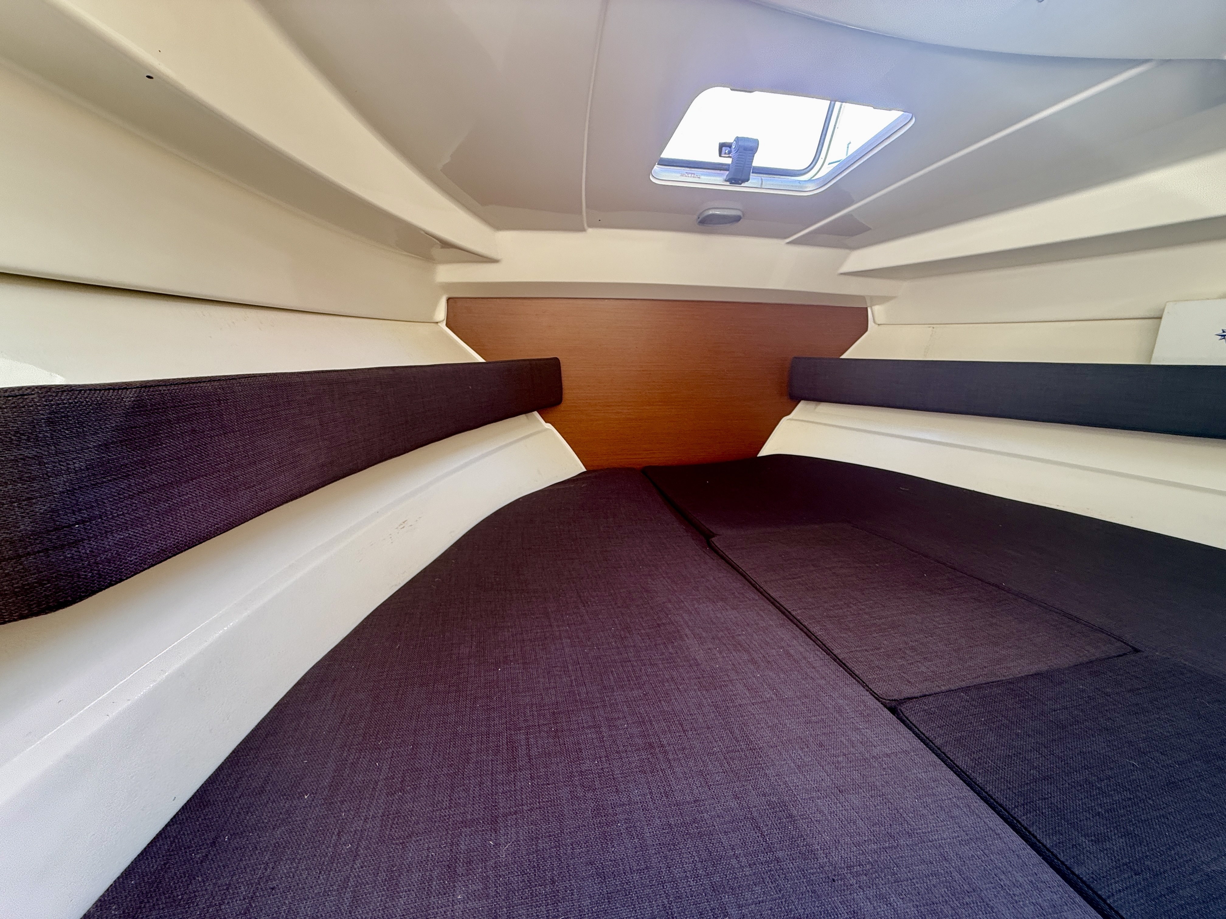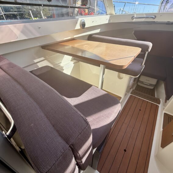 Externally, the cockpit is a great space for both entertaining and fishing, featuring removable seating and table, rod holders, and easy access via the swim ladder. Whether you’re casting lines or enjoying a quiet evening at anchor, this boat adapts effortlessly to your plans!