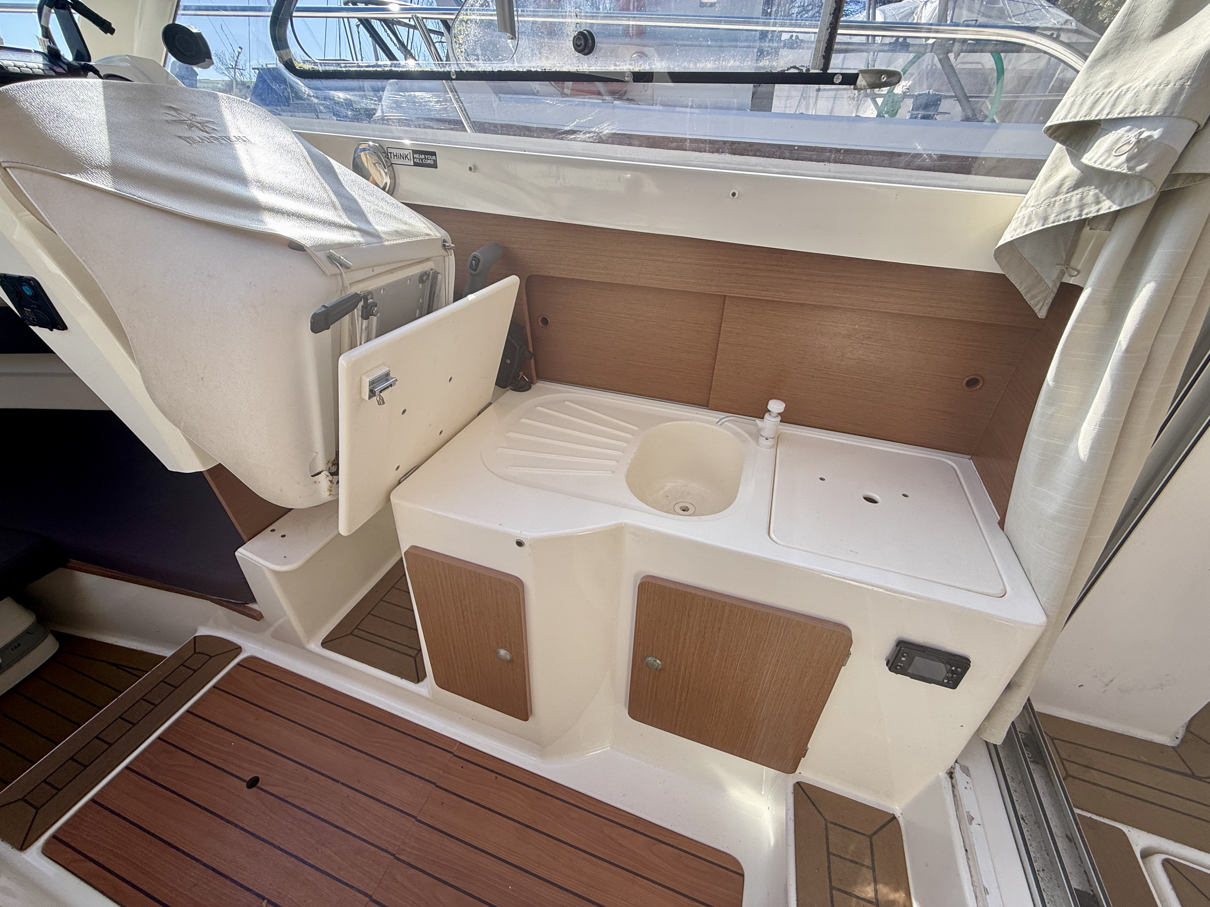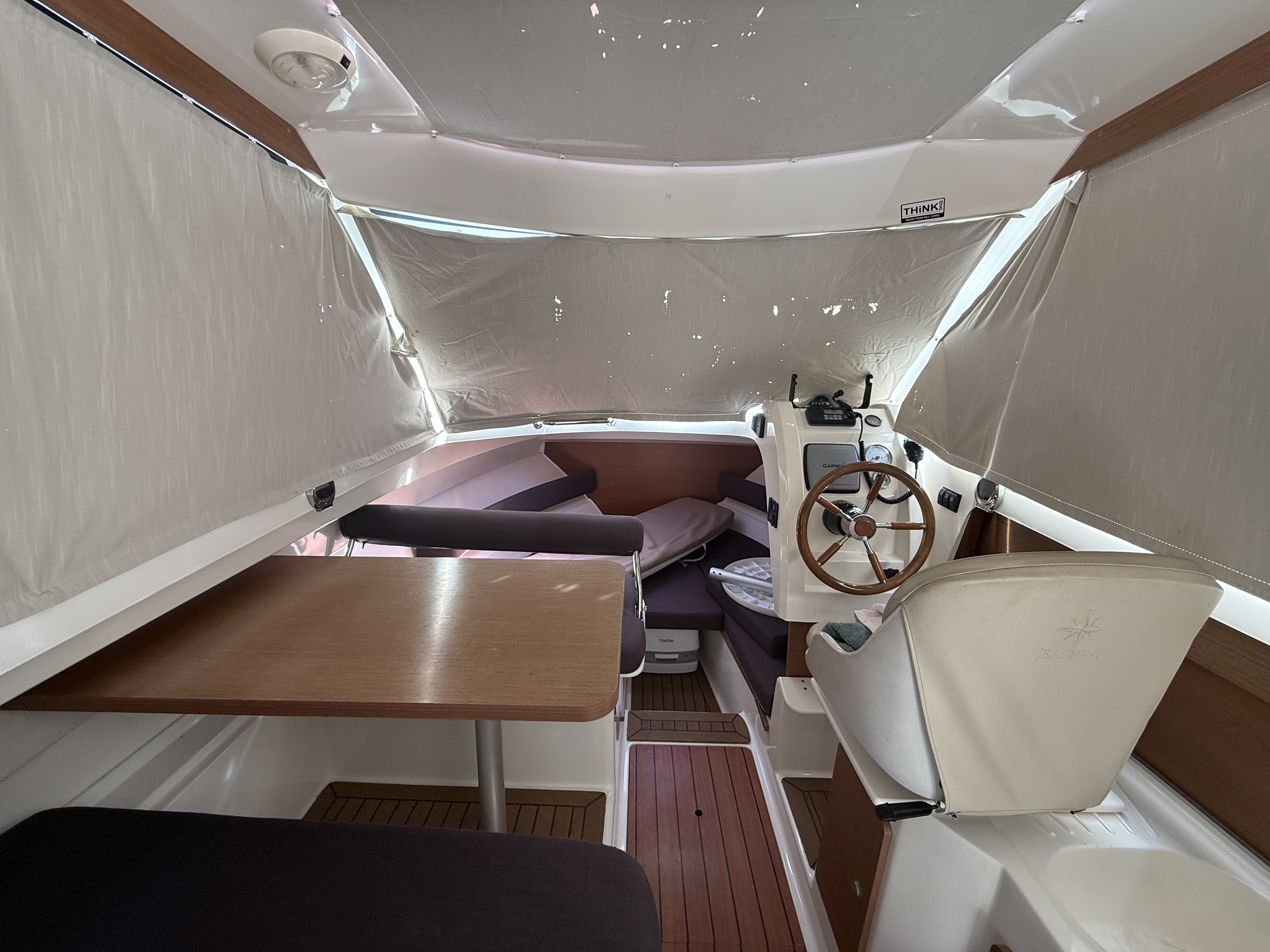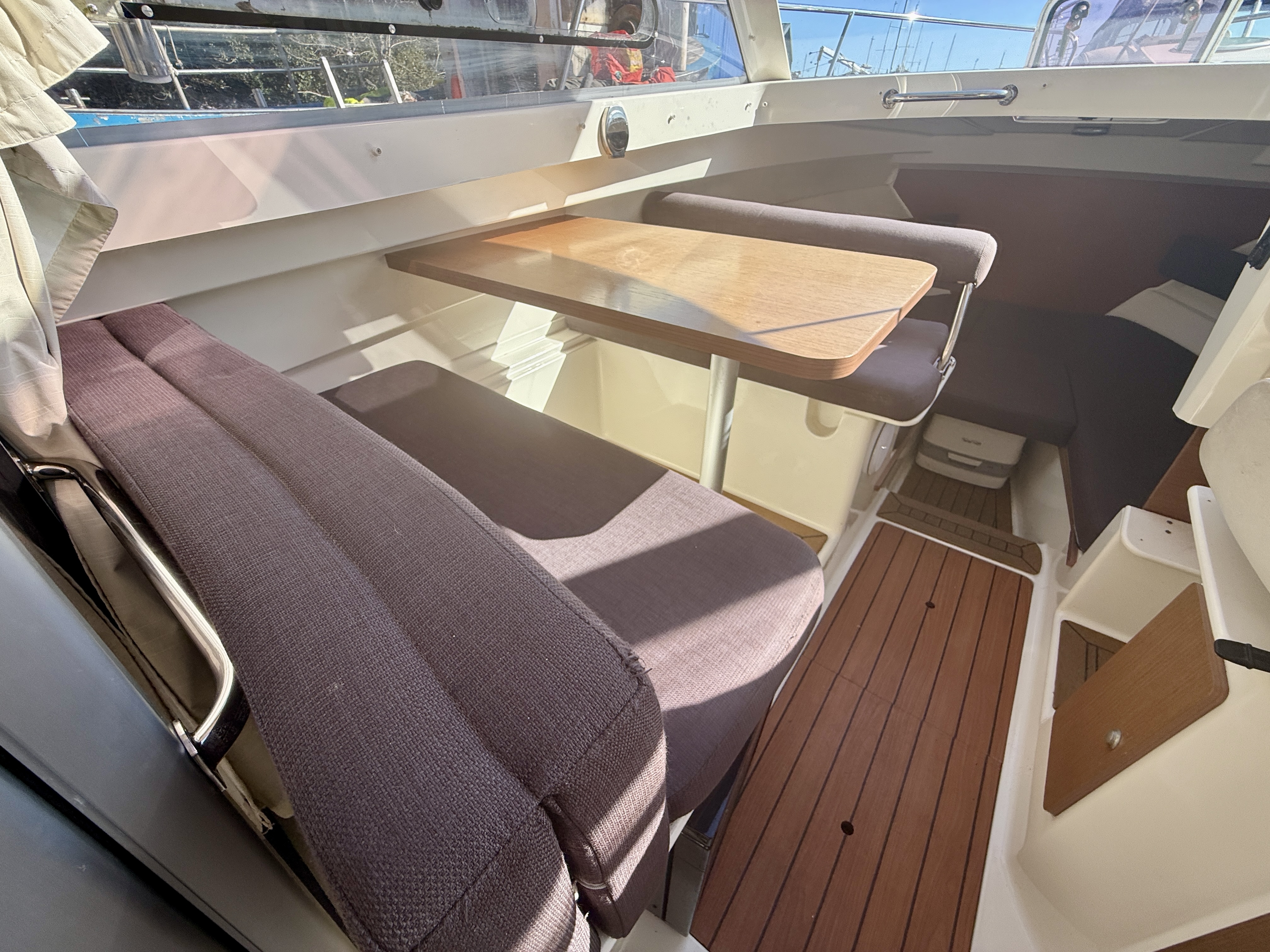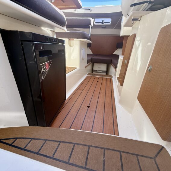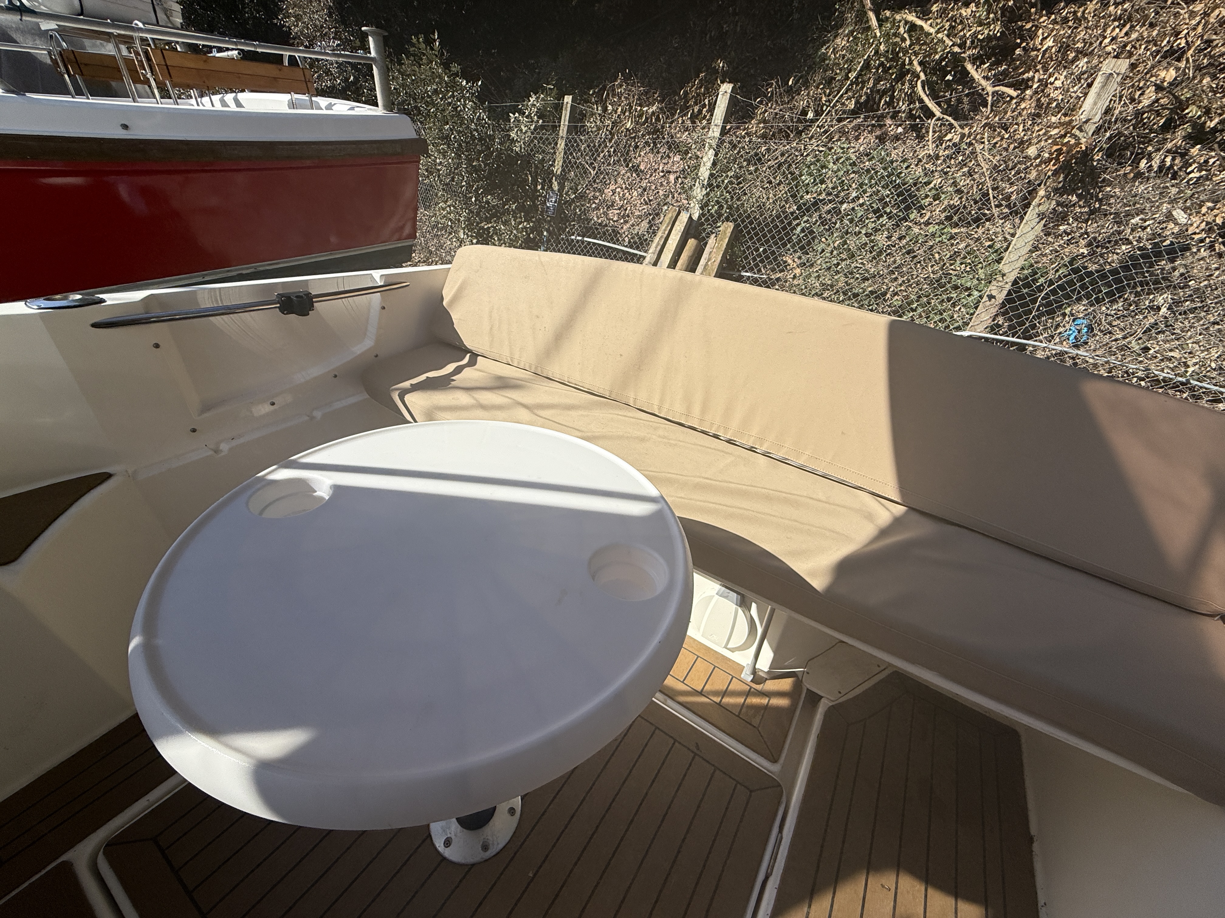 Externally, the cockpit is a great space for both entertaining and fishing, featuring removable seating and table, rod holders, and easy access via the swim ladder. Whether you’re casting lines or enjoying a quiet evening at anchor, this boat adapts effortlessly to your plans!