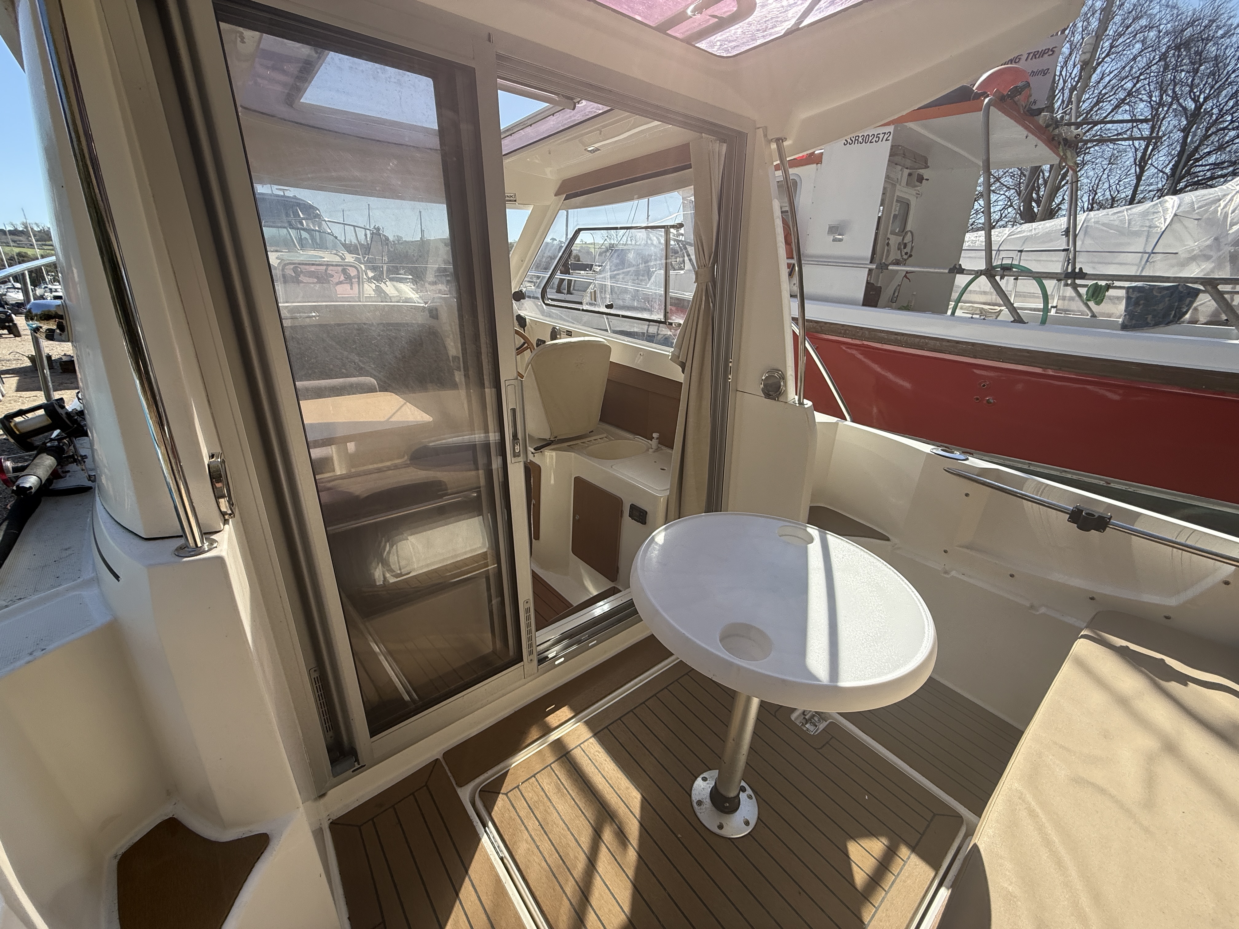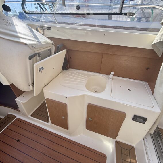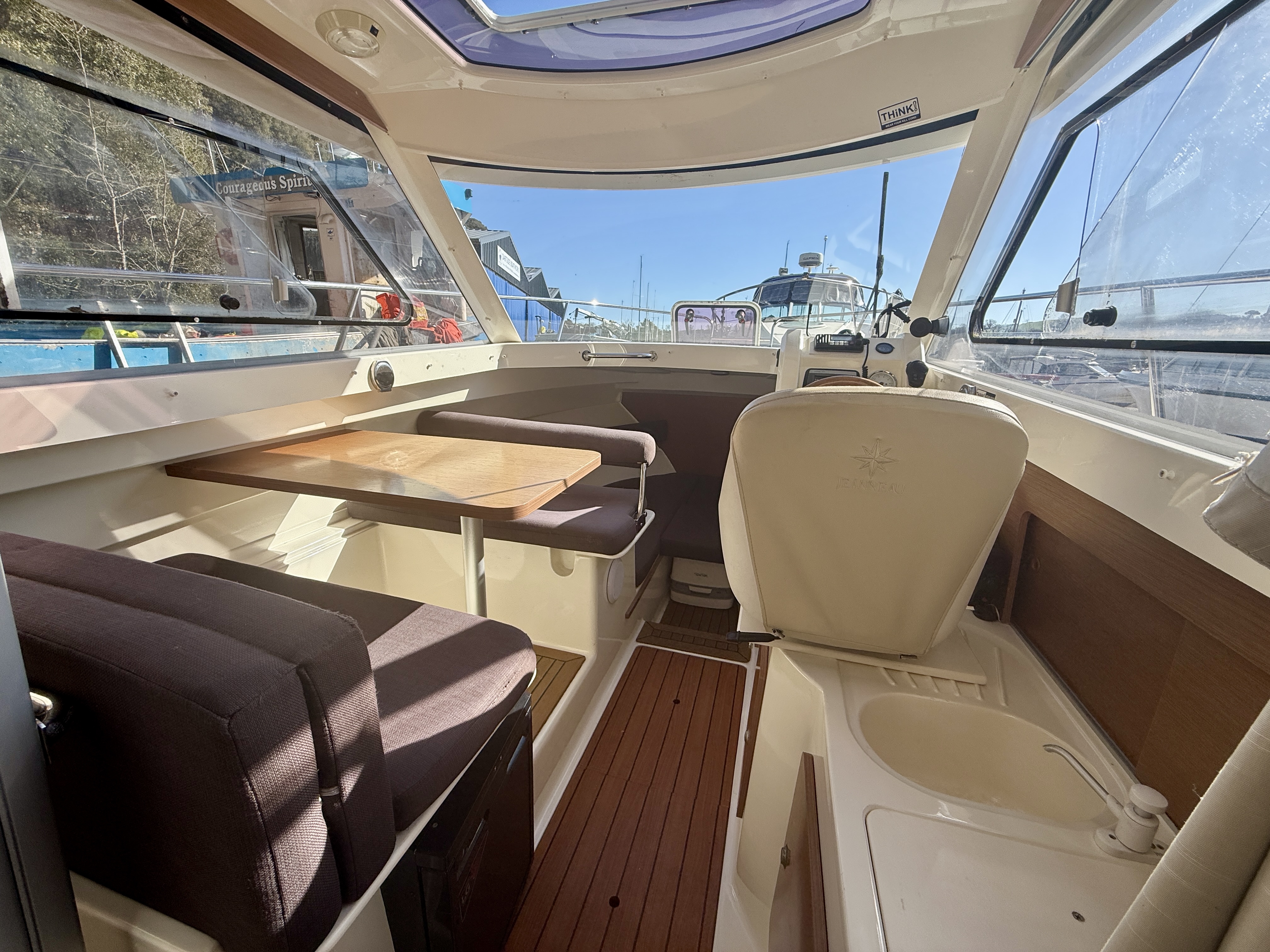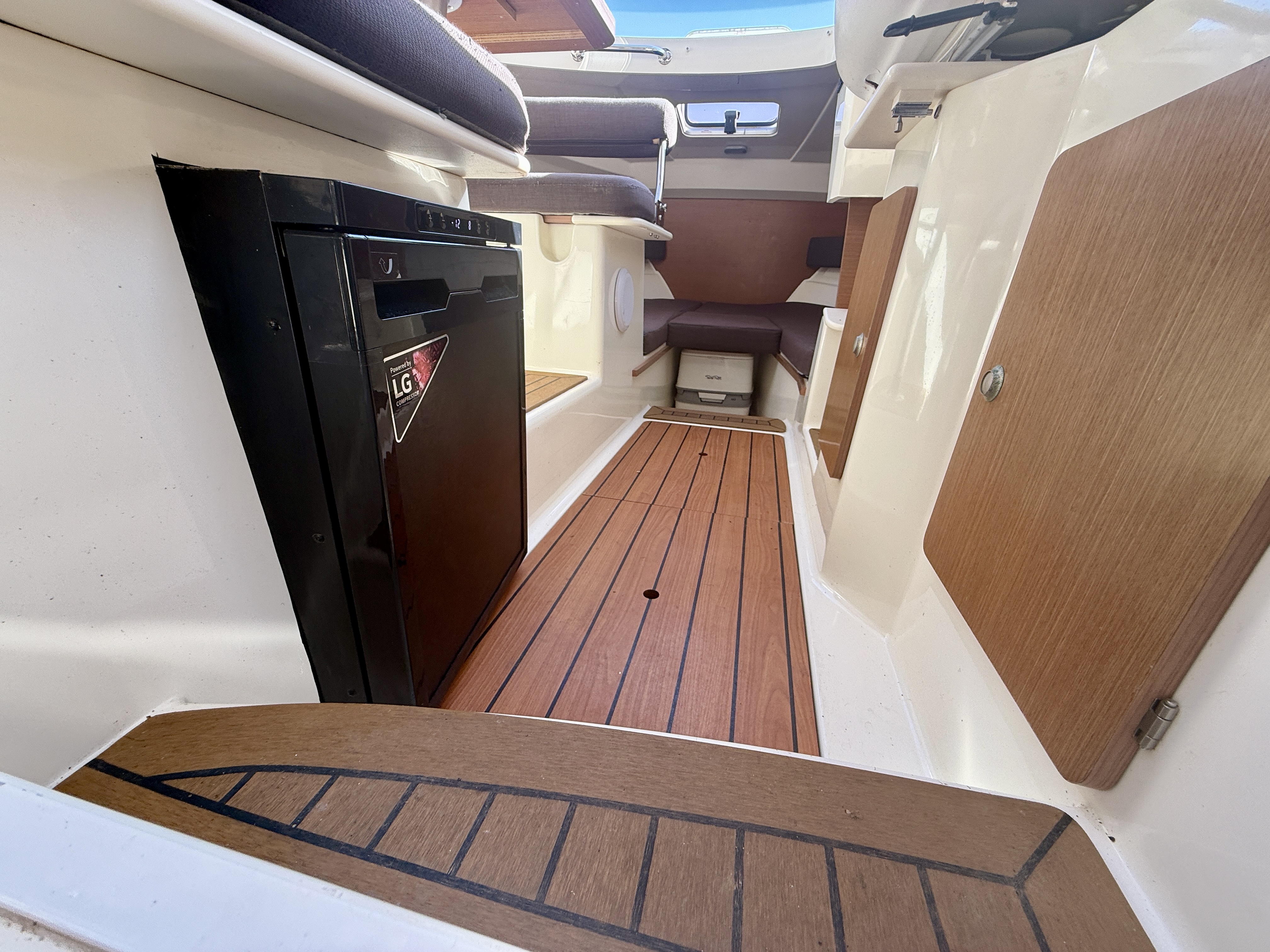 Externally, the cockpit is a great space for both entertaining and fishing, featuring removable seating and table, rod holders, and easy access via the swim ladder. Whether you’re casting lines or enjoying a quiet evening at anchor, this boat adapts effortlessly to your plans!
