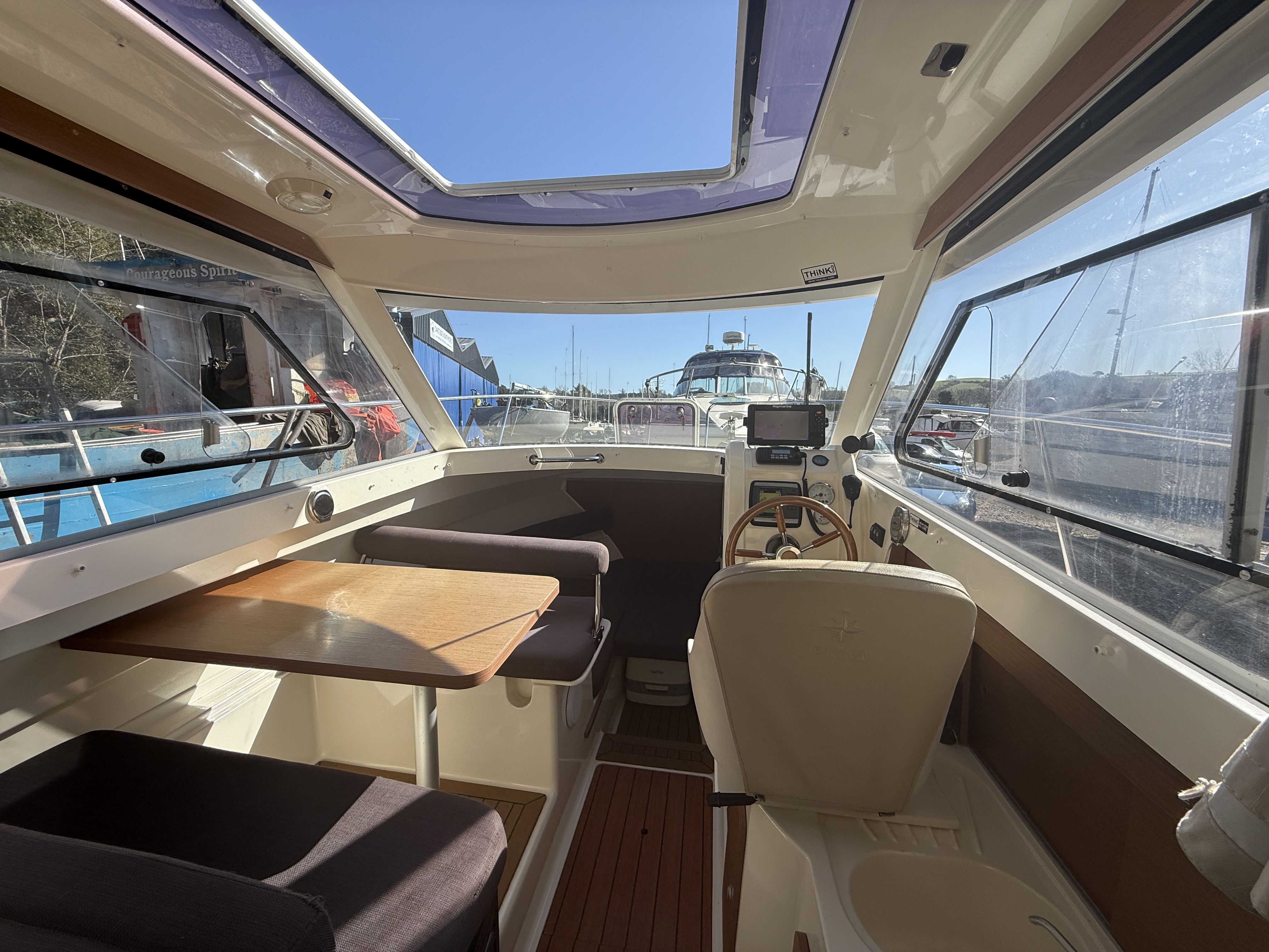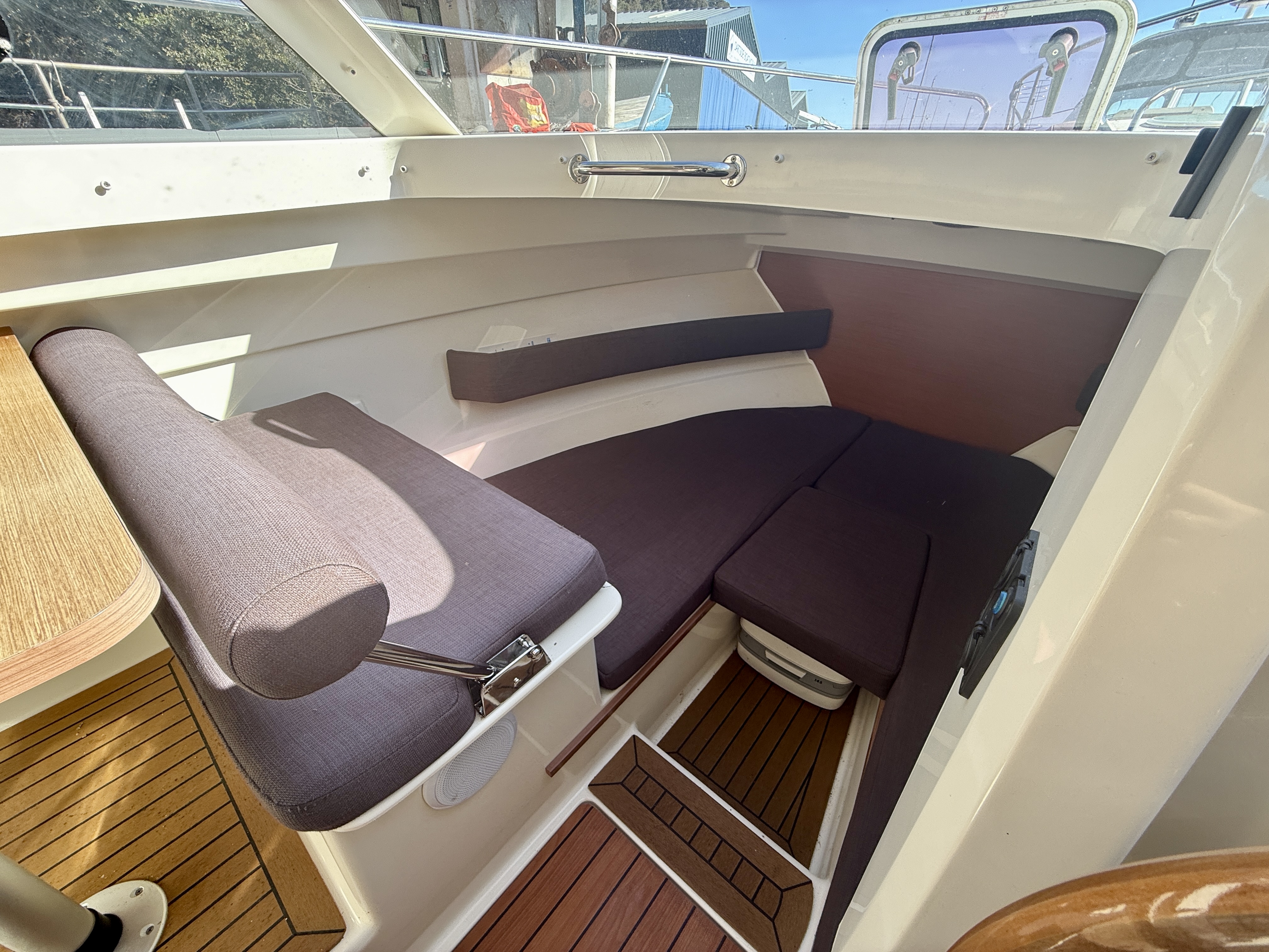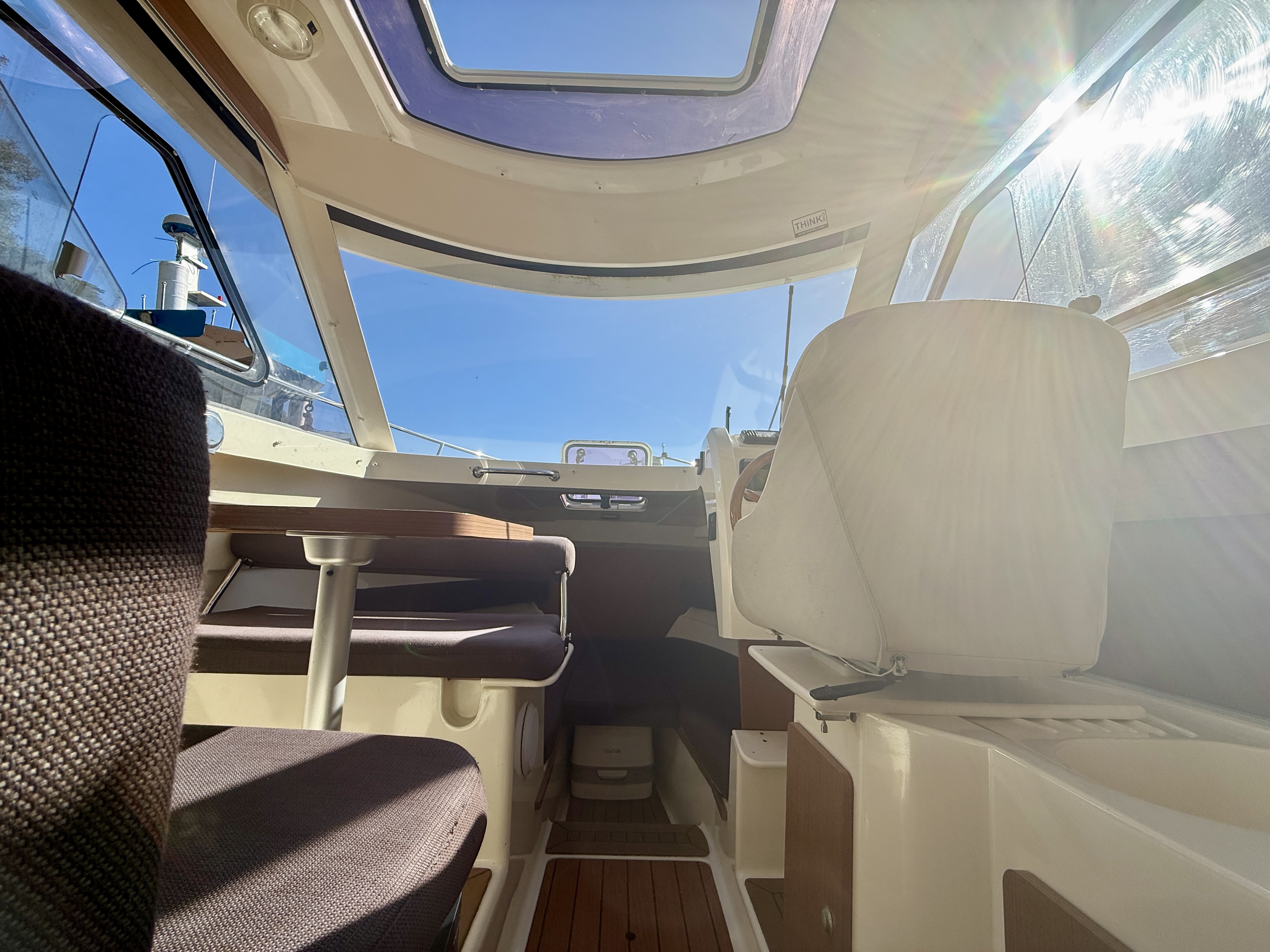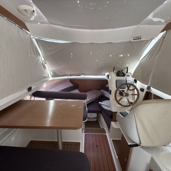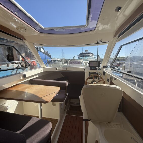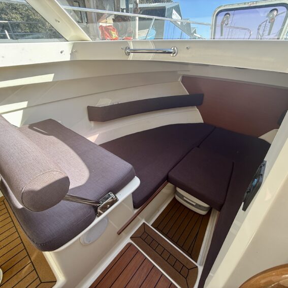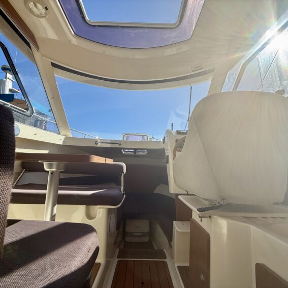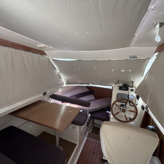 The design of the 645 Légende is all about practicality and comfort. The bright and airy wheelhouse benefits from large windows and an opening sunroof, flooding the interior with natural light and creating a sociable helm and saloon space. The saloon itself easily converts into additional sleeping accommodation with the use of in-fill cushions, while full privacy window covers allow for comfortable overnight stays onboard!