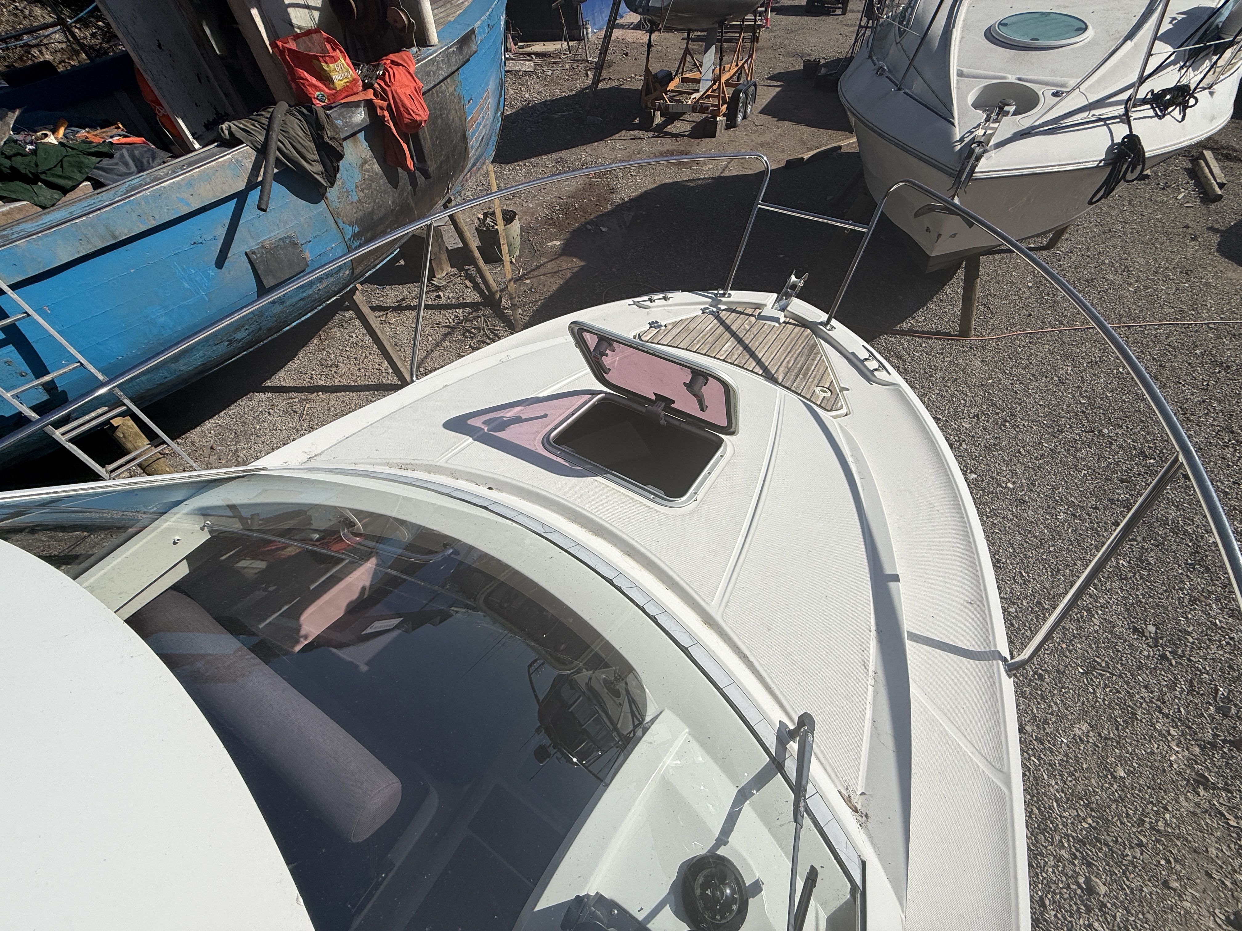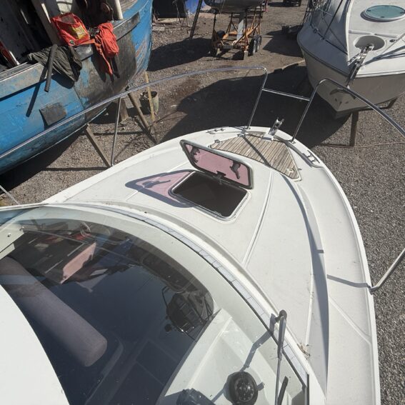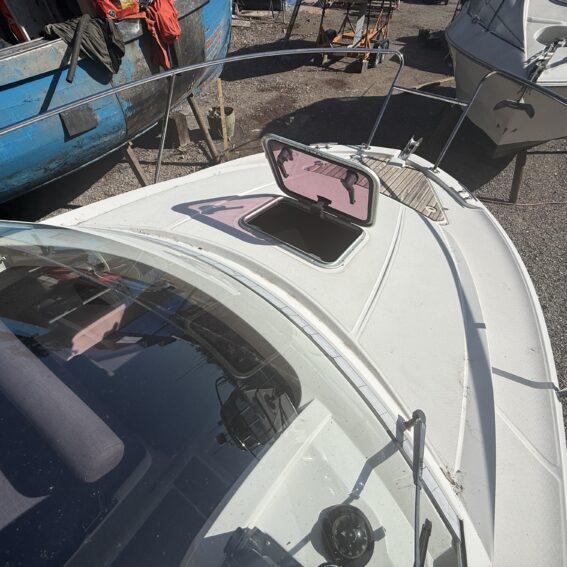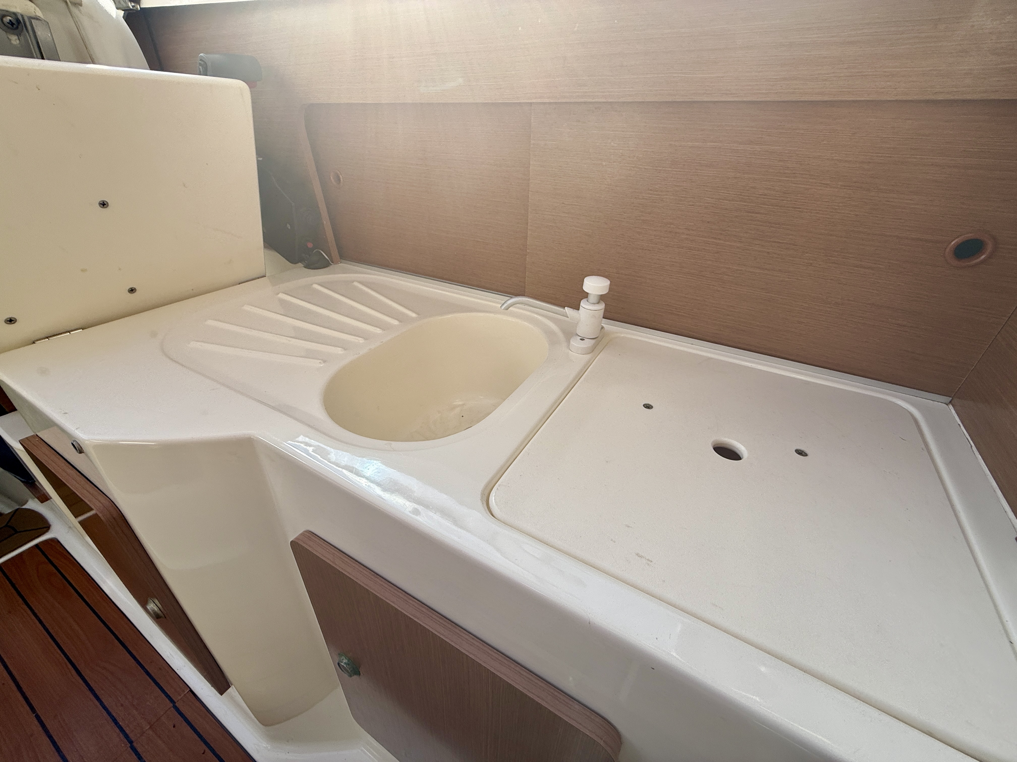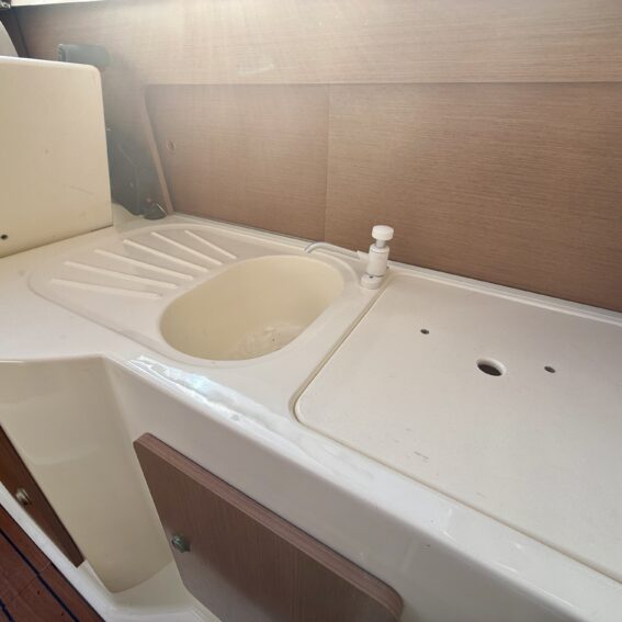 Her compact galley is thoughtfully arranged with a portable camping gas stove, hand pump freshwater system, and a 50L refrigerator, making her perfectly equipped for day trips or longer weekends on the water. A porta potti toilet is also onboard, adding further practicality for extended use!