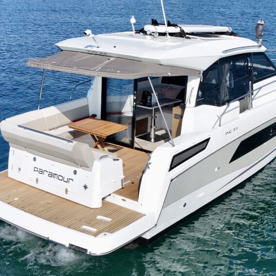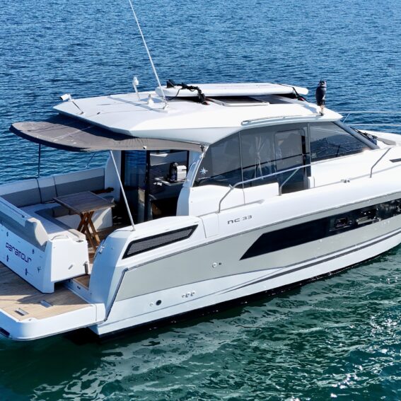 Designed for easy living on the water, the NC33 combines spacious interior accommodation with sleek, modern styling and clever functionality. The light-filled saloon, fully equipped galley, and two comfortable cabins make this the perfect boat for weekend adventures or extended cruising!