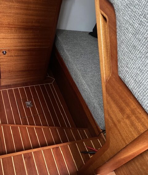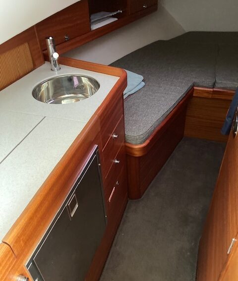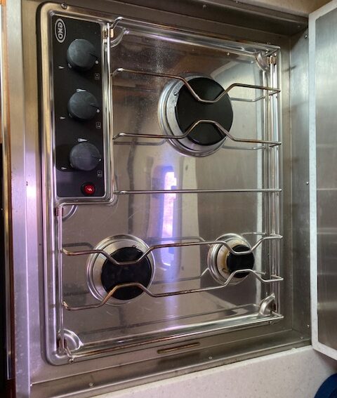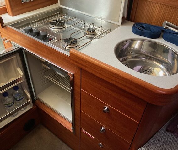 The boat also boasts a host of thoughtful extras including portable solar panels with battery management, dual control trim tabs, mast-mounted searchlight, forward floodlights, low-level deck lights, twin automatic bilge pumps, one manual bilge pump and comprehensive fire safety equipment. Entertaining is made easy with an FM/MF/LW CD player with external speakers, a cockpit table and a fully equipped galley with a three-ring gas hob!