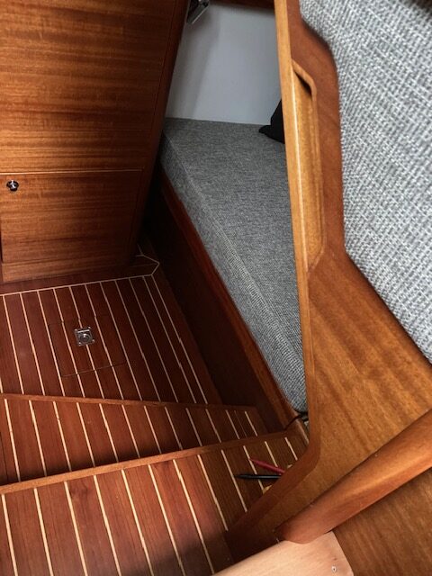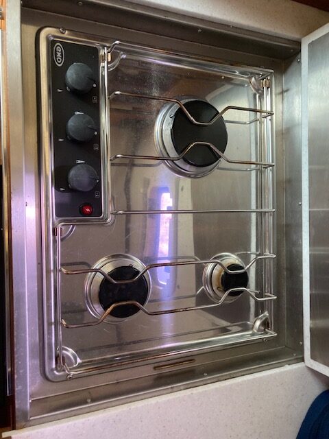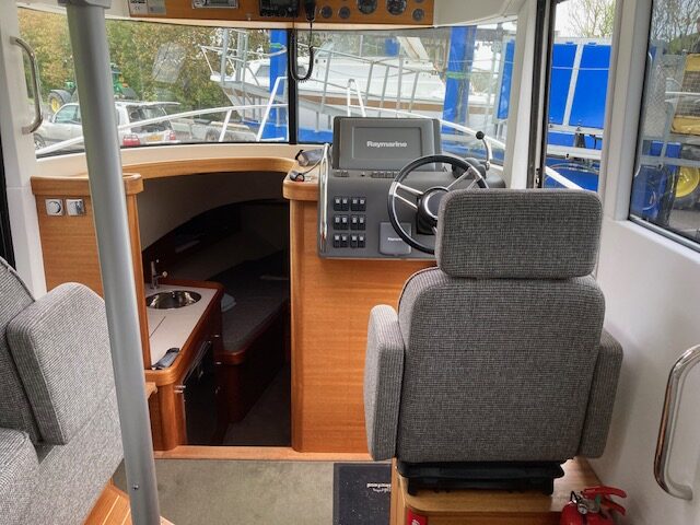 The boat also boasts a host of thoughtful extras including portable solar panels with battery management, dual control trim tabs, mast-mounted searchlight, forward floodlights, low-level deck lights, twin automatic bilge pumps, one manual bilge pump and comprehensive fire safety equipment. Entertaining is made easy with an FM/MF/LW CD player with external speakers, a cockpit table and a fully equipped galley with a three-ring gas hob!
