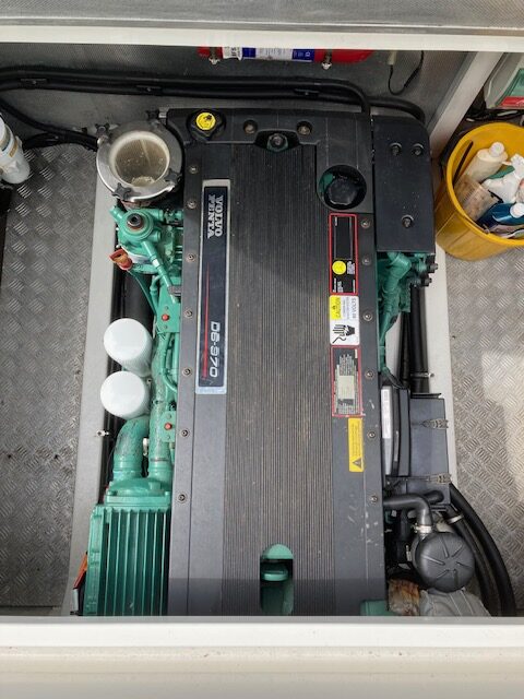 Practicality is a highlight with a sleipner bow thruster, telescopic swim ladder, inflatable dinghy on snap davits, fresh water deck wash point and twin stainless steel Bruce anchors with leaded multi-plait warp. Every detail, from flybridge console and seat covers to forward hatch fly screens and blackouts, has been considered to ensure both protection and comfort.