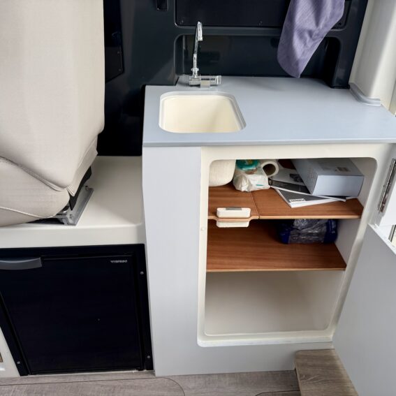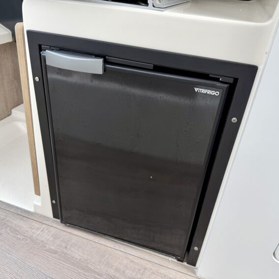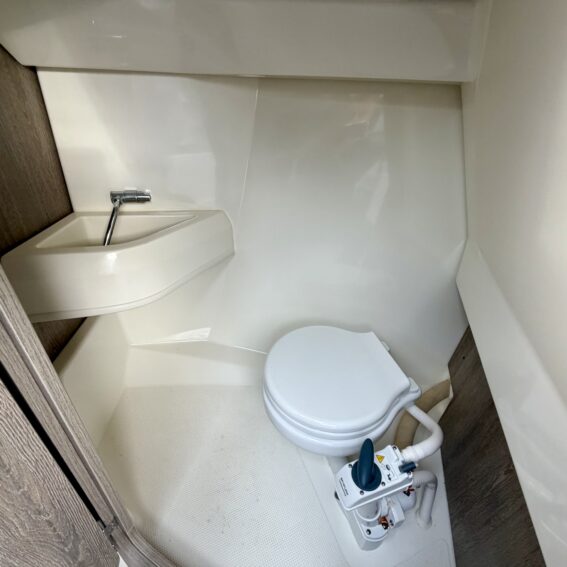 On board, the layout is designed for both day cruising and overnight stays, with a comfortable saloon that converts into a berth using in-fill cushions and a manual toilet in the enclosed heads compartment. The galley is neatly equipped with a sink and tap, refrigerator, and ample storage, making it easy to enjoy weekends away on the water!