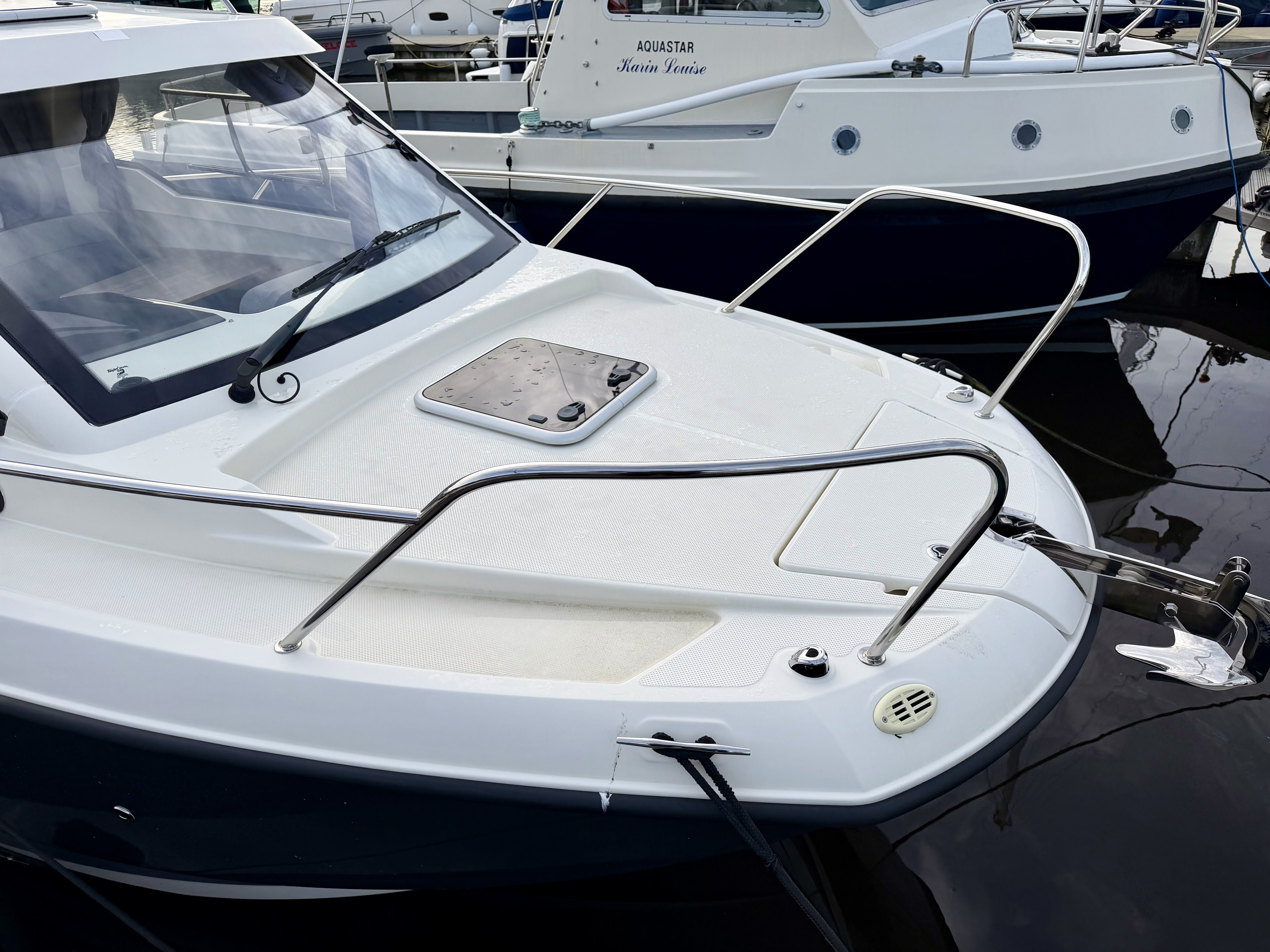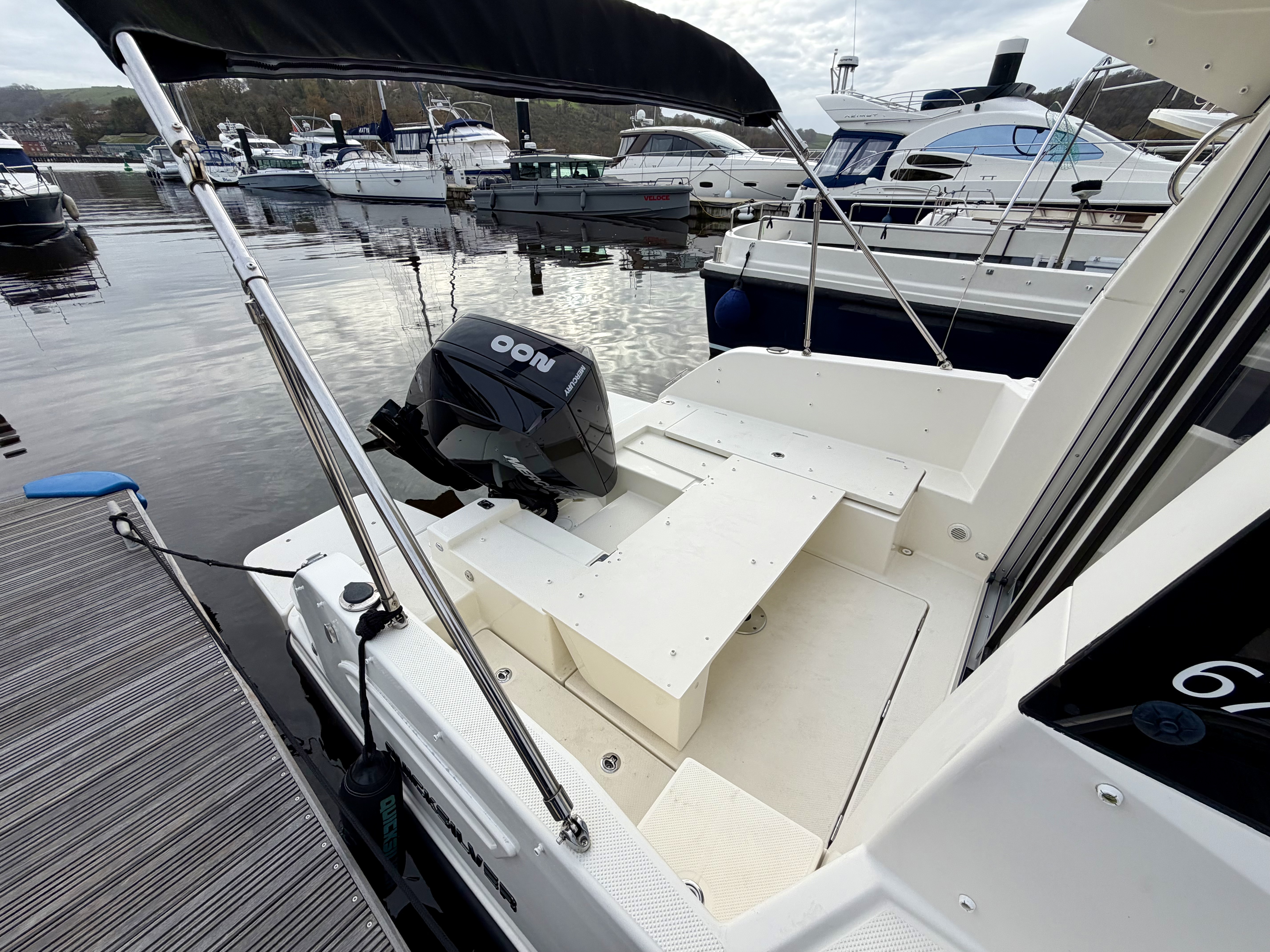 This 2022 Quicksilver 675 Weekend offers the perfect blend of comfort, practicality, and style for both new and experienced boaters. With only 15 hours on its Mercury 200hp outboard engine, this example has seen very little use and is presented in excellent condition throughout. Currently berthed at Noss on Dart Marina, it provides an ideal opportunity to purchase a nearly new boat without the wait!
