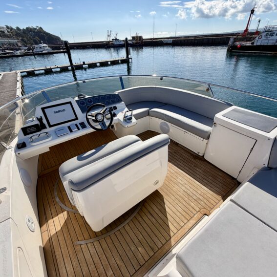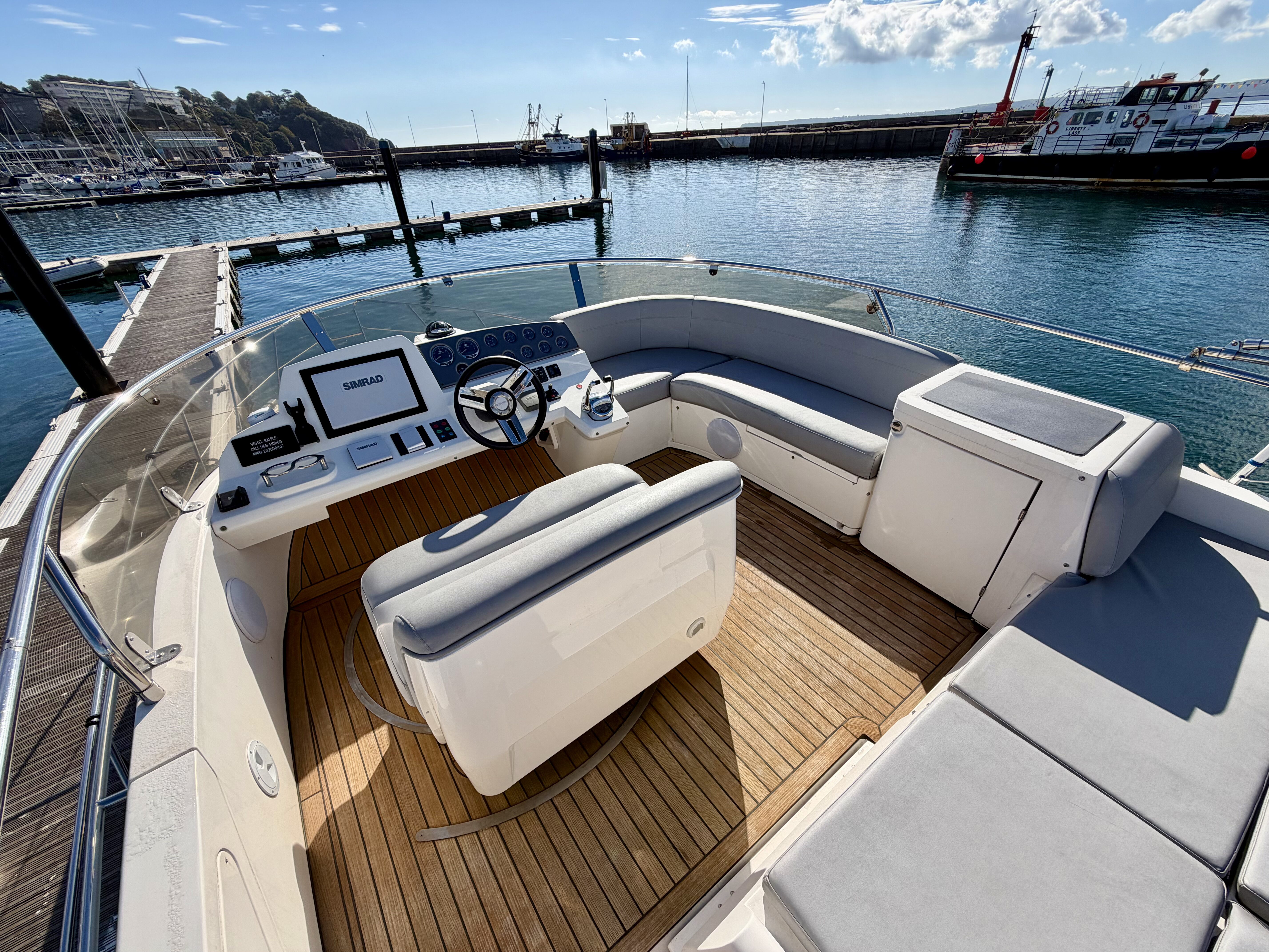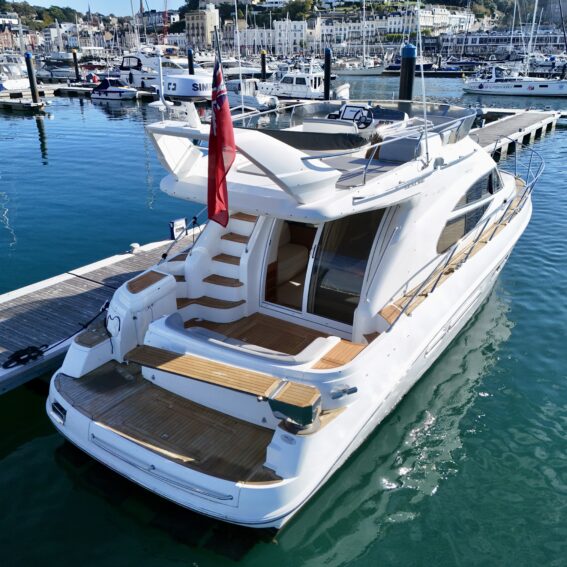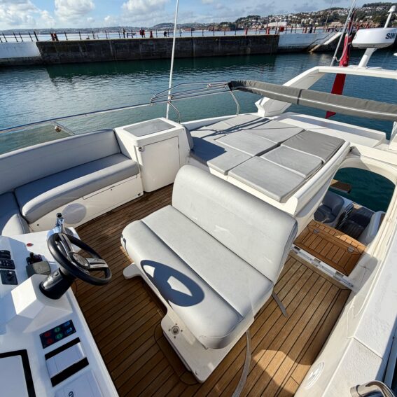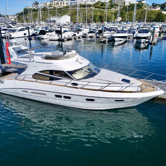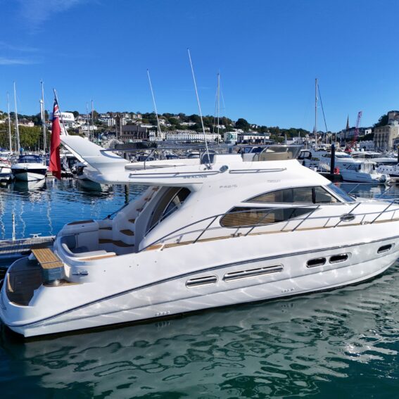 Currently lying in Torquay Marina, this Sealine F42/5 combines performance, style and versatility in equal measure. She is ready for viewings and offers a superb opportunity to acquire one of Sealine’s most popular flybridge cruisers in a prime South Coast location!