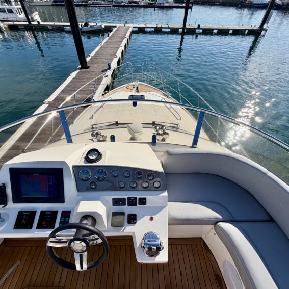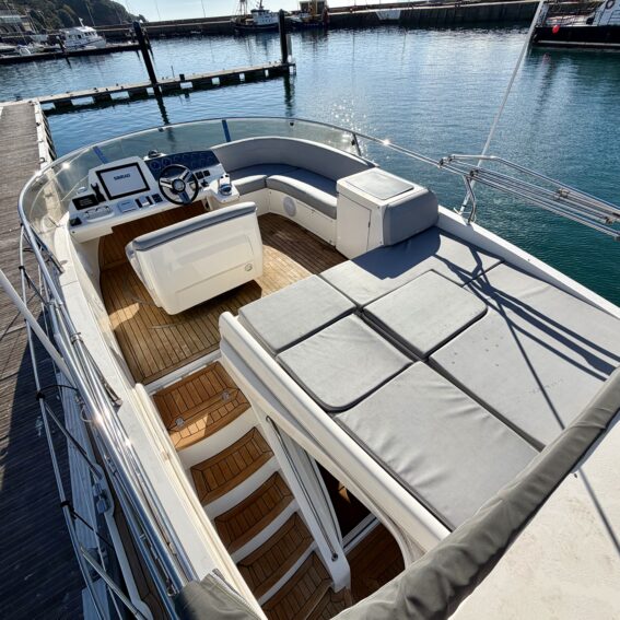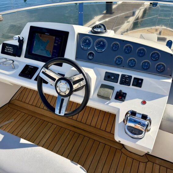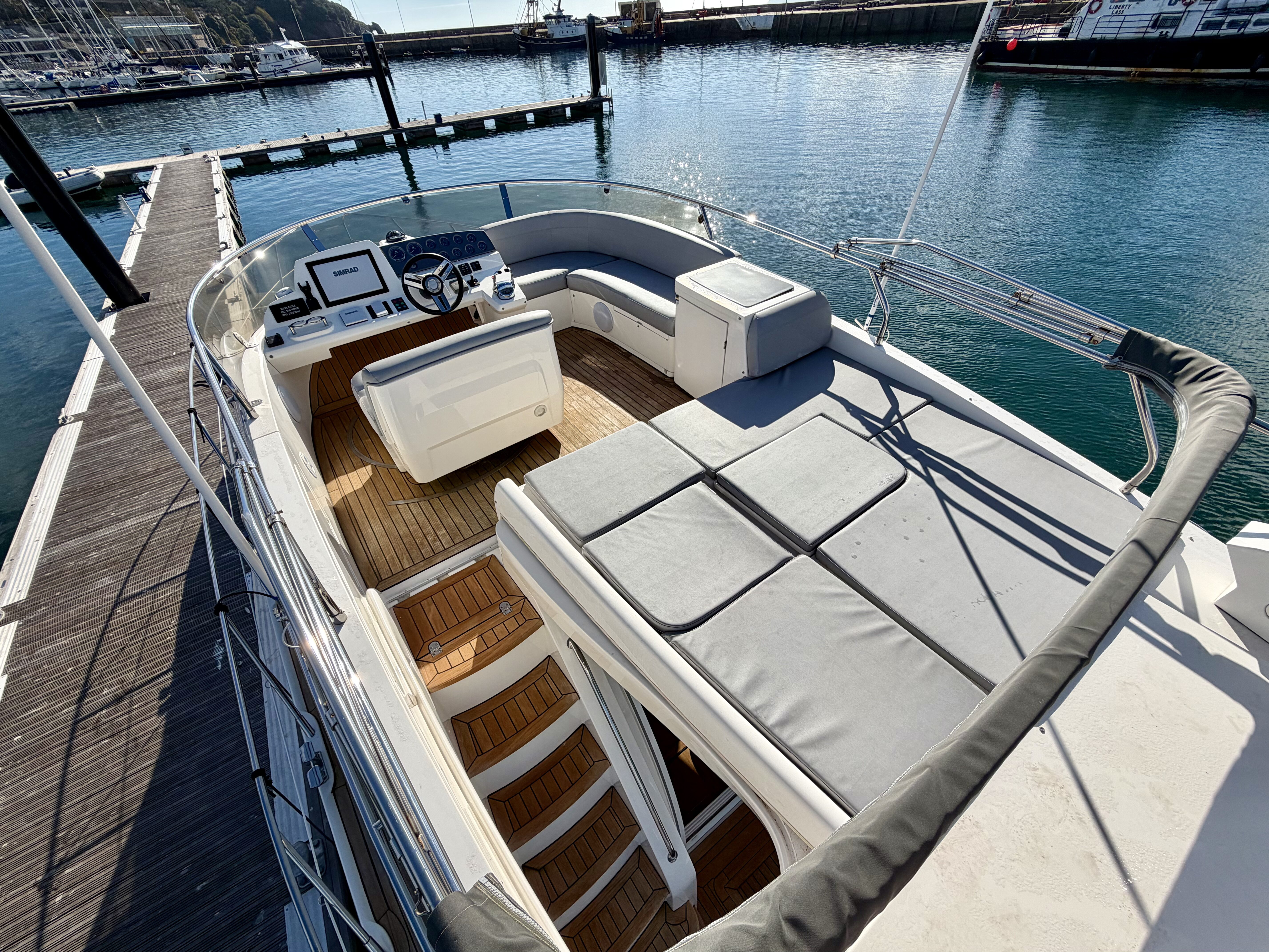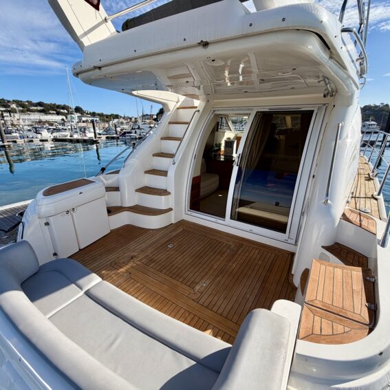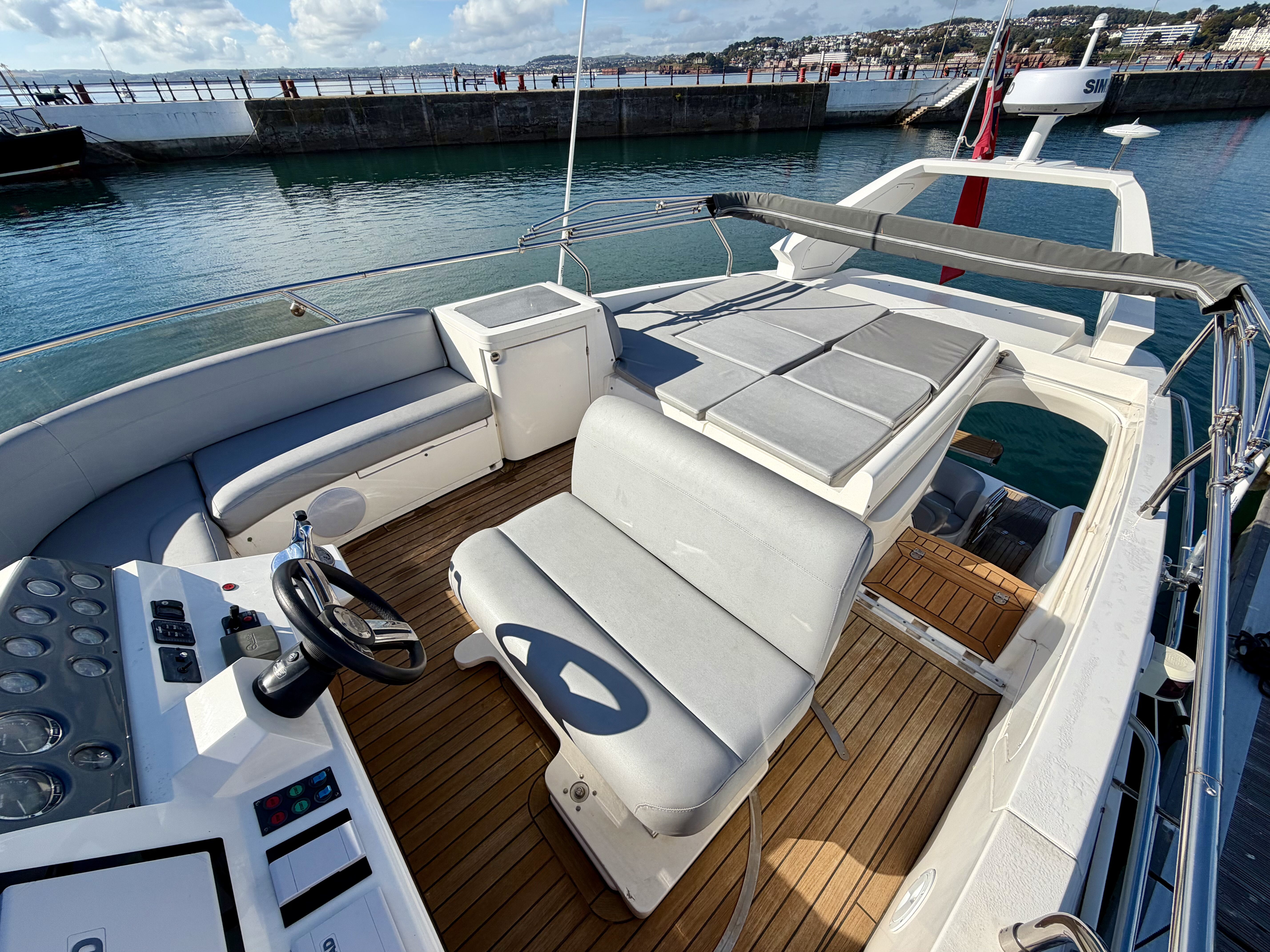 Currently lying in Torquay Marina, this Sealine F42/5 combines performance, style and versatility in equal measure. She is ready for viewings and offers a superb opportunity to acquire one of Sealine’s most popular flybridge cruisers in a prime South Coast location!