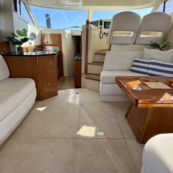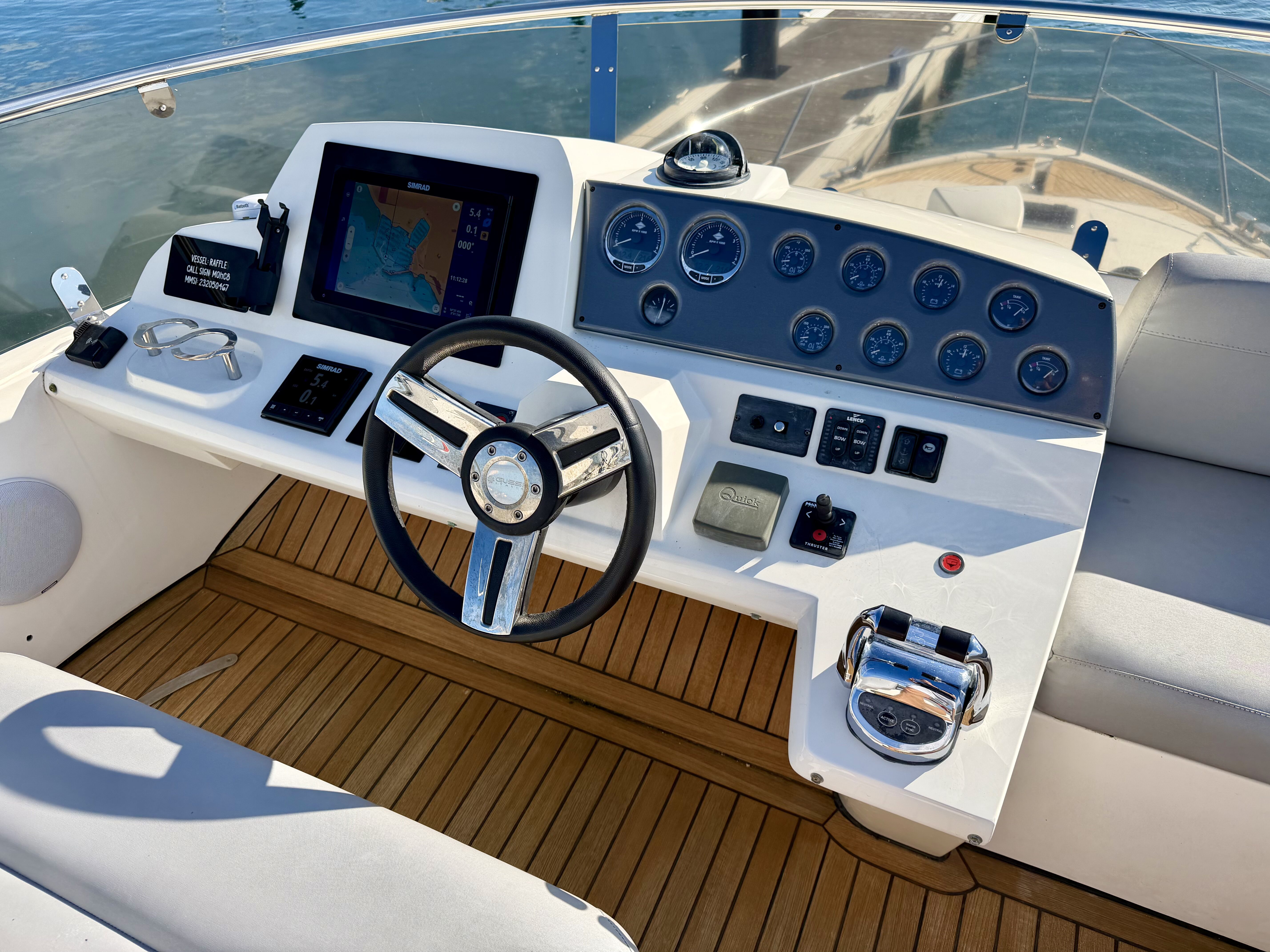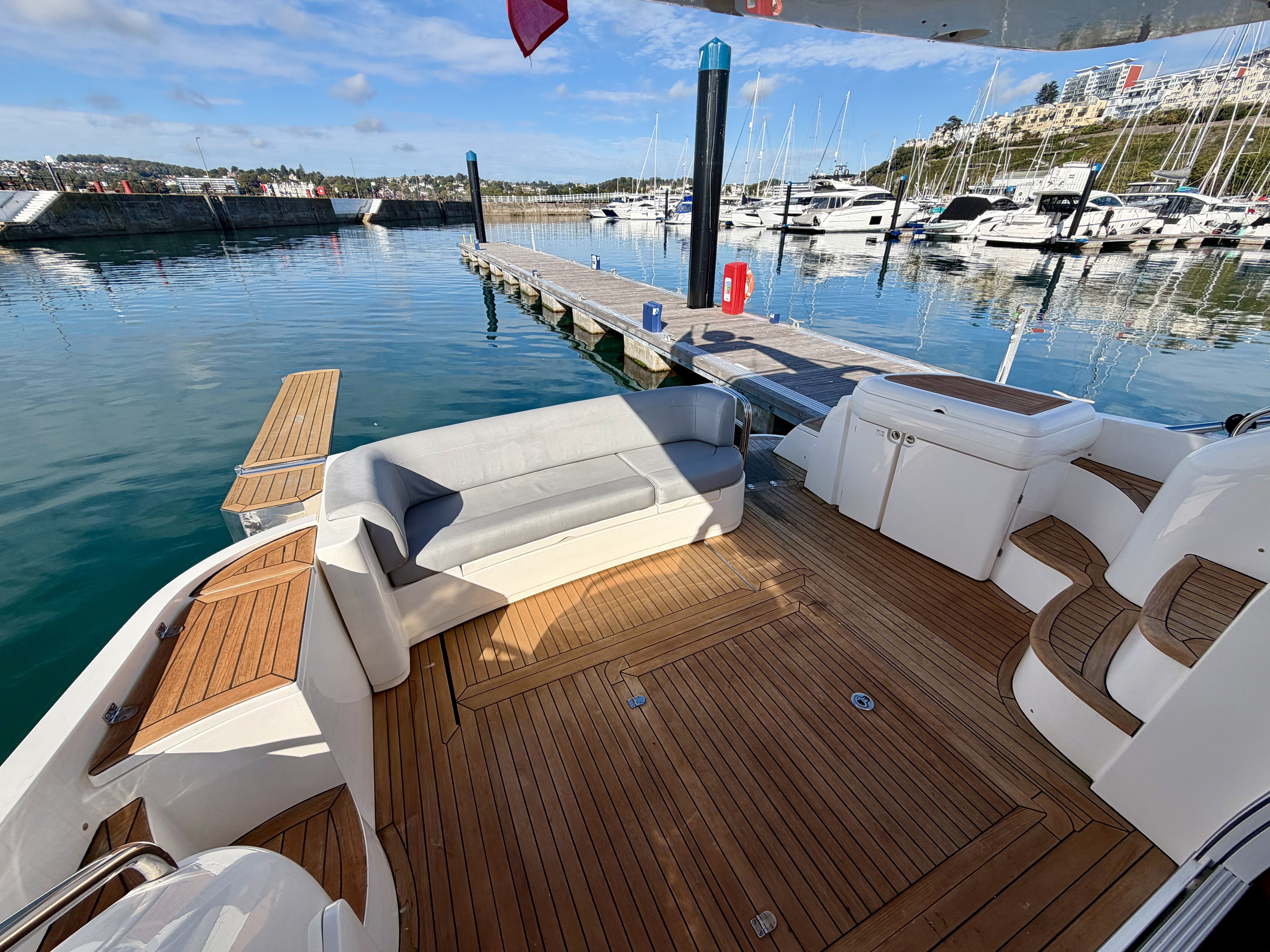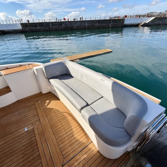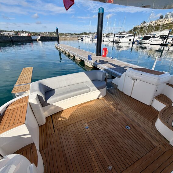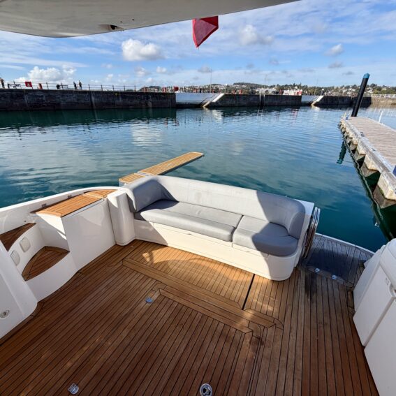 This beautifully presented 2009 Sealine F42/5 is now available for sale and berthed in the heart of Torquay Marina. Powered by twin Cummins QSB 5.9 480hp diesel engines, she offers an exhilarating top speed of around 31–32 knots and a comfortable cruising speed of 24–26 knots, making her the perfect choice for both relaxed coastal cruising and fast passages when required!