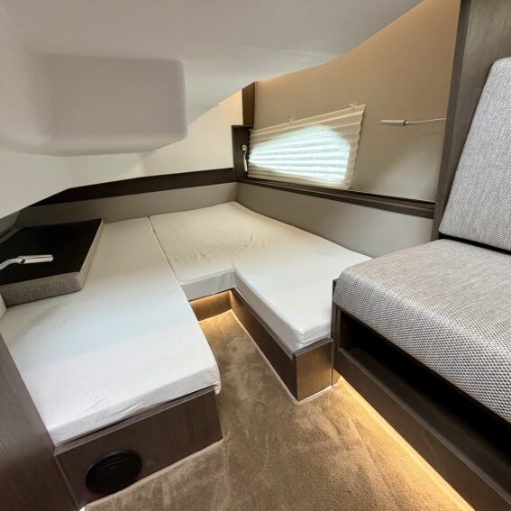 Step onboard and you are greeted by a bright, open cockpit with seamless access to the saloon, thanks to the signature sliding roof system and large opening doors. The interior is flooded with natural light, showcasing the contemporary finishes and intelligent use of space that Sealine are so well known for. Below deck, comfortable accommodation provides the perfect retreat for extended stays on the water!