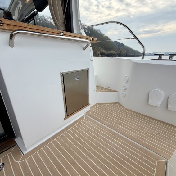 Synthetic teak cockpit floor, bathing platform and steps to sidewalk