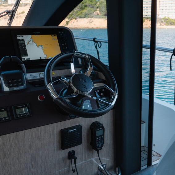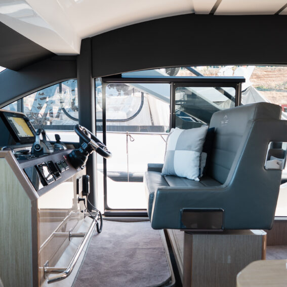 Above deck, the 14m² flybridge embodies open-air luxury, with generous seating, a wet bar and BBQ grill, and versatile space for dining or lounging under the sun. The cockpit flows seamlessly into the bright saloon, while the foredeck lounge invites you to relax and take in panoramic sea views. Equipped for effortless cruising and ultimate comfort, this F430 features a hydraulic bathing platform, hydraulic gangway, and stabilizer system ensuring smooth performance in any condition. An advanced navigation suite, premium entertainment system, and powerful Volvo IPS drives combine safety, sophistication, and sheer enjoyment!