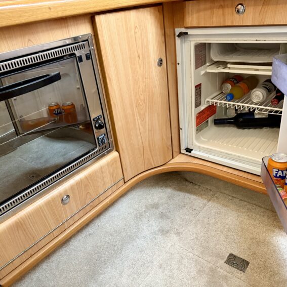 The cockpit features elegant teak flooring and a teak-laid bathing platform, complemented by a well-equipped wetbar complete with a fridge and gas hob — perfect for entertaining onboard. Below deck, the accommodation is stylish and practical, offering a bright and inviting space ideal for weekends away or extended coastal cruising!