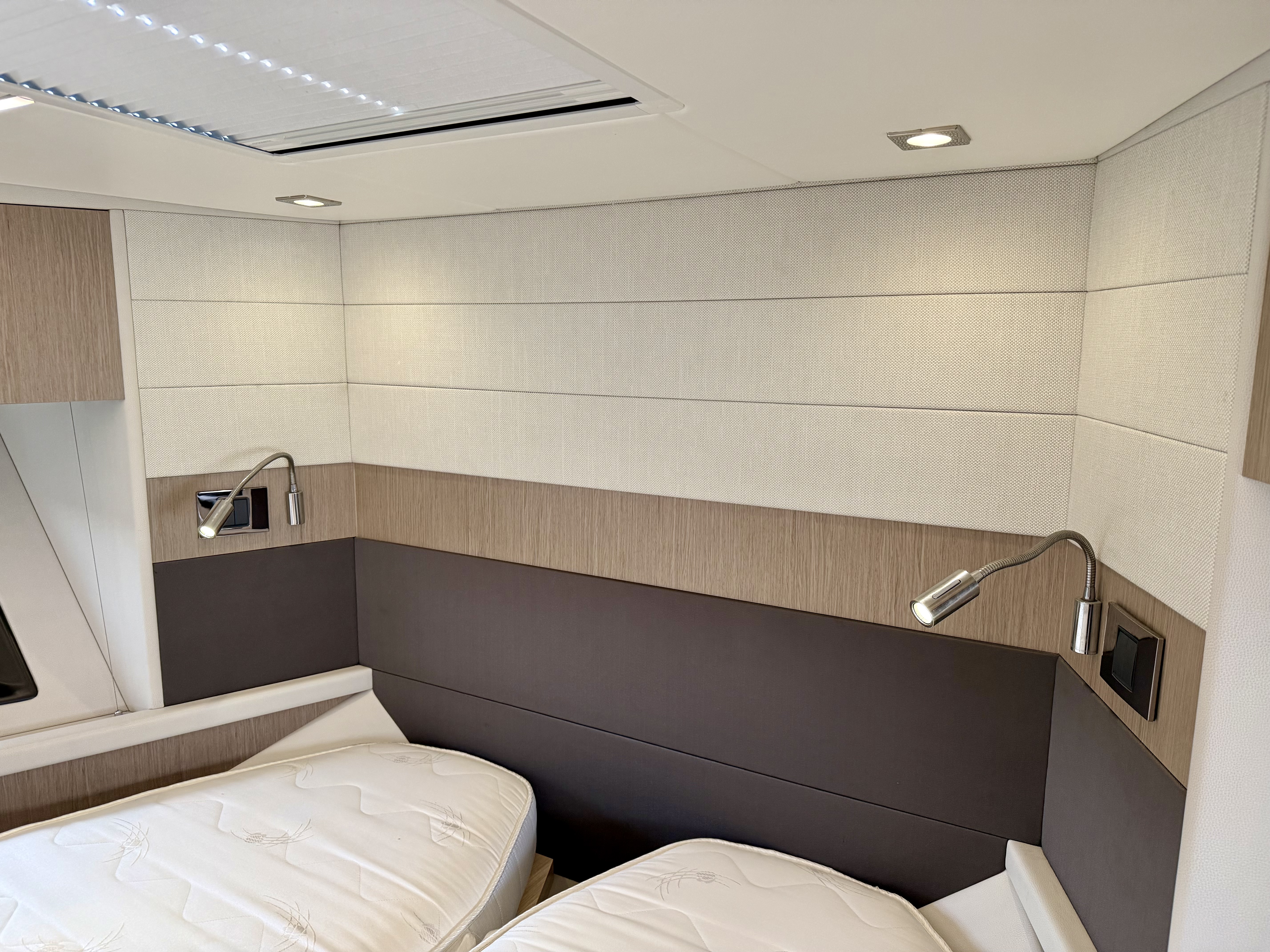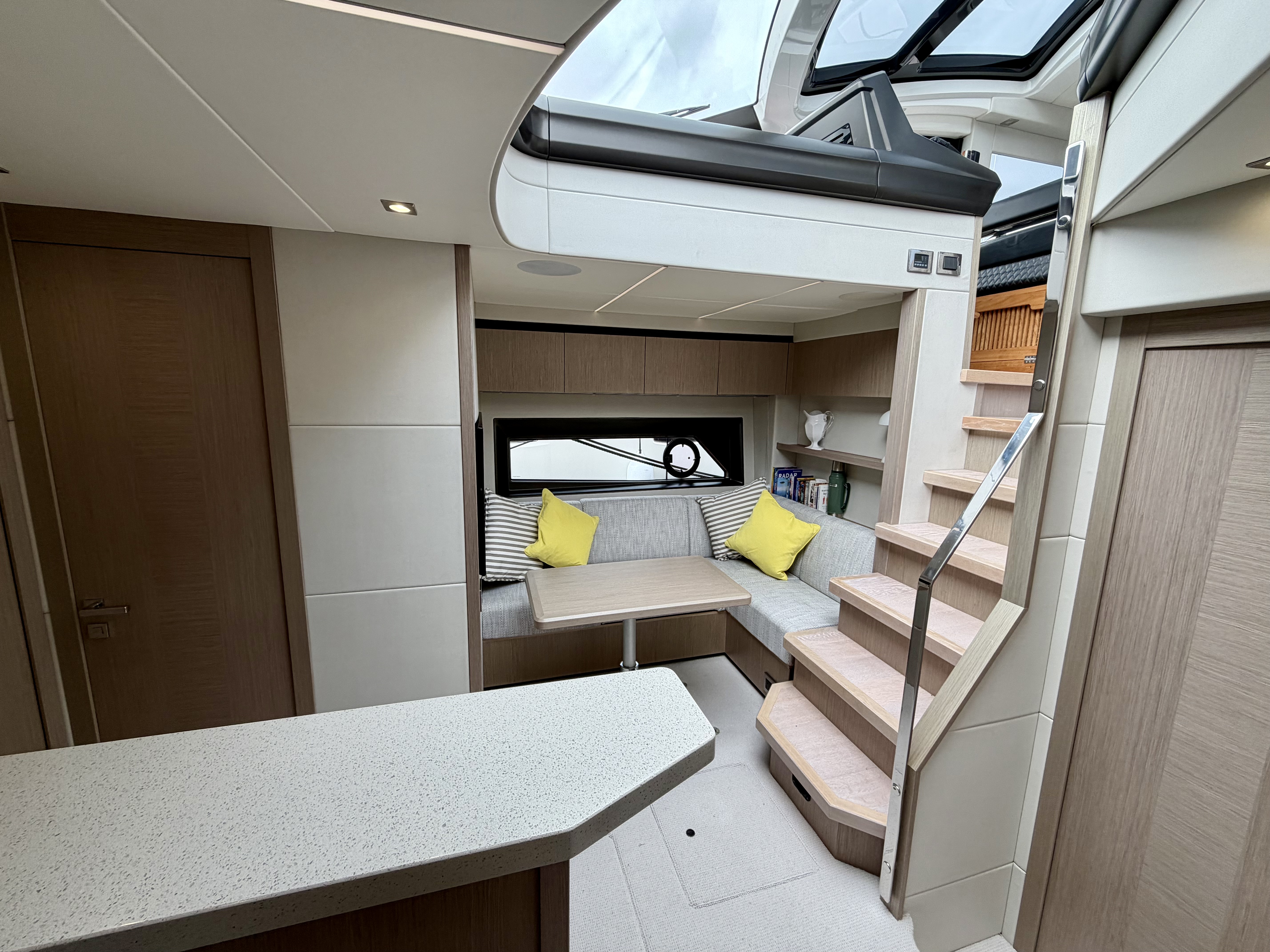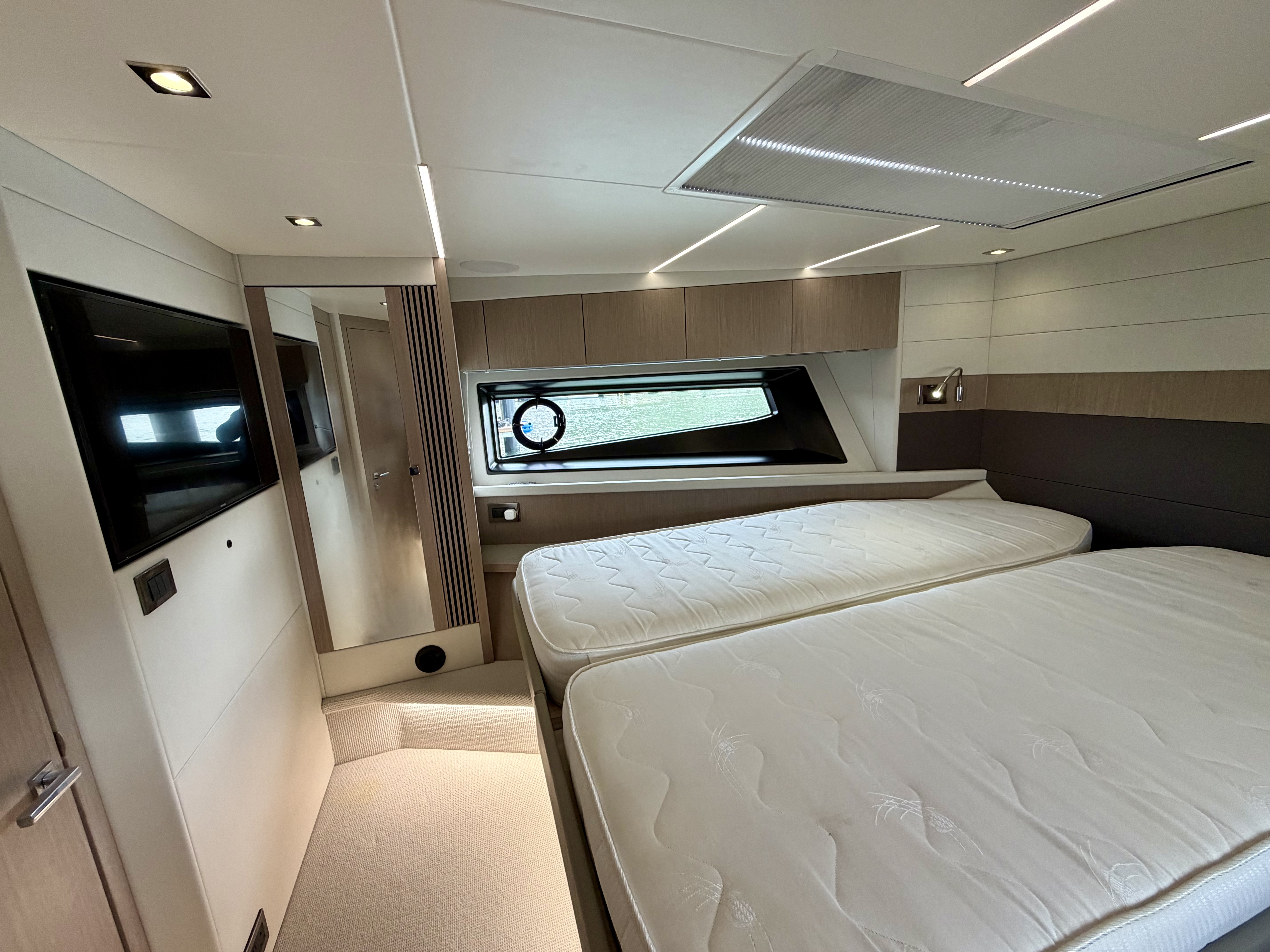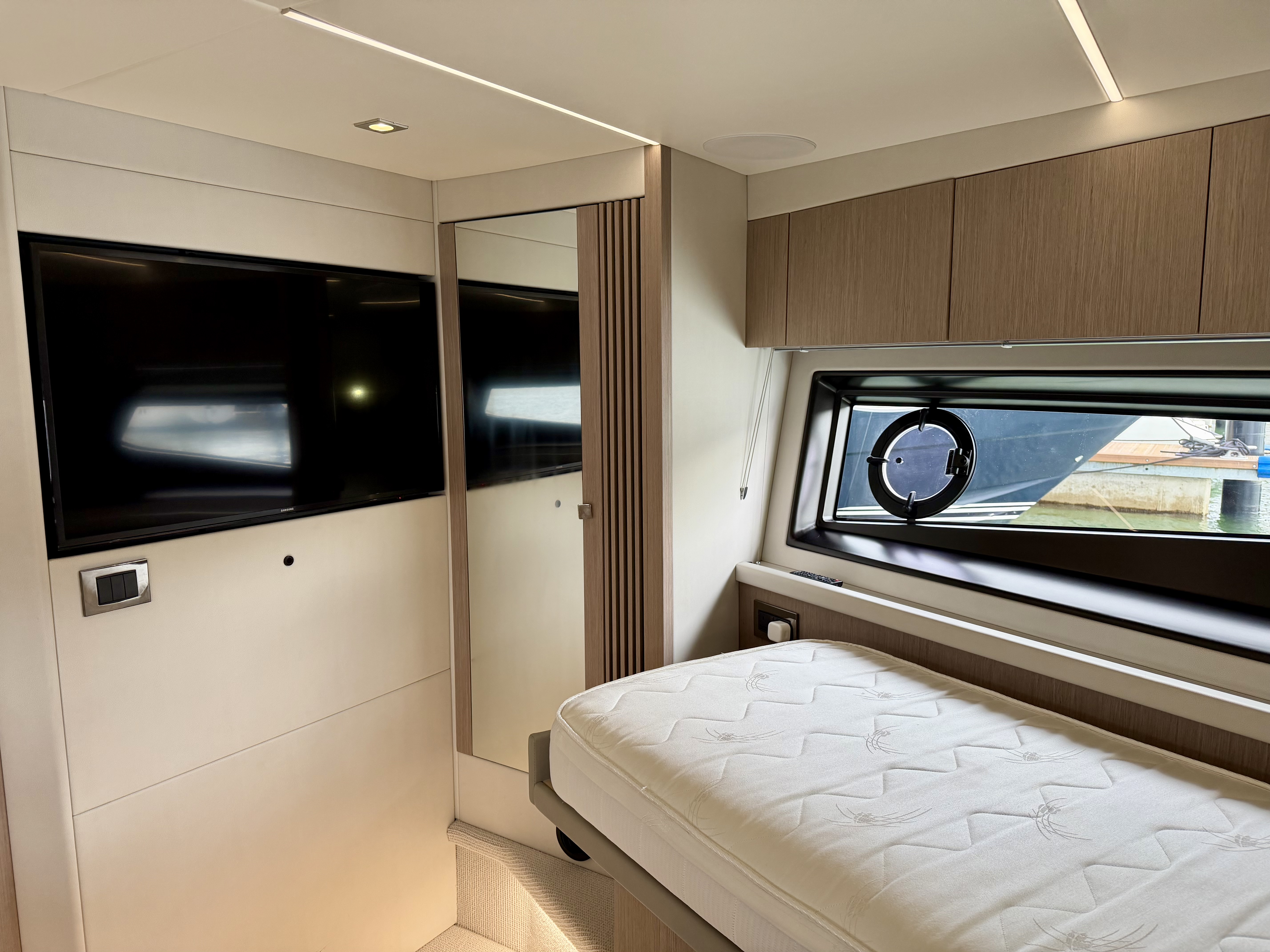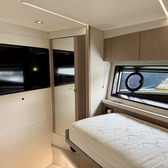 Starboard cabin option in lieu of lower saloon would be 22″All cabin units will have Bluetooth connectivity to use with personal devices