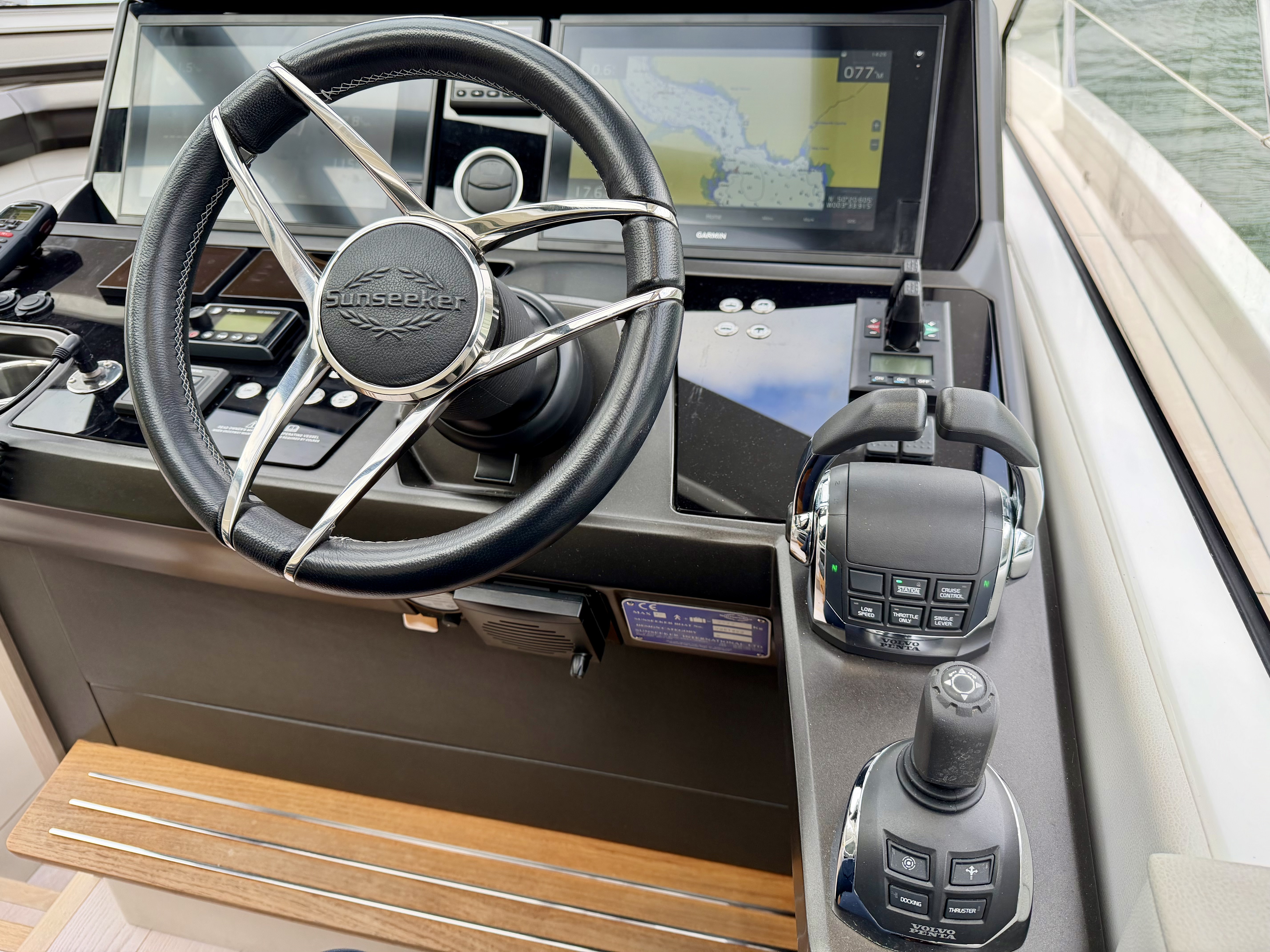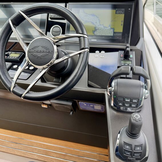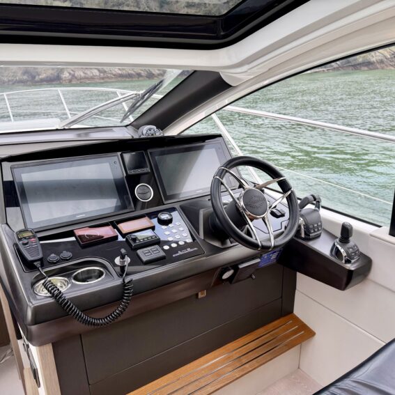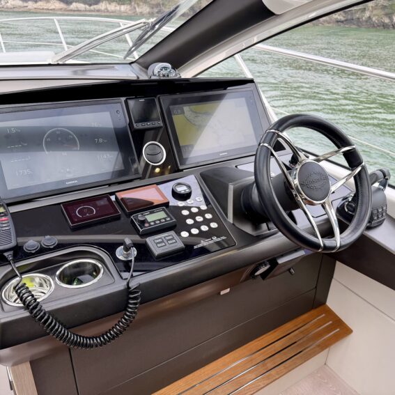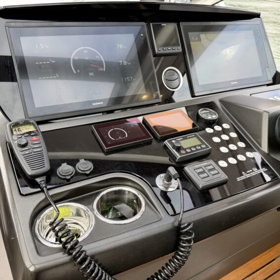 Volvo Penta 16″ multifunctional display, incorporating navigation, autopilot, engine data, warnings, alarms autopilot and all EVC features. Additional functions include. Low speed facility on gearboxes. Cruise control, Single lever operation and Trip Computer