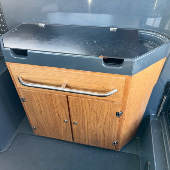 Inside, the interior is thoughtfully designed with a convertible dinette that transforms into a berth, a well-equipped galley with sink, tap, and an Isotherm refrigerator, plus Webasto heating for year-round comfort. Natural light floods through sliding patio doors and manual sliding roof panels, complemented by window washers and wipers for clear visibility in all conditions!